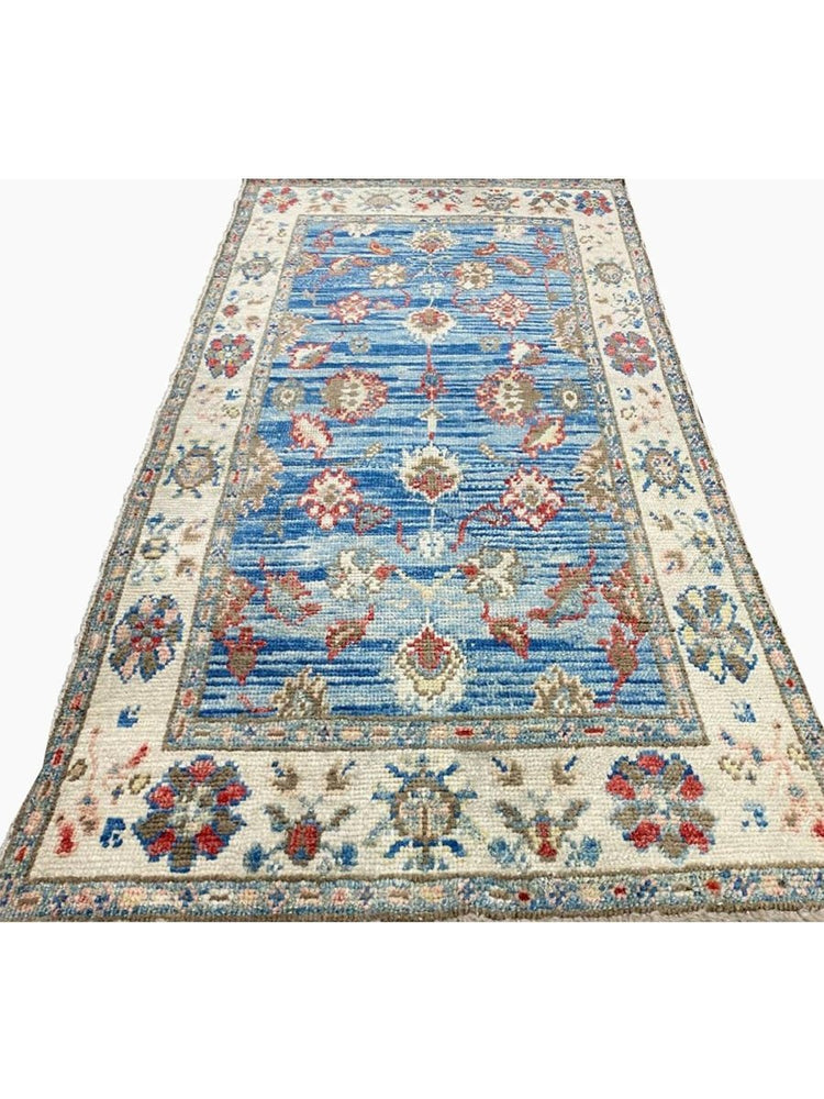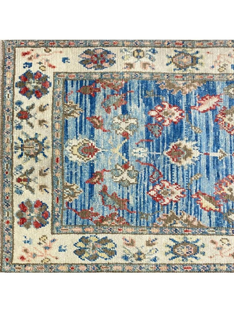 The 3x6 Turkish Oushak area rug is a one-of-a-kind find that will transform your house and give it a sophisticated and cozy feel. This gorgeous rug, crafted from high-quality wool, features a stunning floral design that brings vitality to any space. It offers a warm and inviting space for family and friends and is perfect for tiny living rooms, dining nooks, or as a chic addition in your doorway. Its harmonizing blue, beige, and rust hues complement various decor types. In addition to being useful, this fantastic rug creates a lovely center point in your house. Take advantage of free US delivery.