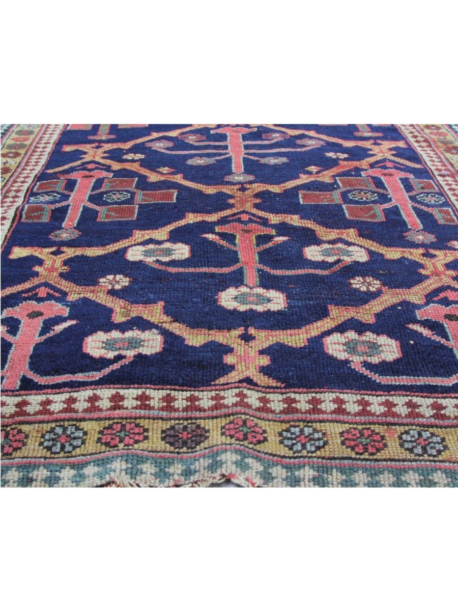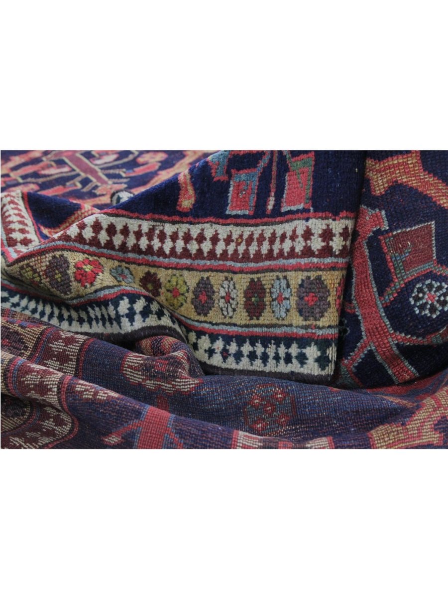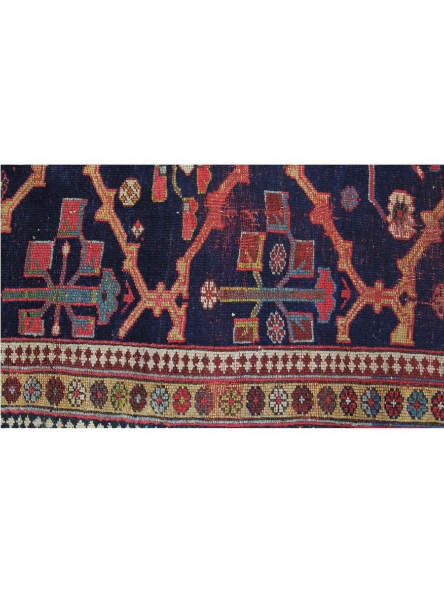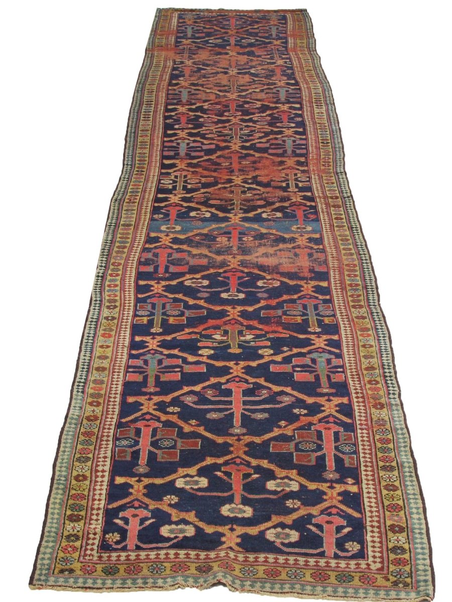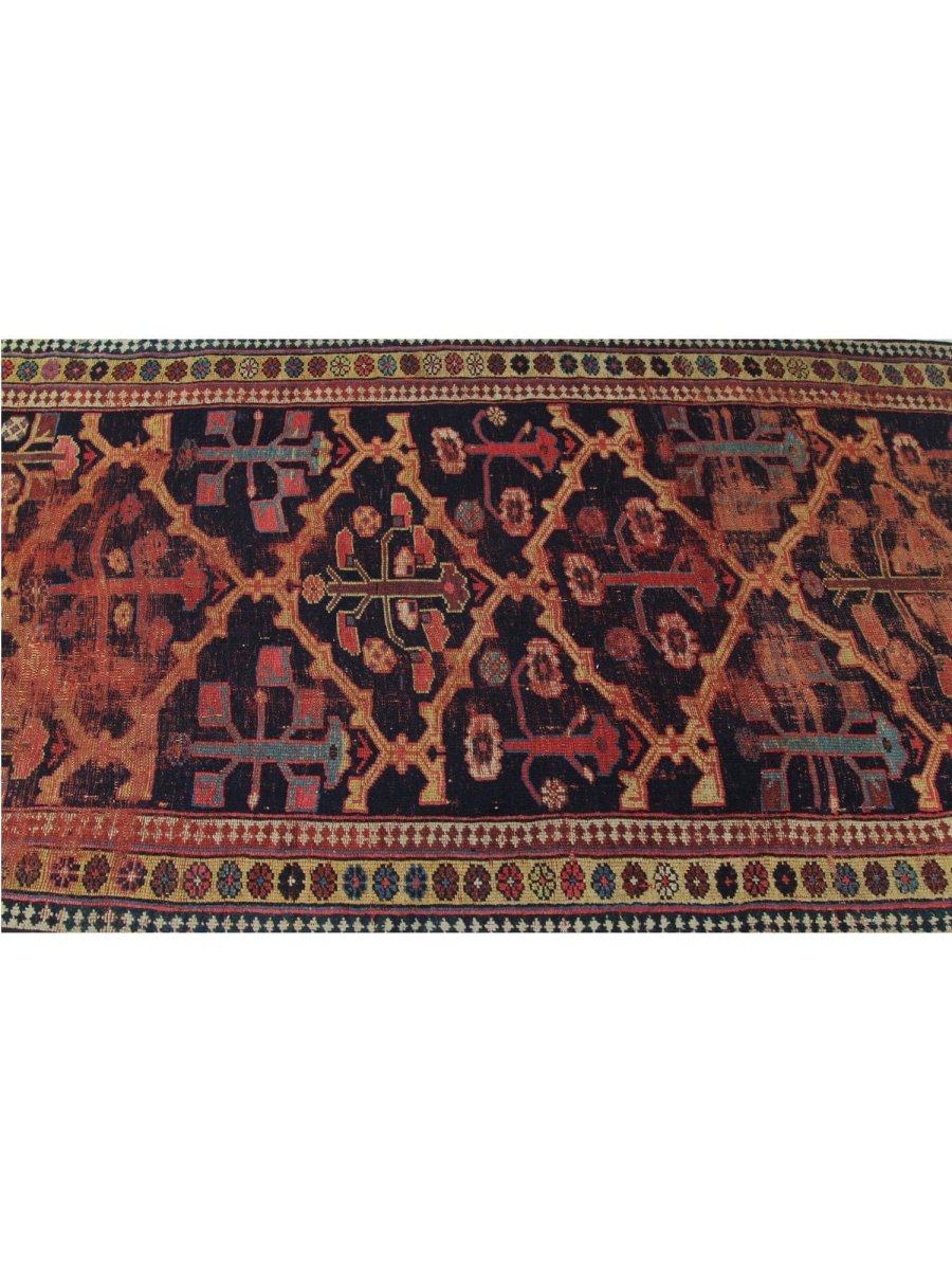 Make a statement with this eye-catching 4x18 Antique Persian Malayer Area Rug in long spaces such as halls, corridors, or entryways. It features a complex geometric design in tones of blue, red, beige, and tan, all expertly crafted by hand from the finest wool. This rug adds a sophisticated touch to your house while providing a soft, cozy surface that can withstand daily wear and tear. It combines durability and style, making it perfect for traditional and classic interiors. Delivery to your door is hassle-free thanks to free US shipping.