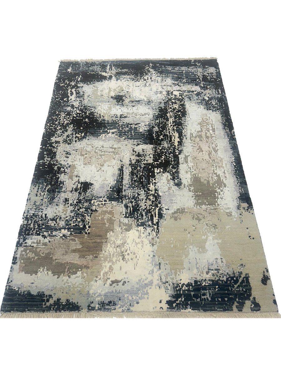 4x6 modern aesthetics area rug, a rug with modern style that is an eye-catching piece, no matter where you place it. A unique abstract design with white and black pigments, which is perfect for nowadays taste. Made in India, this new rug is hand-knotted with soft wool for endurance and smoothness underfoot. A decent design rug that fits perfectly in every decor. Ideal rug for small foyers, bathrooms, bedside rugs, or under the coffee tables. Free US shipping services are available.