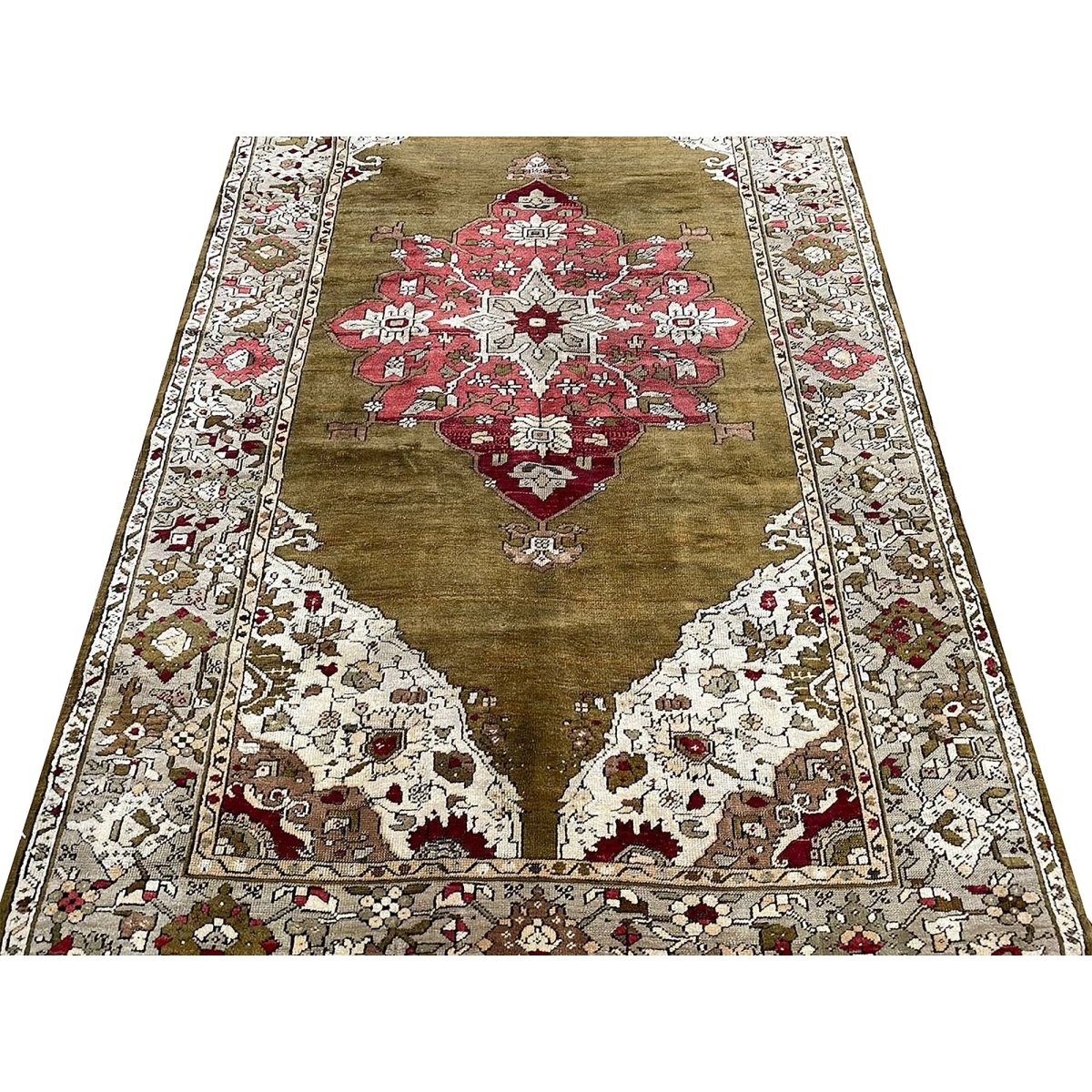 The 4x7 Antique Turkish Anatolian Area Rug is a unique treasure that embodies the rich history of Turkish weaving and will transform your living area. Made from high-quality wool, this gorgeous traditional rug features a medallion design that blends in perfectly with any type of interior design. It provides a friendly atmosphere and is perfect for large dining rooms, comfortable living spaces, or as a chic addition in your workplace. It is a multipurpose addition to your house because of the striking blend of sage green, beige, burgundy, brown, and pink hues that offer depth and character. This amazing carpeting is a stunning work of art that elevates your living area and goes beyond simple decoration. Take advantage of free US delivery.