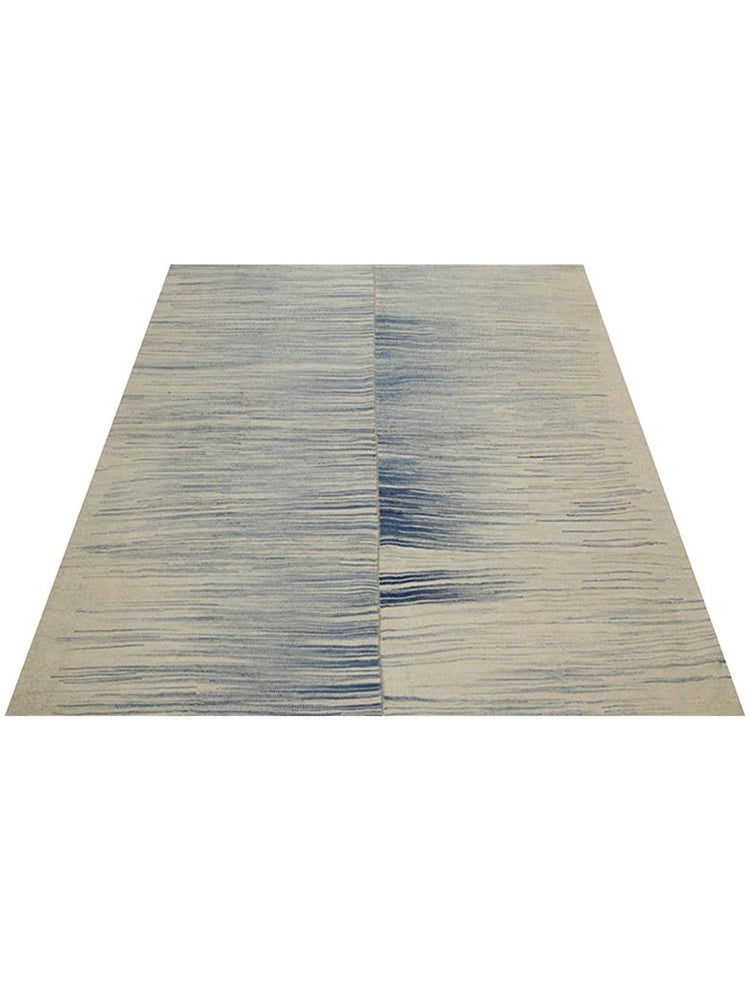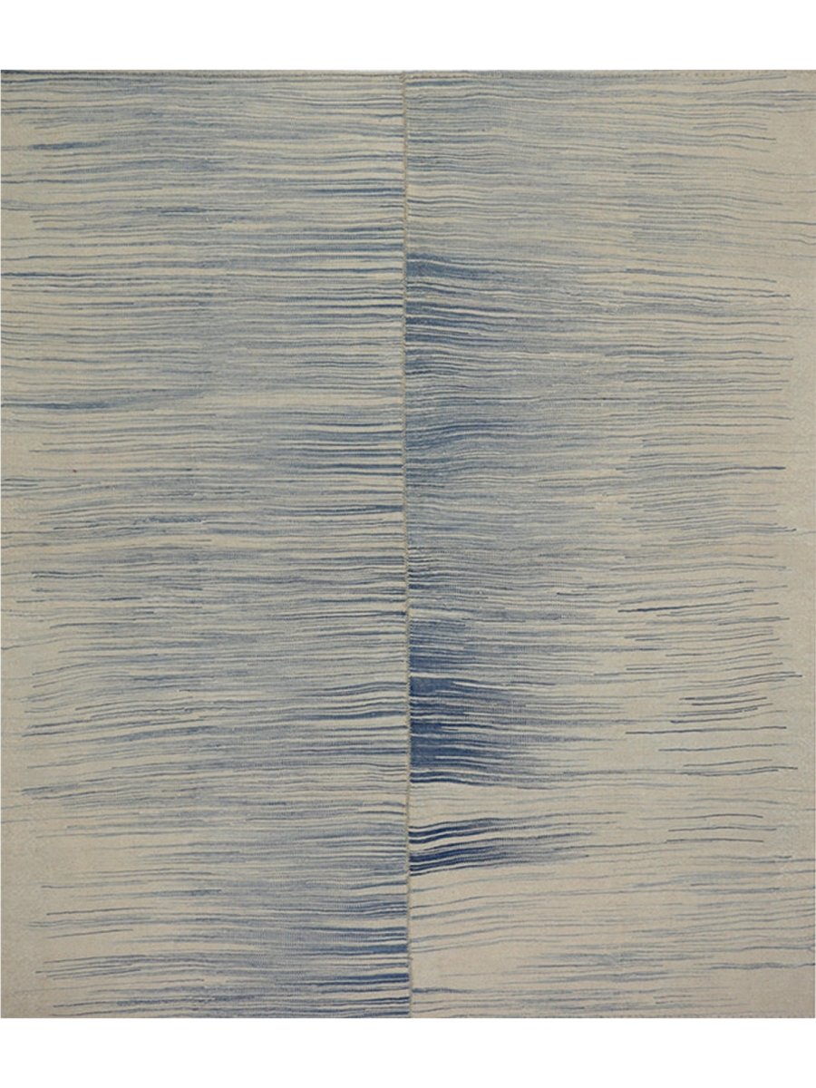 This 5x6 Persian Kilim rug features a soothing abstract pattern in beige and blue, creating a relaxed and stylish aesthetic. Handwoven from 100% wool which makes it soft and strong, its flat-weave construction ensures both durability and easy maintenance. This rug enhances your home decor with its soft, inviting tones. Its versatile design seamlessly complements both sleek and cultural interiors. Whether placed as a focal point or layered with other decor, this rug brings warmth and charm to any space.