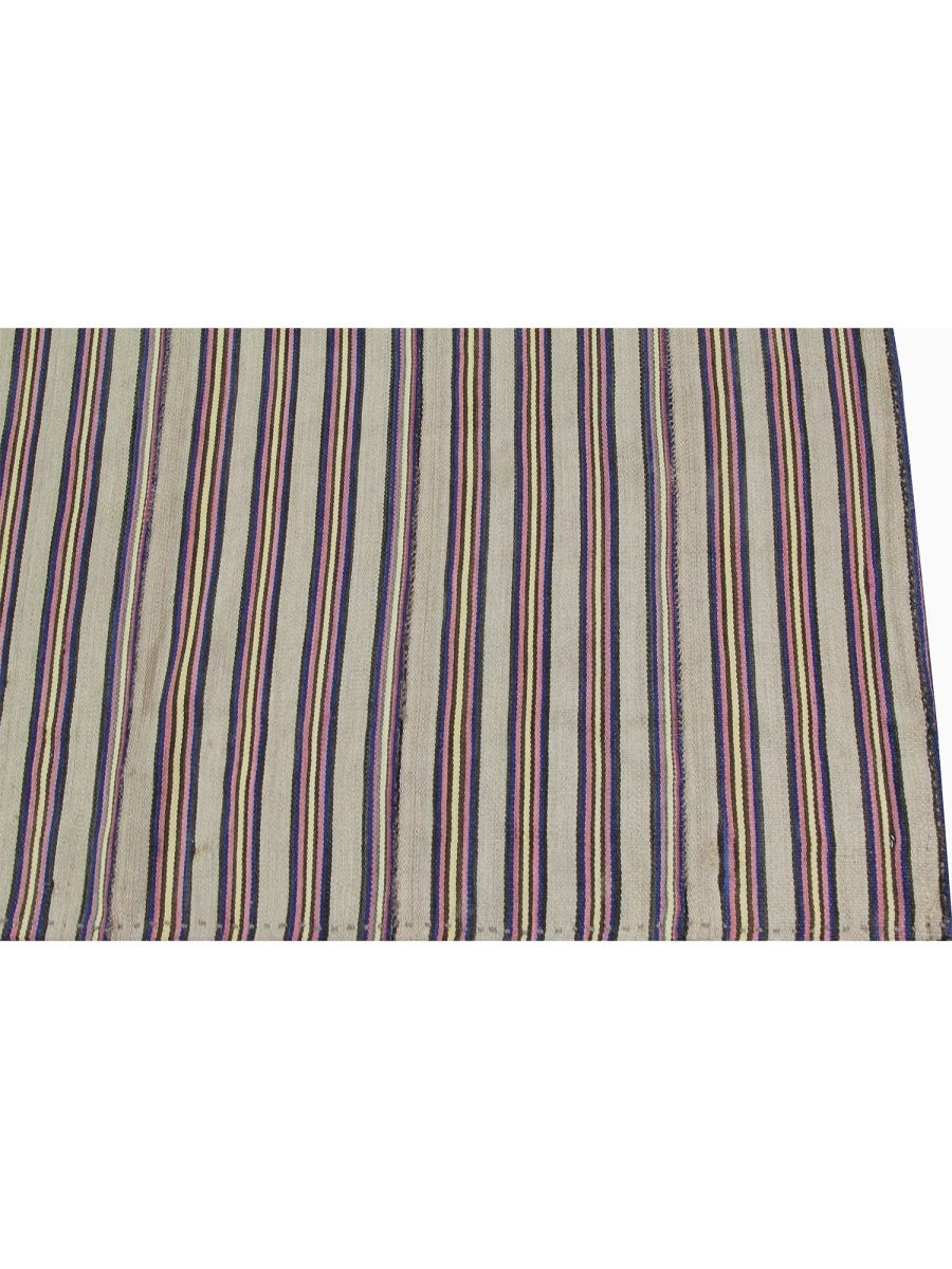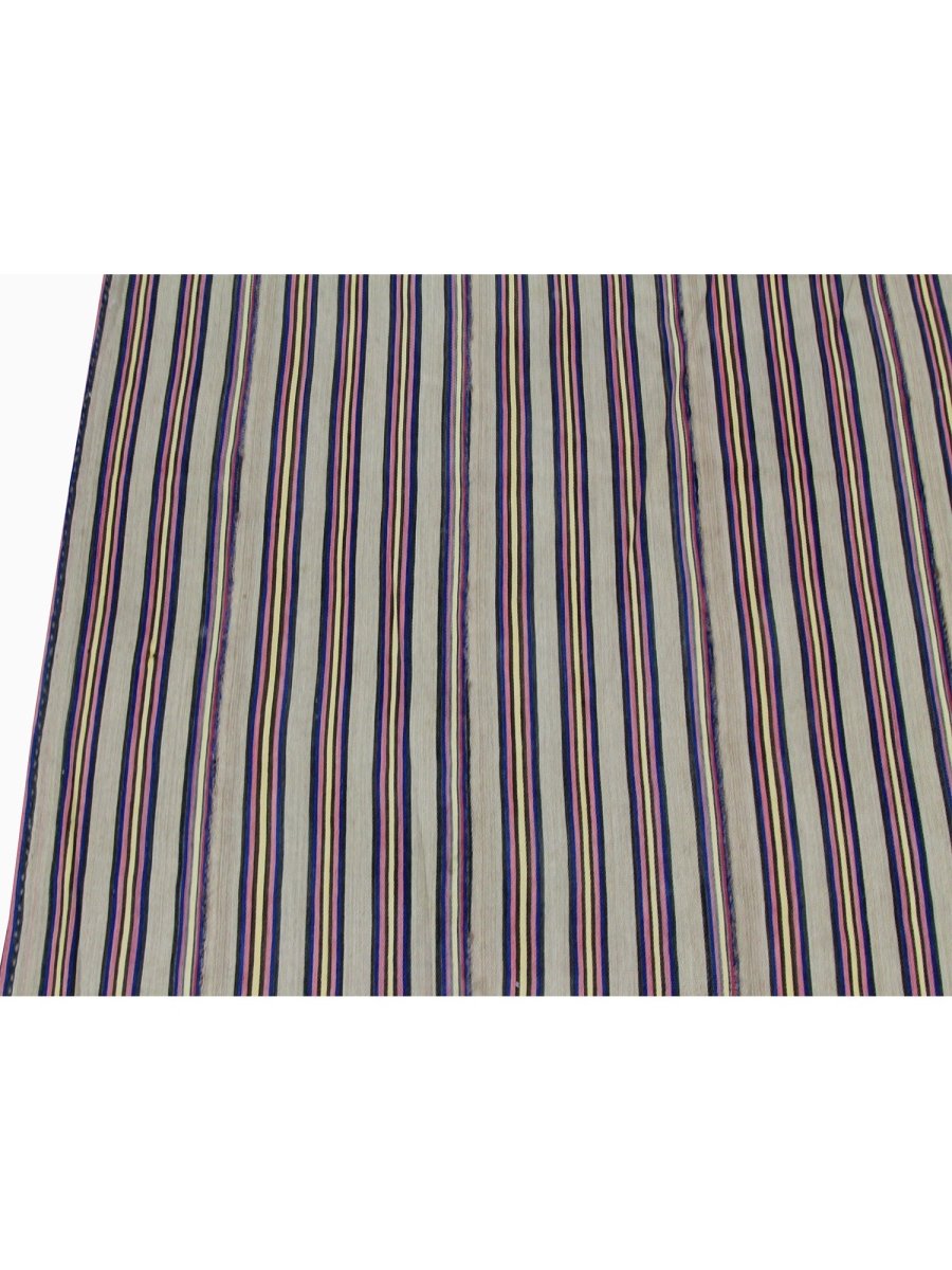 This charming 5x6 Persian Kilim rug is a delightful addition to any room, boasting a stunning color palette that adds a touch of warmth and sophistication. Made using a flat-weave construction, it features a beautiful combination of brown and black hues, perfectly balanced to create a sense of calm and serenity. The subtle blend of colors and intricate striped pattern adds a touch of warmth and depth to the rug's design, which is characterized by delicate motifs and subtle color gradations. With its compact size of 4'7" x 6'3", this Persian Kilim rug is perfect for adding a touch of elegance. Its exceptional quality and beautiful design make it a valuable addition to any home. The rug's timeless appeal and durable construction ensure it will remain a treasured possession for years to come. Whether displayed in a formal setting or a cozy retreat, this Persian Kilim rug is sure to impress.