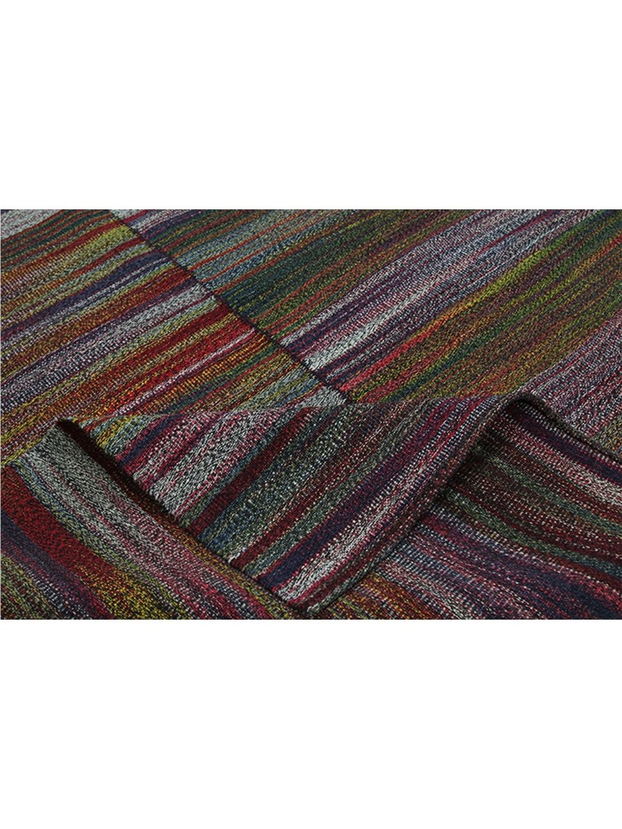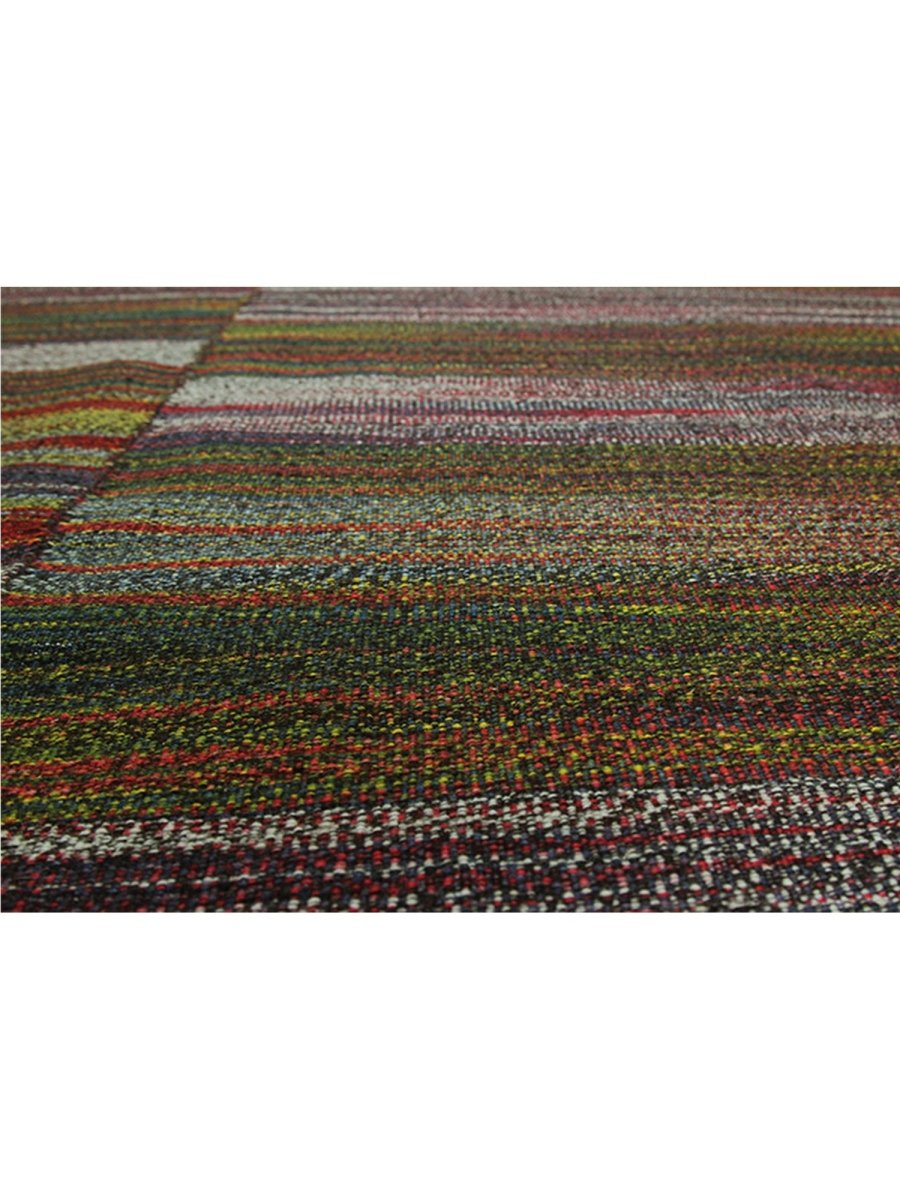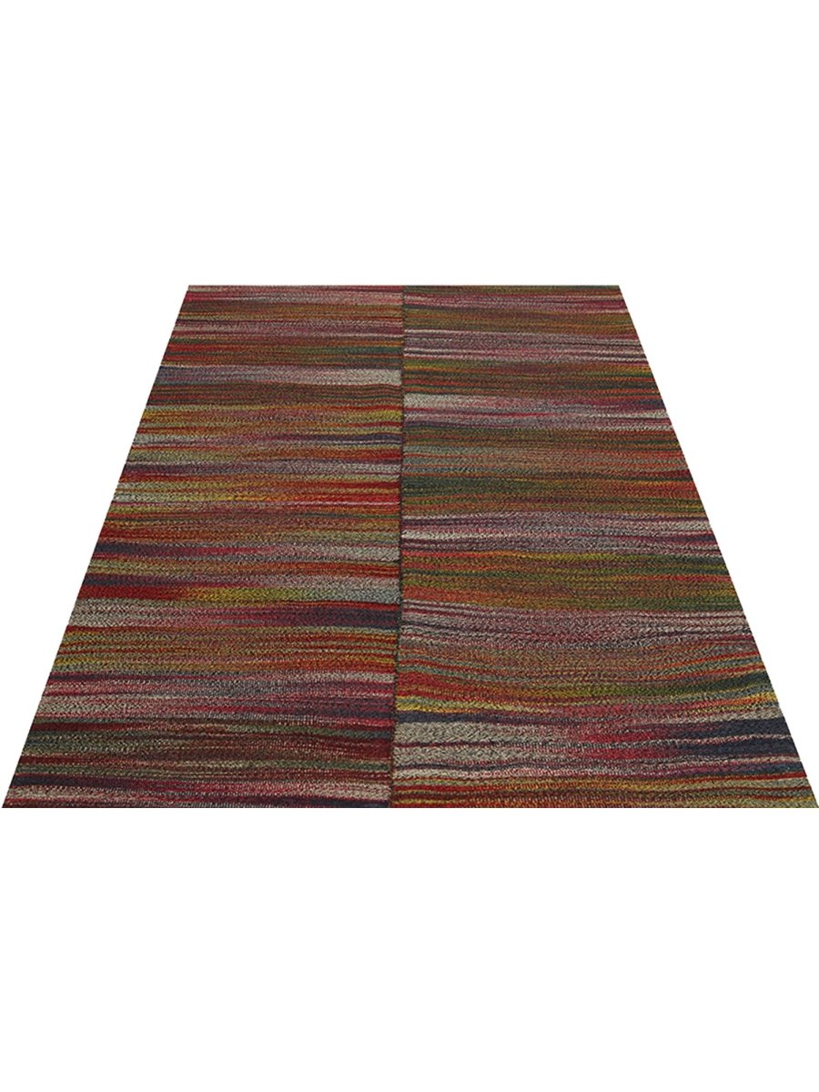 Add a touch of Persian artistry to your home decor with this 5x6 Kilim rug, crafted from 100% wool for lasting durability. The striped pattern in green, red, yellow, and brown blends effortlessly with various interiors. This flat-weave rug is lightweight yet sturdy its authentic Persian craftsmanship ensures a timeless appeal. The carefully woven stripes create a sense of movement, adding depth and character to your space. Whether used as a statement piece or a subtle accent, this rug enhances any setting with its rich texture and heritage-inspired design.