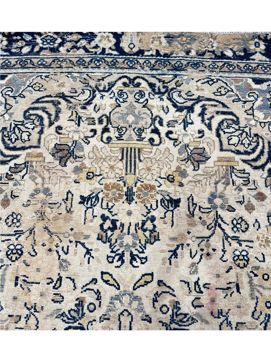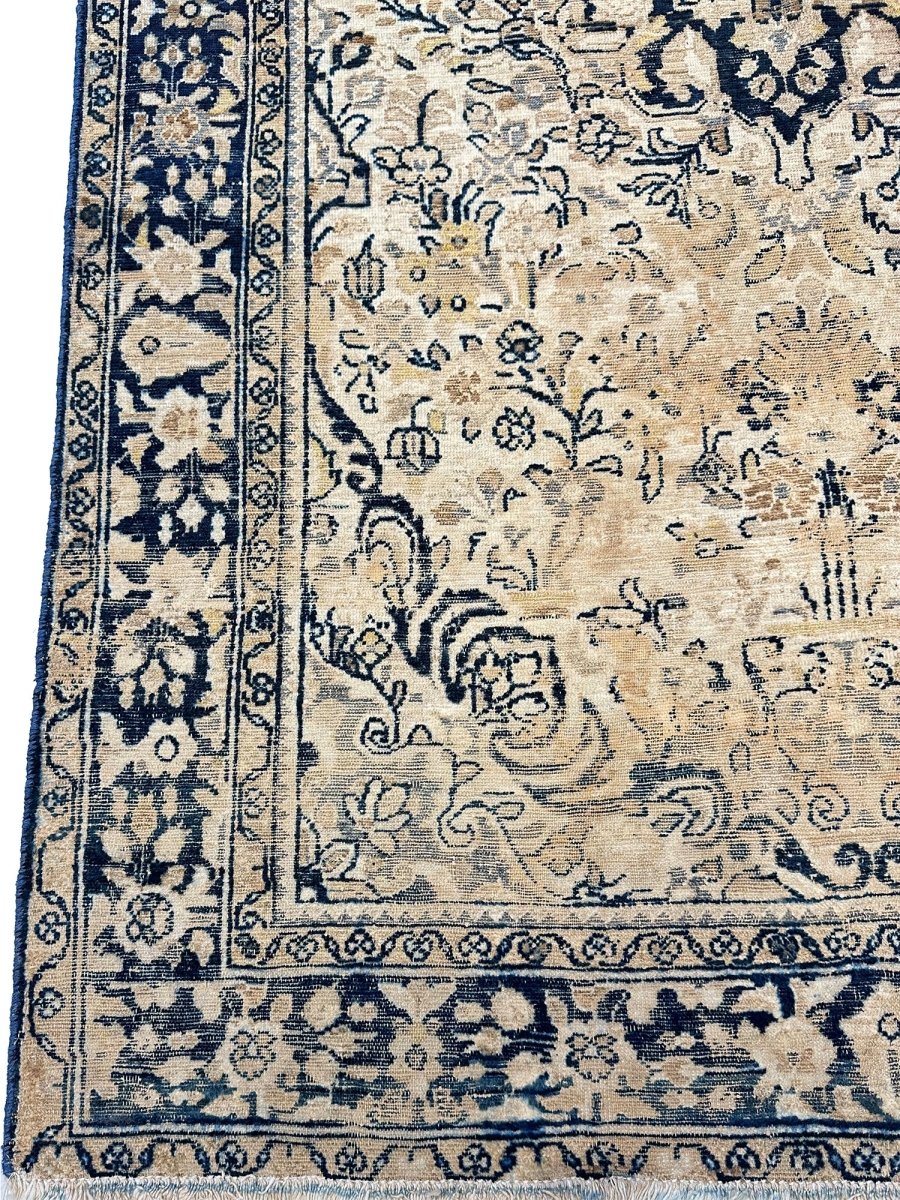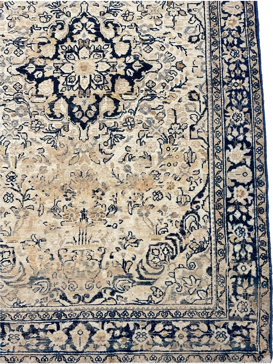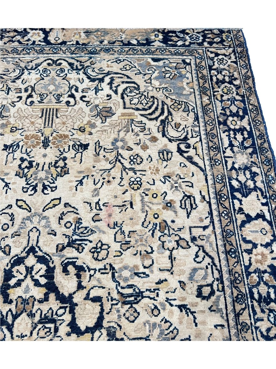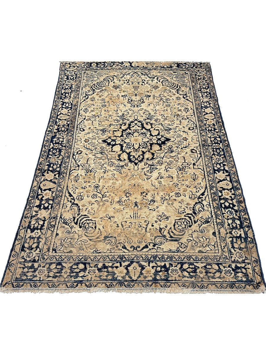 Experience the art of Persian weaving with the 5x7 Persian Tabriz Area Rug. Known for their extraordinary weaving skill and careful details, ornate medallion patterns, exquisite details, and wonderful balance. Handwoven in Persia with fine wool, the richness of this rug presents depths with its rich tones of navy blue and beige, to impart depth and character in your environment. Enjoy our complimentary shipping within the US.
