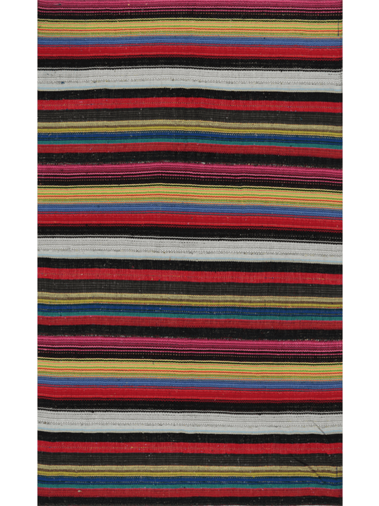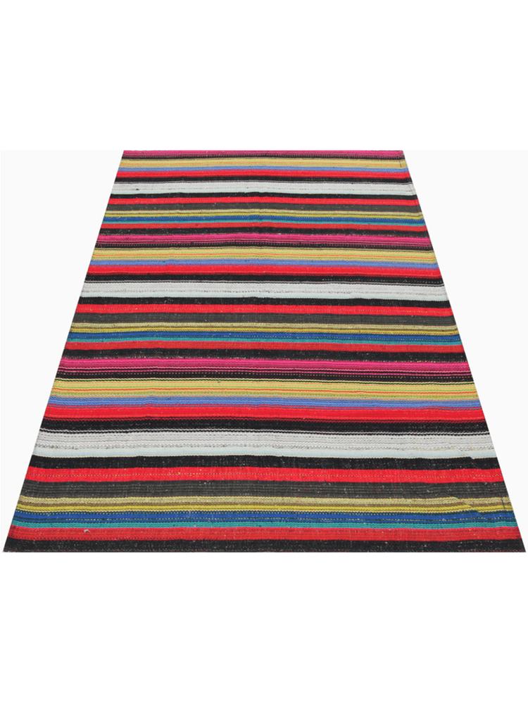 Designed to bring charm and comfort, this 5x9 Persian Kilim rug showcases a stunning striped pattern in yellow, black, white, blue, red, and pink. Crafted from a durable cotton blend with flat-weave construction. Handwoven from high-quality wool. Whether used as a focal point or a complementary accent, this Persian Kilim rug brings timeless craftsmanship and cultural charm into your home. Its lightweight design makes it easy to move and style in different spaces. The intricate weaving technique enhances durability for long-lasting use. A perfect blend of culture and sleek aesthetics, this rug adds warmth and character to any setting.