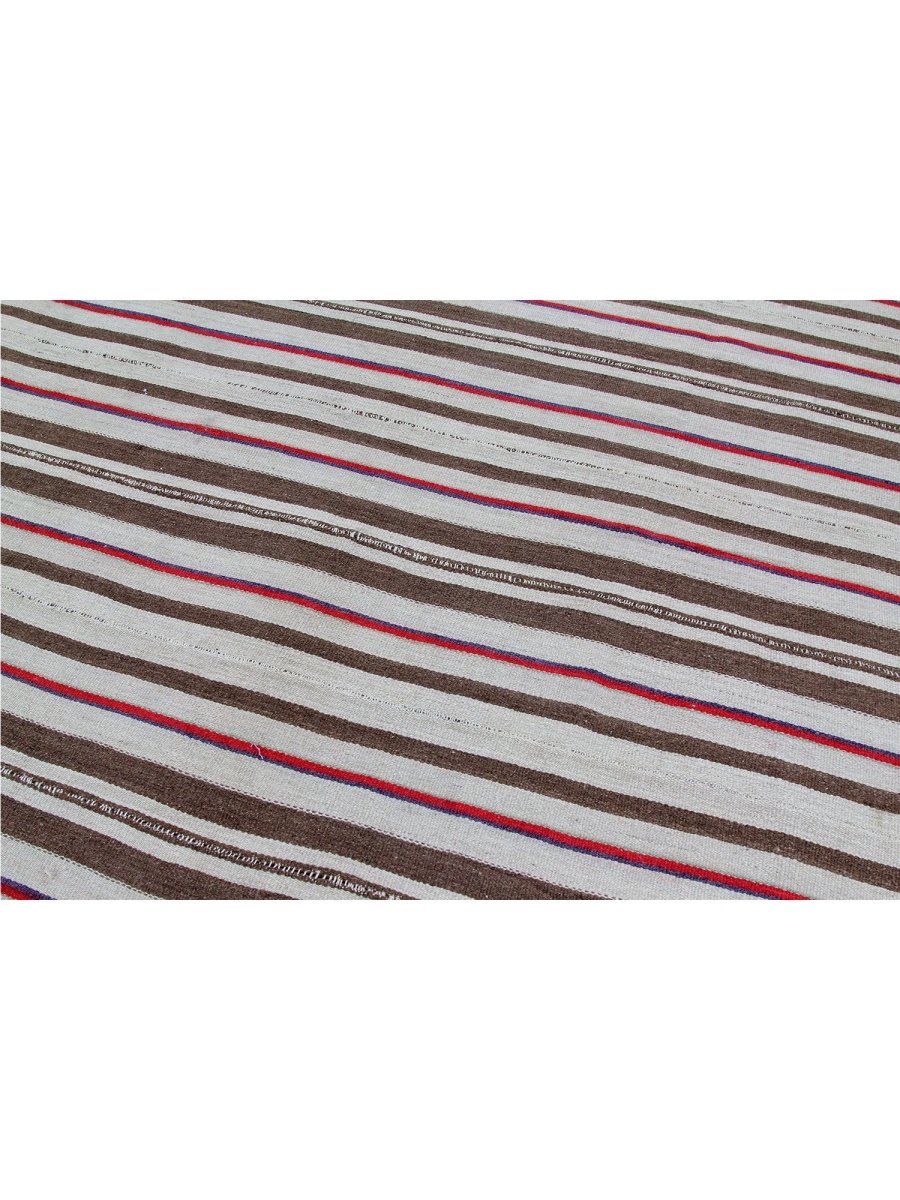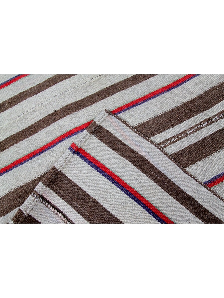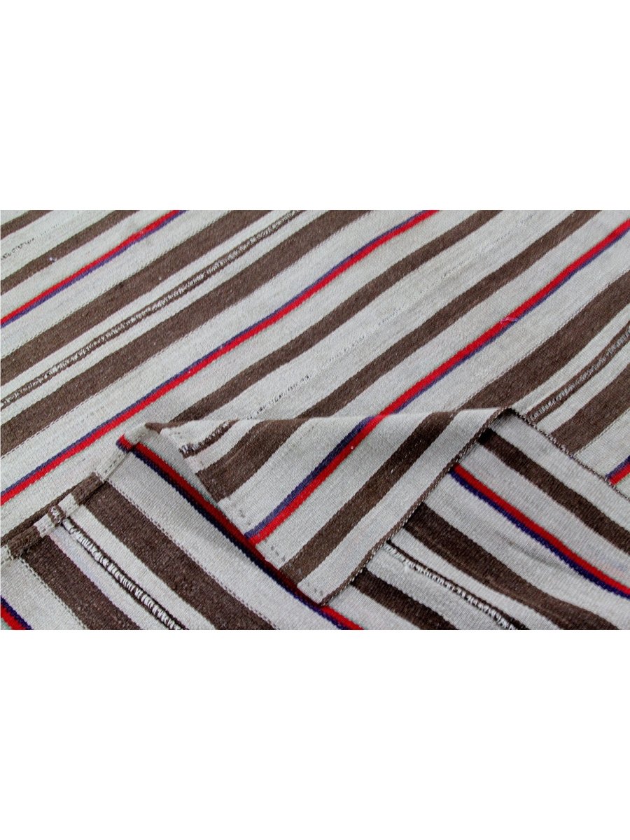 Hand-knotted in Persia from high-quality wool, this rug features a gray base accented by horizontal stripes in earthy brown and subtle red tones. The alternating stripe thickness creates a balanced visual flow, while the delicate red accents provide contrast. Its neutral tones offer versatility, blending seamlessly into rustic, farmhouse, or chic interiors. This durable wool rug provides softness and resilience, making it an ideal choice for living rooms, dining spaces, or cozy nooks. With its timeless charm and warm hues, this rug brings comfort and cultural richness to your home. Its expertly woven design ensures lasting durability and comfort underfoot. Elevate your space with a piece that embodies heritage and craftsmanship.