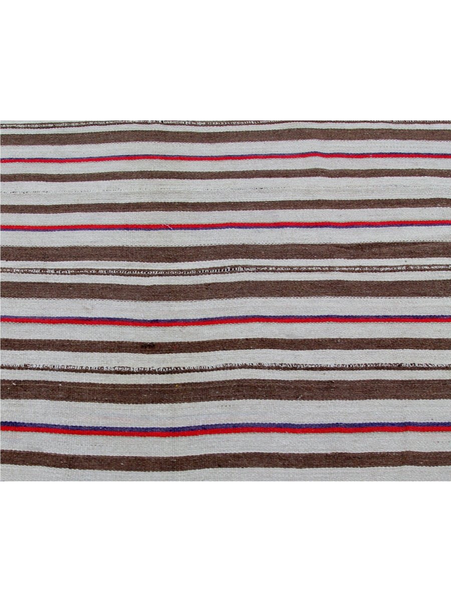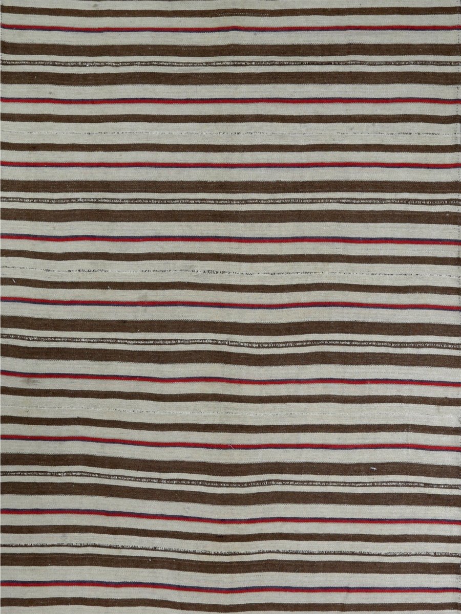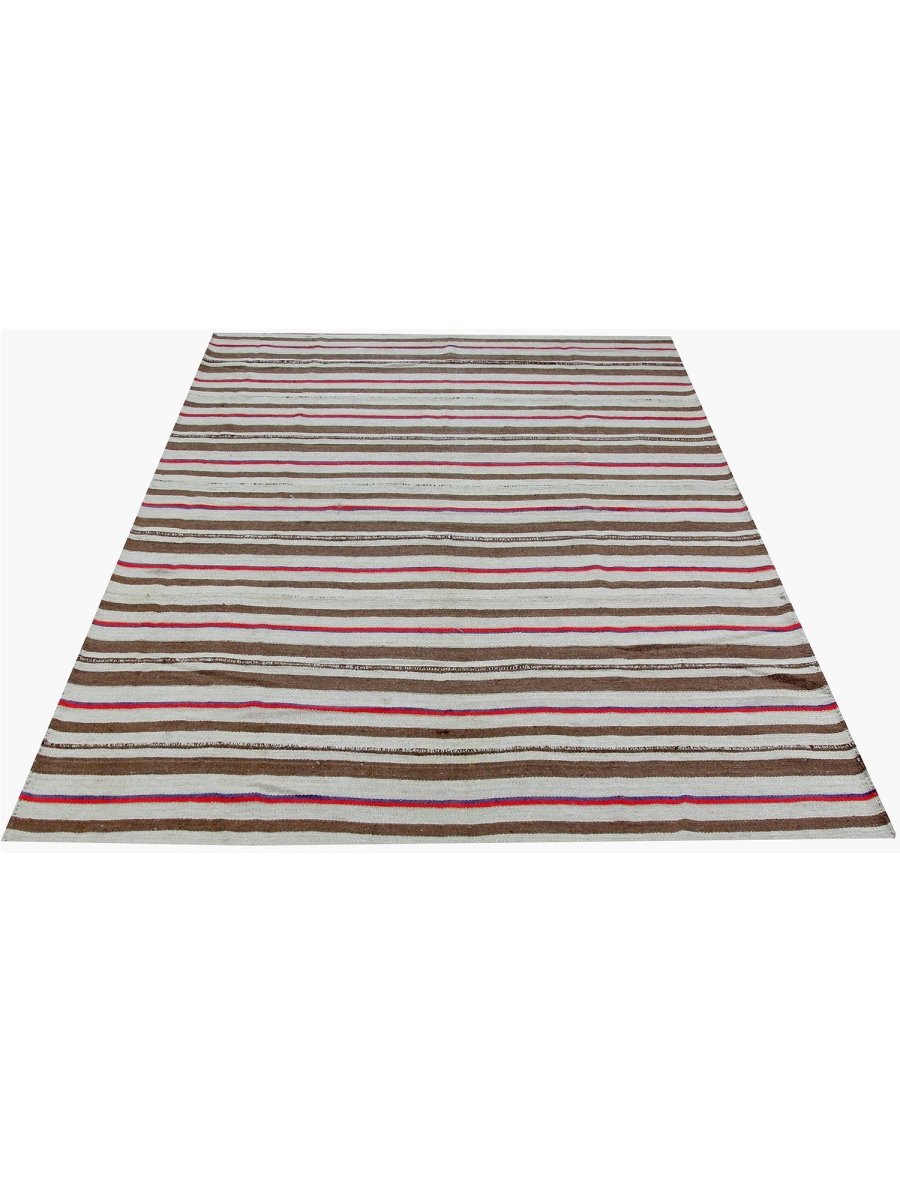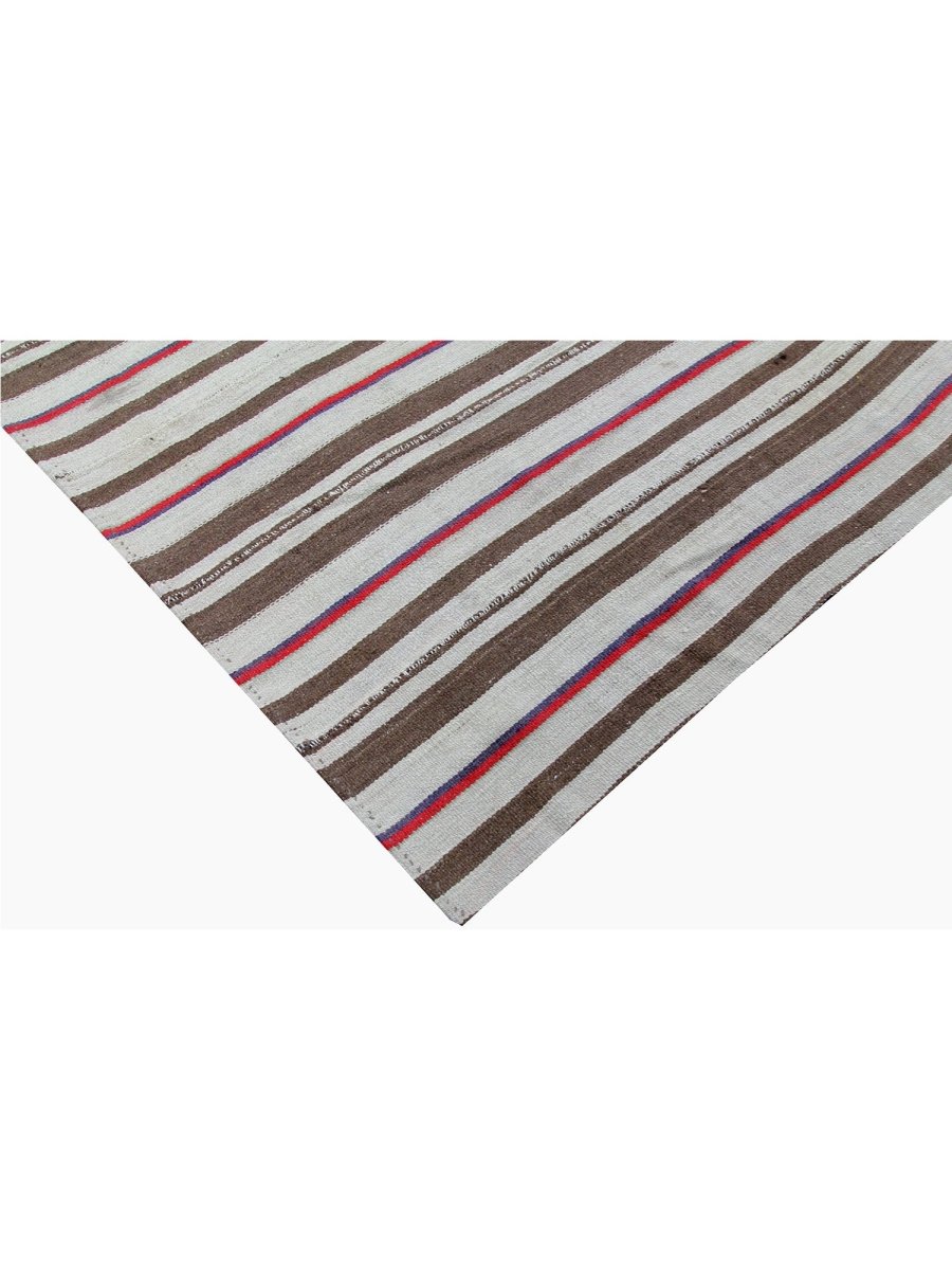 Hand-knotted in Persia from high-quality wool, this rug features a gray base accented by horizontal stripes in earthy brown and subtle red tones. The alternating stripe thickness creates a balanced visual flow, while the delicate red accents provide contrast. Its neutral tones offer versatility, blending seamlessly into rustic, farmhouse, or chic interiors. This durable wool rug provides softness and resilience, making it an ideal choice for living rooms, dining spaces, or cozy nooks. With its timeless charm and warm hues, this rug brings comfort and cultural richness to your home. Its expertly woven design ensures lasting durability and comfort underfoot. Elevate your space with a piece that embodies heritage and craftsmanship.