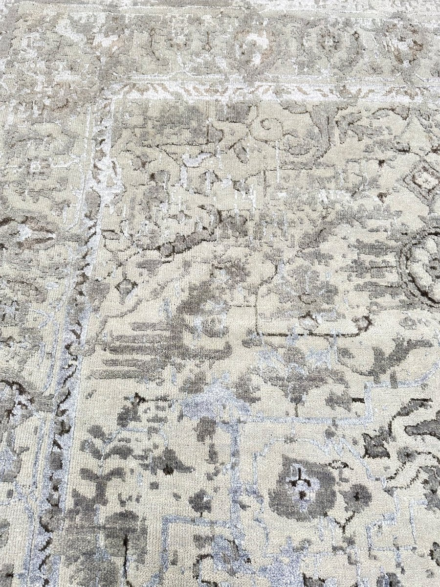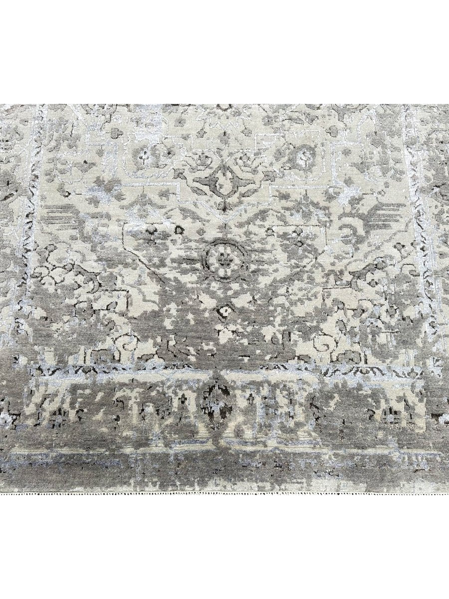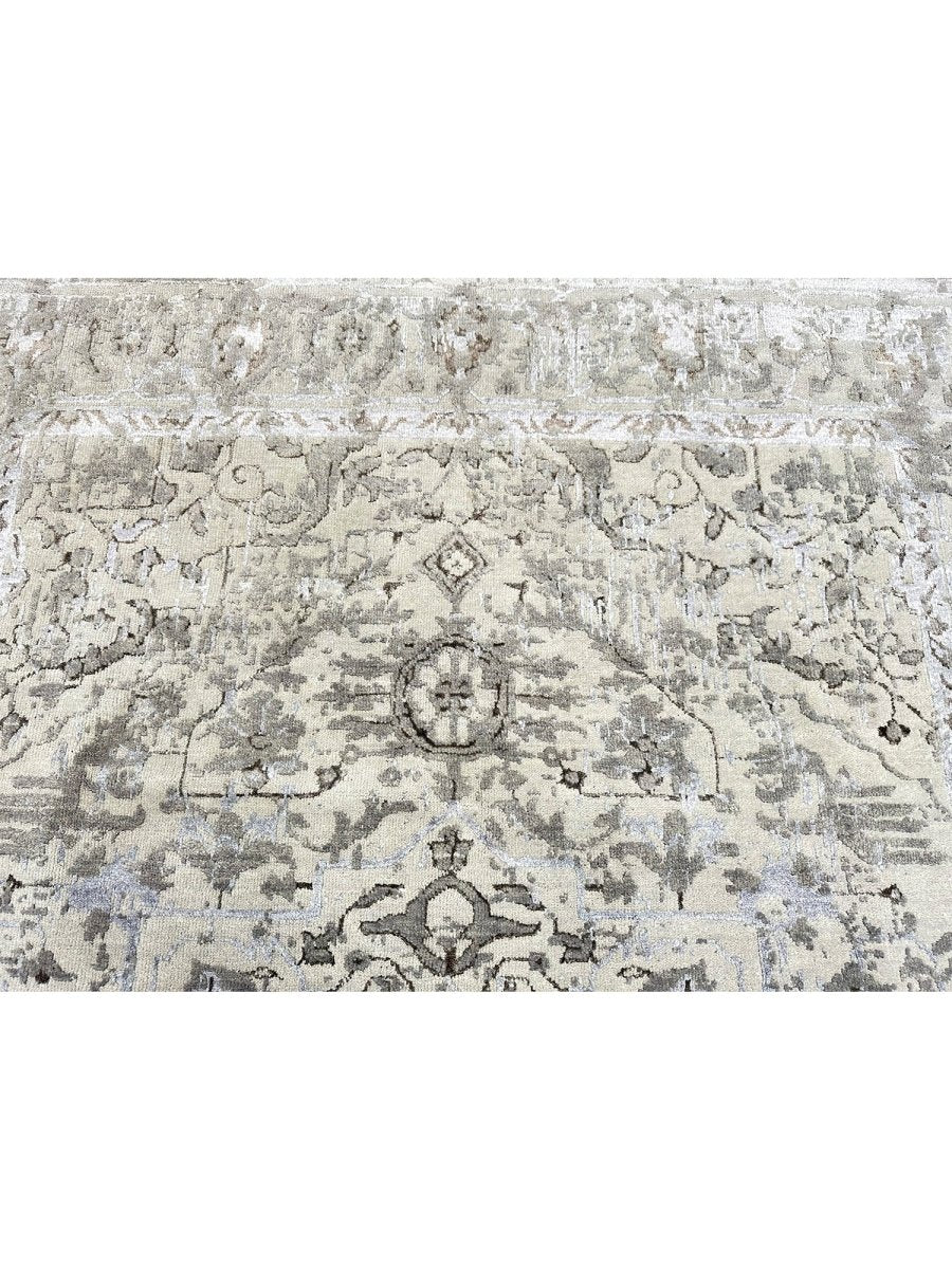 Immerse your space in the sophisticated allure of this 6x8 Transitional Area Rug. This remarkable piece, meticulously hand-knotted by skilled artisans in India from a luxurious blend of wool and bamboo silk, offers a sublime texture and subtle sheen. It features an intricate geometric pattern,rendered in a sophisticated gray and warm ivory palette, the rug's design brings a profound visual harmony and serene ambiance to any setting. Crafted for both enduring beauty and sumptuous comfort, this rug promises to be a cherished addition to your home for generations to come. Shop now to avail the benefit of quick delivery to your doorstep.
