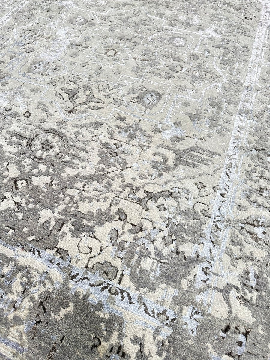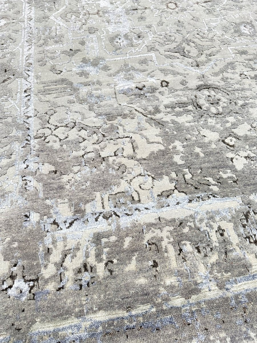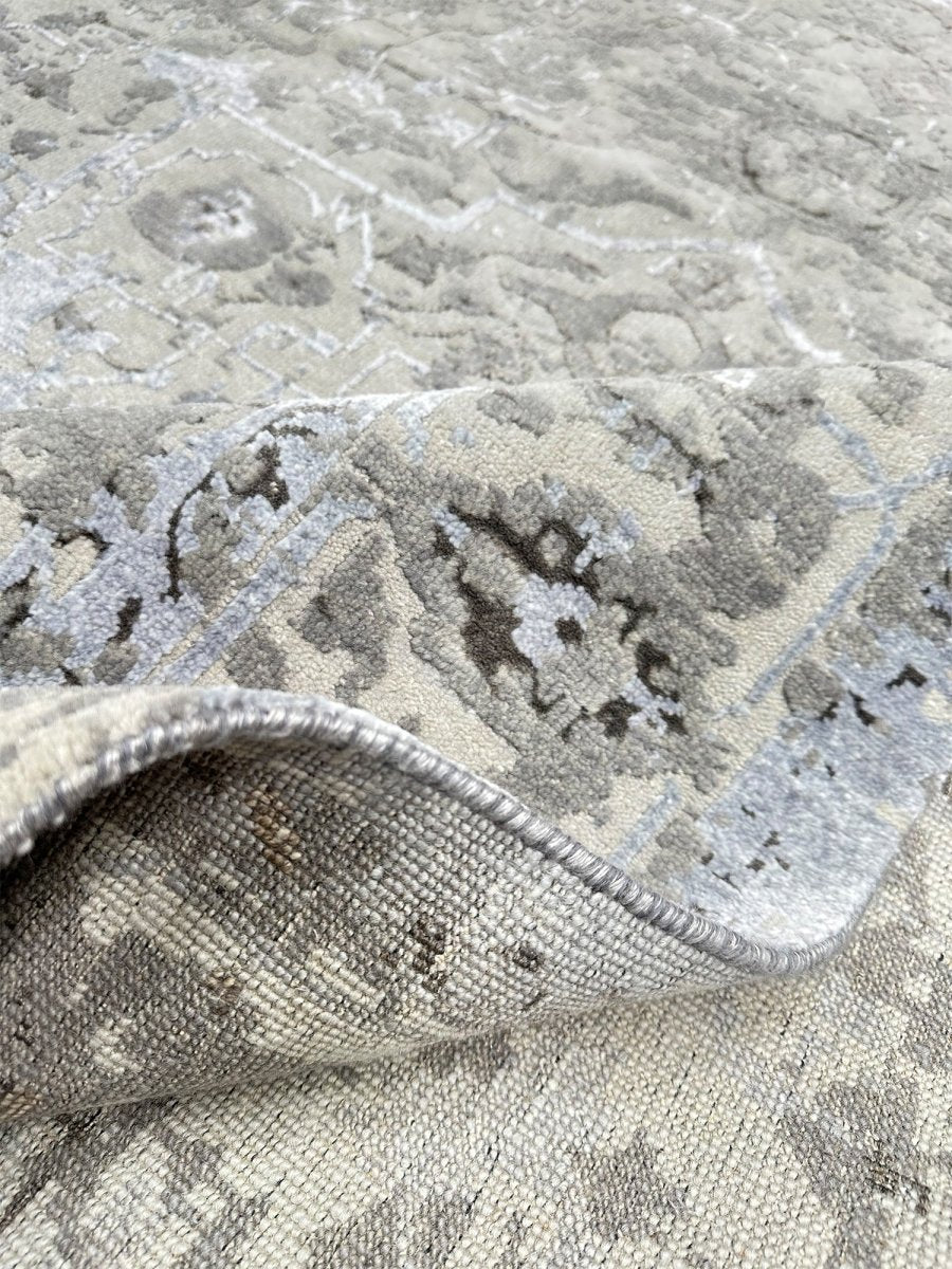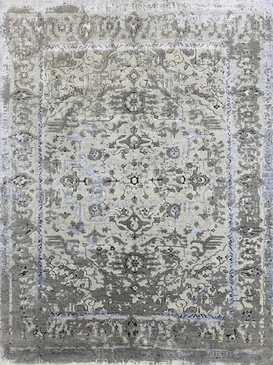 Immerse your space in the sophisticated allure of this 6x8 Transitional Area Rug. This remarkable piece, meticulously hand-knotted by skilled artisans in India from a luxurious blend of wool and bamboo silk, offers a sublime texture and subtle sheen. It features an intricate geometric pattern,rendered in a sophisticated gray and warm ivory palette, the rug's design brings a profound visual harmony and serene ambiance to any setting. Crafted for both enduring beauty and sumptuous comfort, this rug promises to be a cherished addition to your home for generations to come. Shop now to avail the benefit of quick delivery to your doorstep.