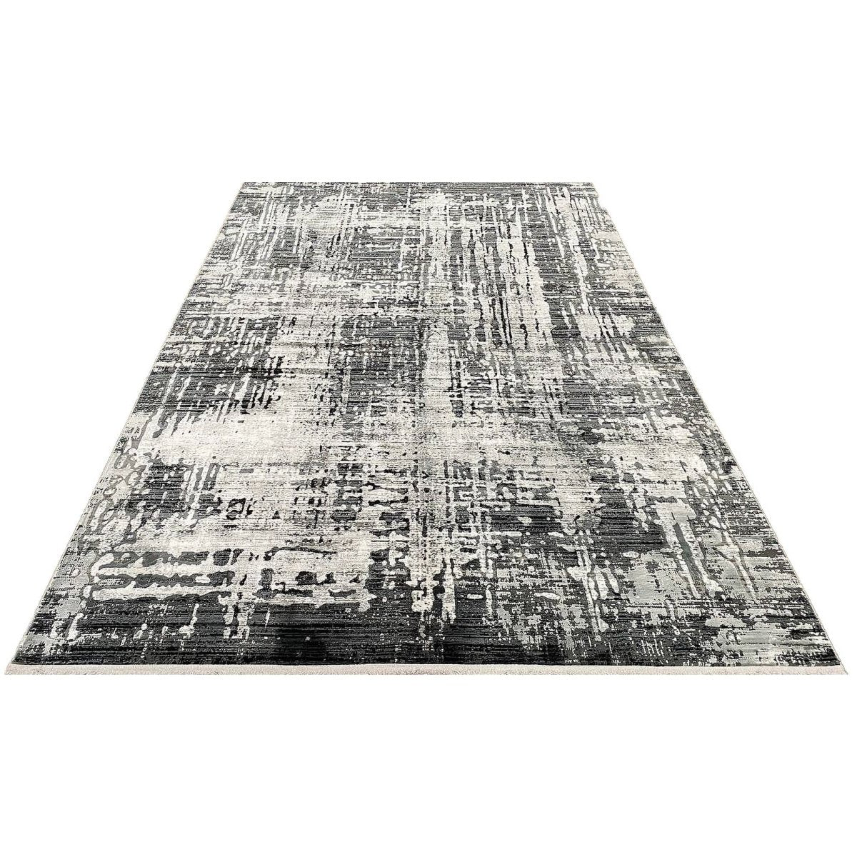 Introduce modern elegance to your space with this 6' x 10' contemporary Turkish area rug, crafted from high-quality polypropylene. The machine-made construction ensures durability and easy maintenance, making it suitable for a variety of spaces. Featuring a sophisticated abstract pattern in black, white, and gray tones, this rug complements contemporary, industrial, and minimalist interiors. Measuring 6'5" x 9'7", it adds depth, texture, and a soft underfoot feel, enhancing any room with style and functionality. Complimentary shipping is available across the U.S.