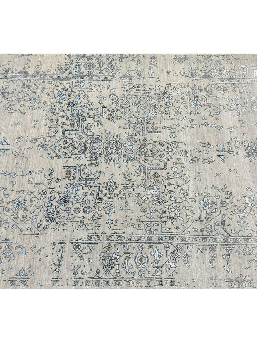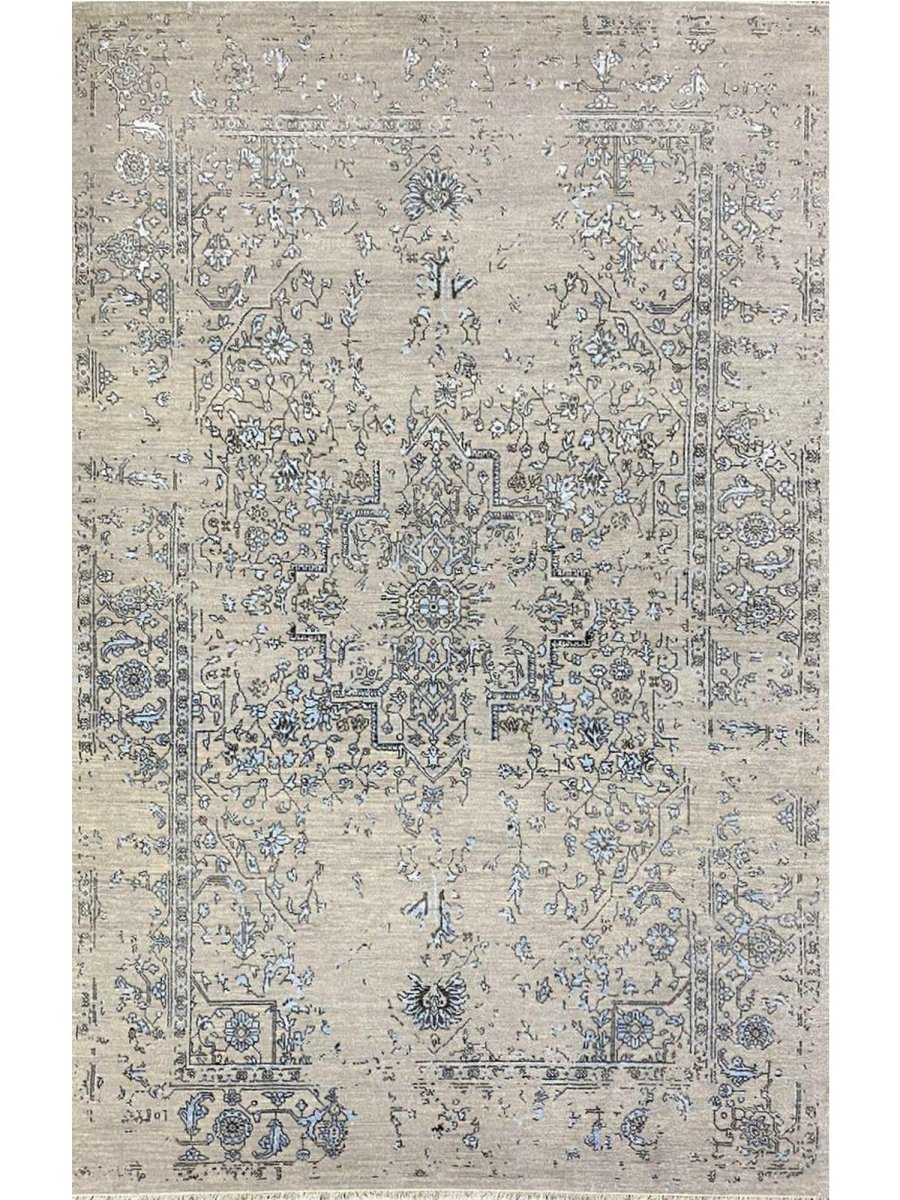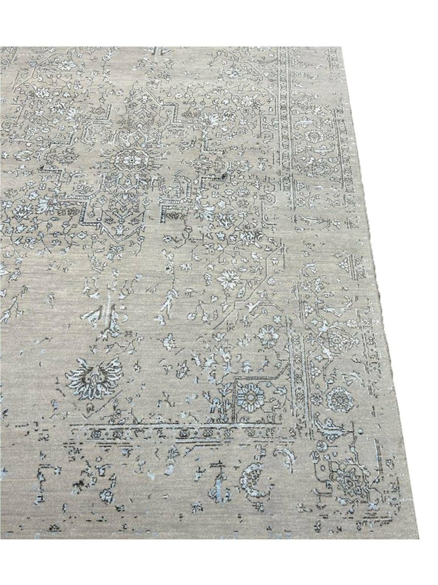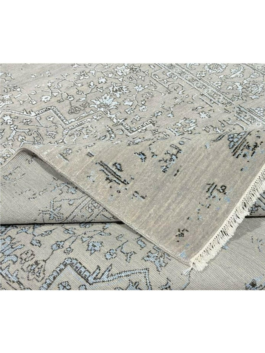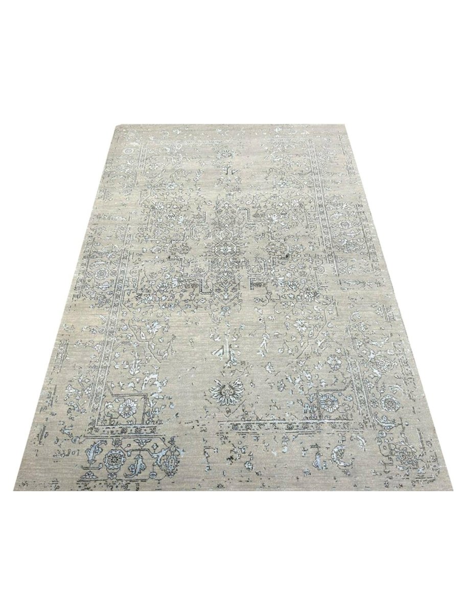 Immerse your space in the sophisticated charm of this magnificent 6x9 Transitional area rug. Hand-knotted by skilled artisans in India, this piece showcases a delightful floral pattern that brings a serene and inviting atmosphere to any room. Crafted from a luxurious blend of wool and bamboo silk, this rug offers a sumptuous underfoot feel and exceptional durability. The colors, including subtle tones of light gray, beige, and blue, create a harmonious and calming effect that effortlessly complements diverse decor styles. Its versatile size makes it an ideal choice for enhancing a living room, adding elegance to a dining area, or bringing comfort to a bedroom, seamlessly integrating into your existing aesthetic. This rug is a true testament to the skilled artistry of Indian weaving, promising to be a cherished addition that elevates the aesthetic and comfort of your home.