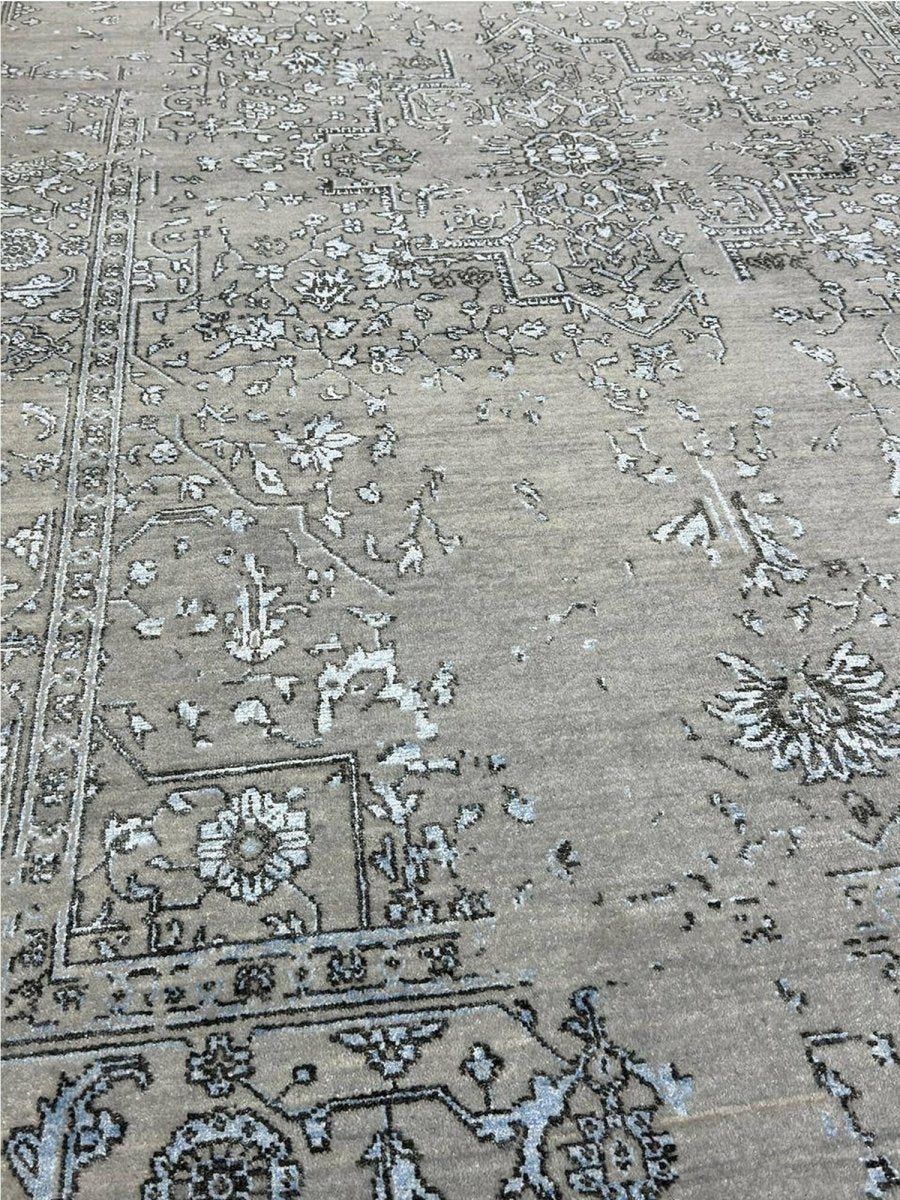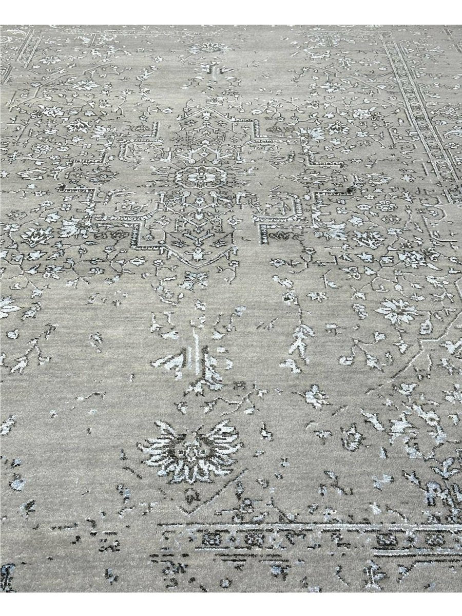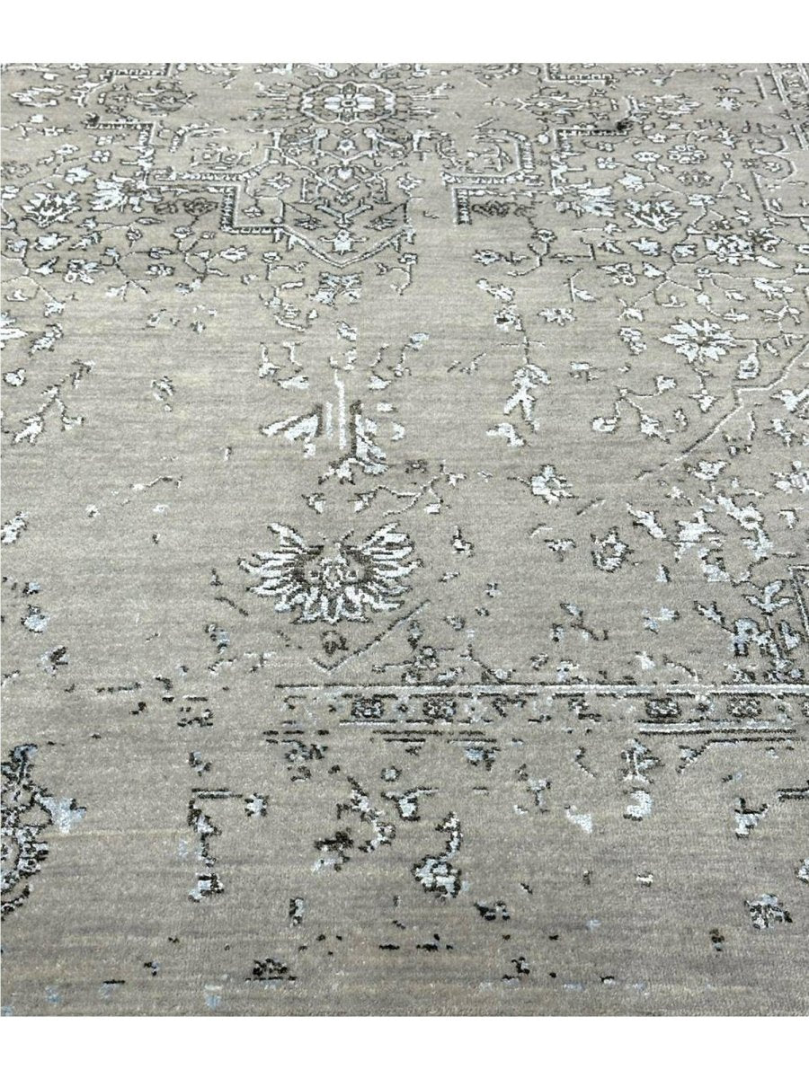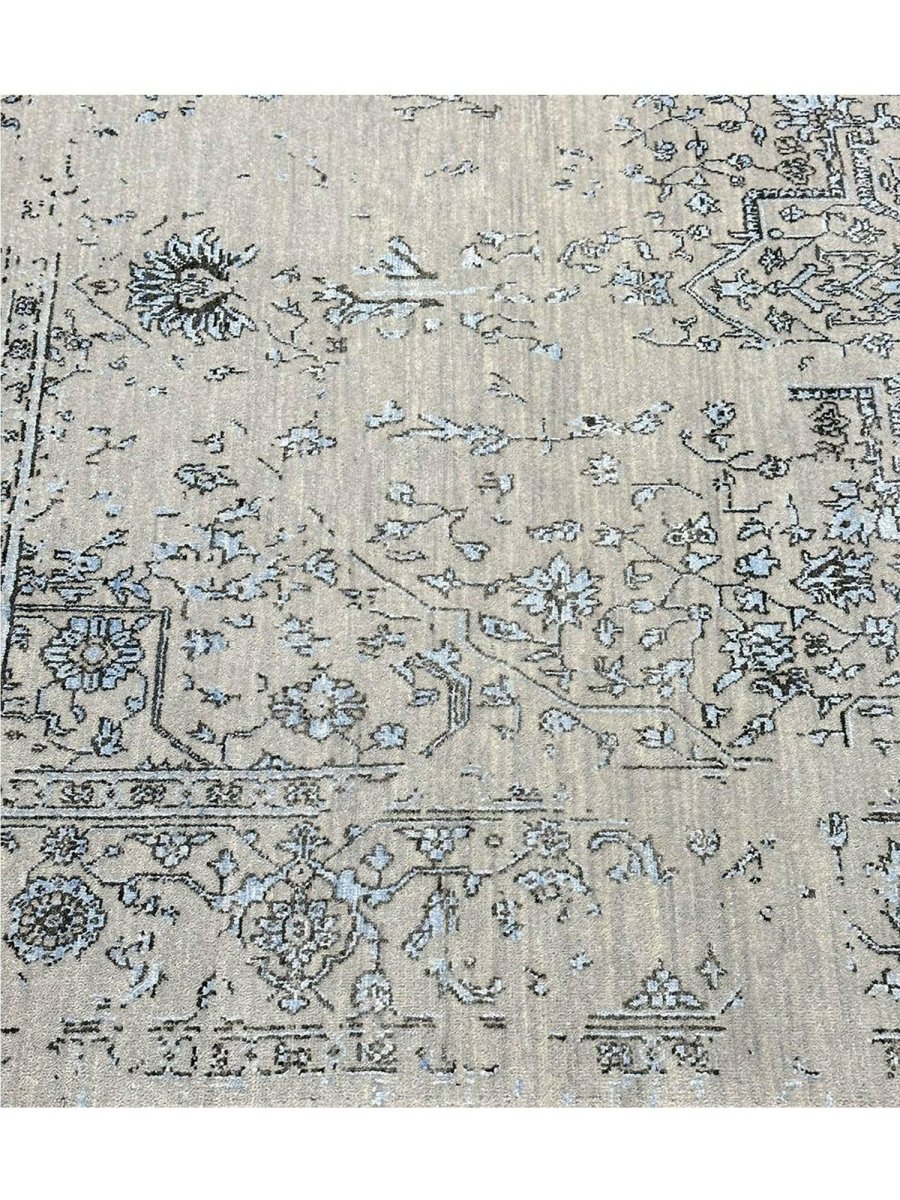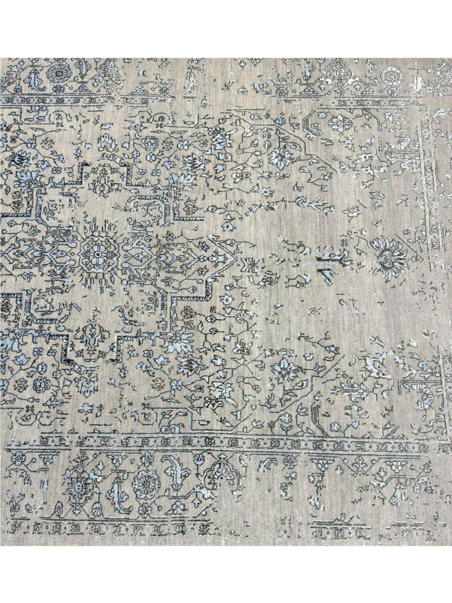 Immerse your space in the sophisticated charm of this magnificent 6x9 Transitional area rug. Hand-knotted by skilled artisans in India, this piece showcases a delightful floral pattern that brings a serene and inviting atmosphere to any room. Crafted from a luxurious blend of wool and bamboo silk, this rug offers a sumptuous underfoot feel and exceptional durability. The colors, including subtle tones of light gray, beige, and blue, create a harmonious and calming effect that effortlessly complements diverse decor styles. Its versatile size makes it an ideal choice for enhancing a living room, adding elegance to a dining area, or bringing comfort to a bedroom, seamlessly integrating into your existing aesthetic. This rug is a true testament to the skilled artistry of Indian weaving, promising to be a cherished addition that elevates the aesthetic and comfort of your home.