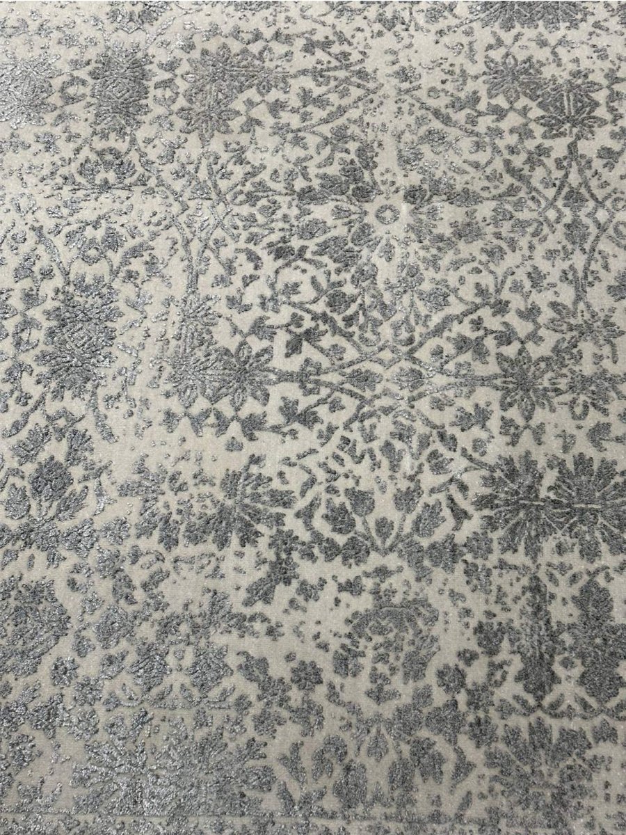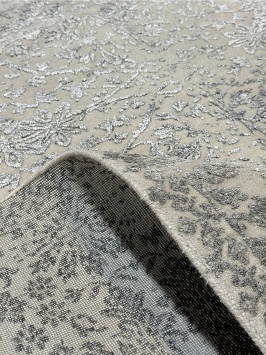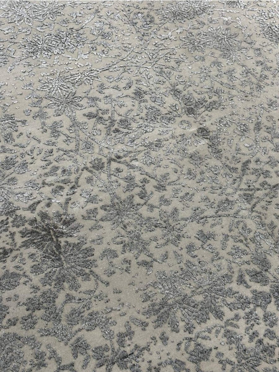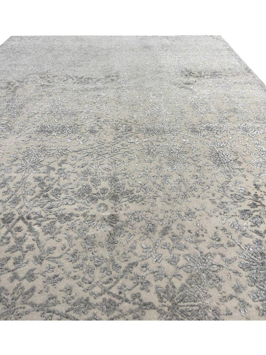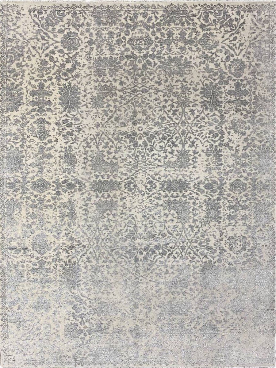 Enhance your bedrooms, living rooms, or home offices with the distinctive charm of this 6x9 transitional area rug. It is handwoven in India from premium wool and showcases a beautiful floral pattern, updated with a modern sensibility. The design elegantly blends a classic floral motif with a contemporary distressed and faded aesthetic, creating a sophisticated and understated look. The neutral color palette of soft gray and cream adds a touch of subtle elegance to any space, making it easy to integrate with your existing decor. Crafted for durability and style, this transitional rug will be a cherished addition to your home. Its soft texture and intricate, time-worn detailing make it a cozy yet refined choice for any room. Shop now and get free delivery to your doorstep in the United States. Experience timeless design and comfort in one elegant piece.
