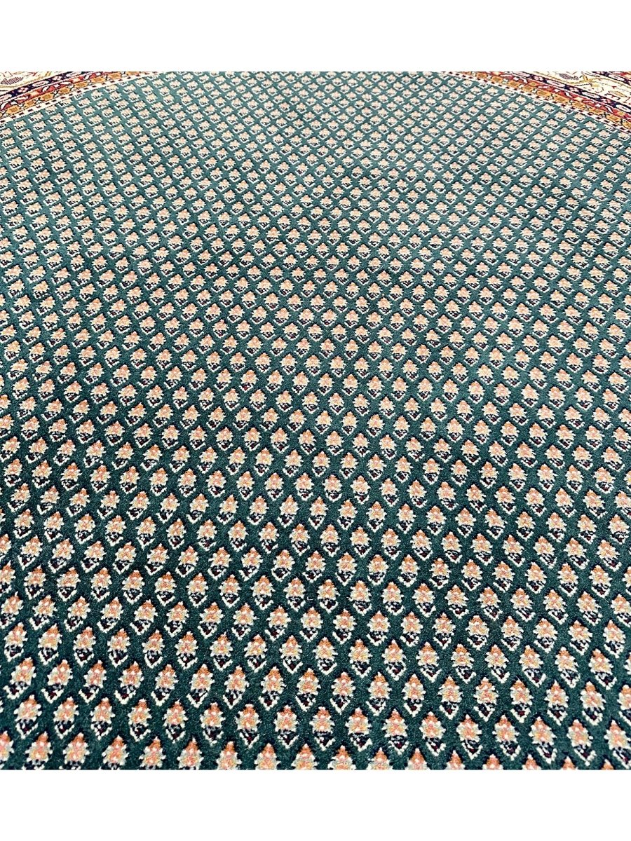 Exquisite the 7’ Green and Ivory Persian Design India rug which transforms perfectly your living space. The Rug made in India has Persian motifs with intricate floral features and elegant green and ivory colors. The beautiful border and the soft feel give a touch of luxury and warmth. Made of high-quality wool by a skilled artist for durability along with comfort.This rug will not only beautify your place but also provide lasting beauty and charm. Suits every interior, it is a timeless piece that will make any home sophisticated. Enjoy free US shipping.