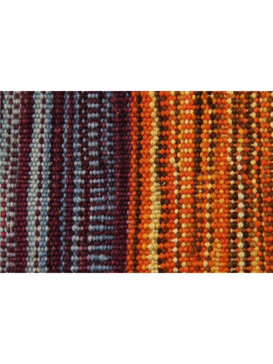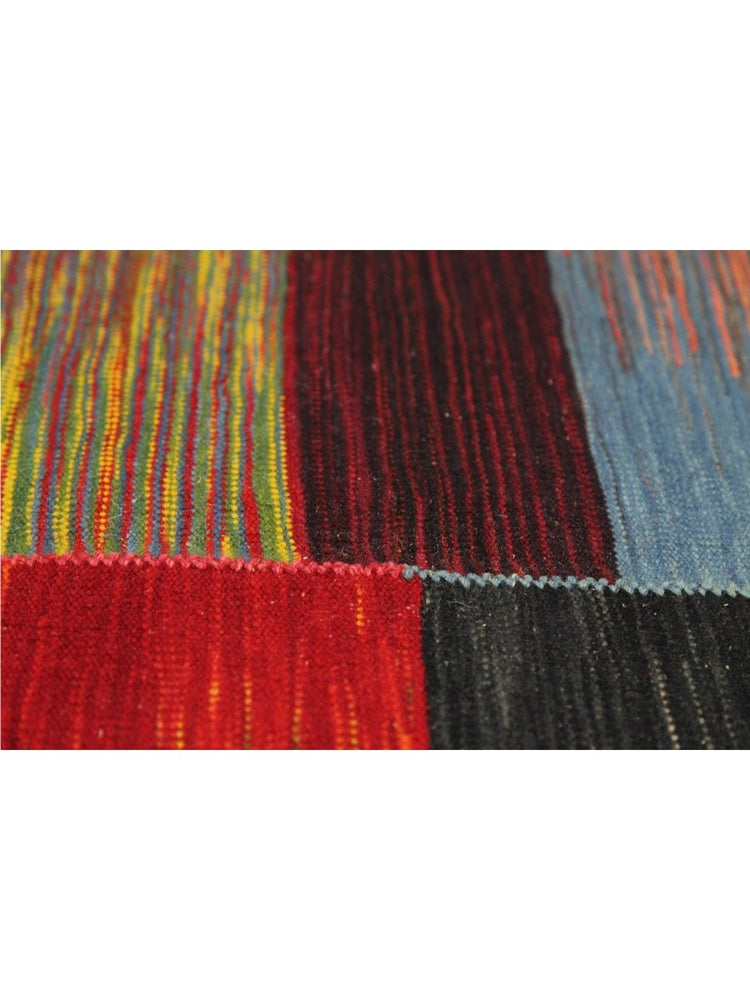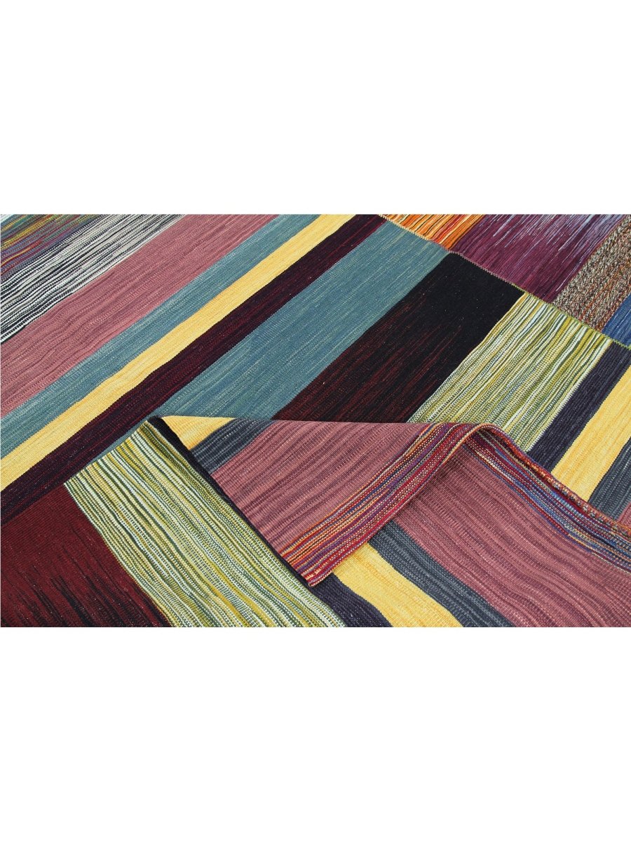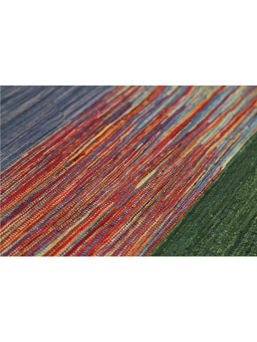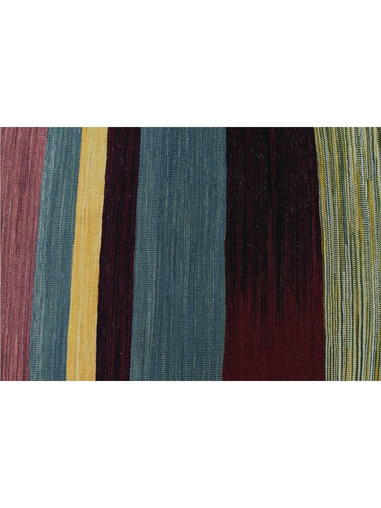 This 7x10 Persian Kilim area rug showcases a striking parallel stripe pattern in a vivid mix of yellow, blue, red, pink, rust, orange, and green. The bold and harmonious color combination creates a dynamic and visually engaging design, making it a standout piece in any space. Handwoven from high-quality Persian wool, this flatweave rug offers durability and a lightweight feel, ideal for both trendy and eclectic interiors. Its vibrant aesthetic brings warmth, energy, and cultural charm.