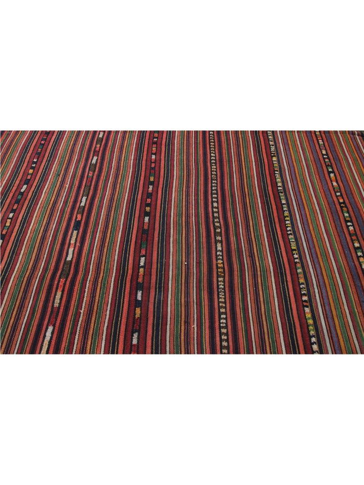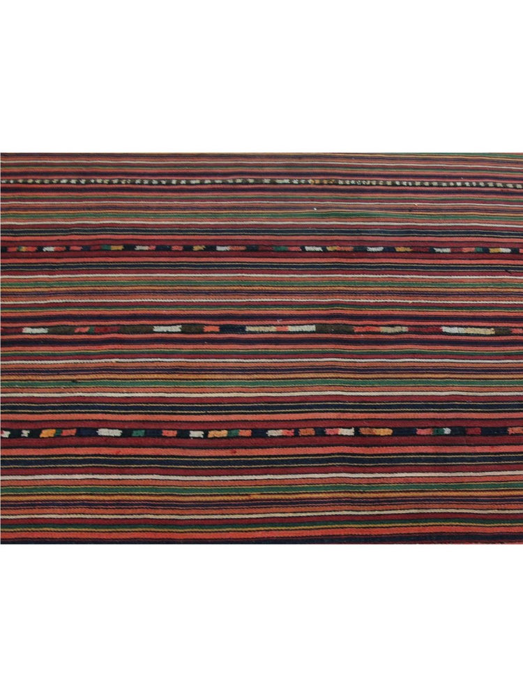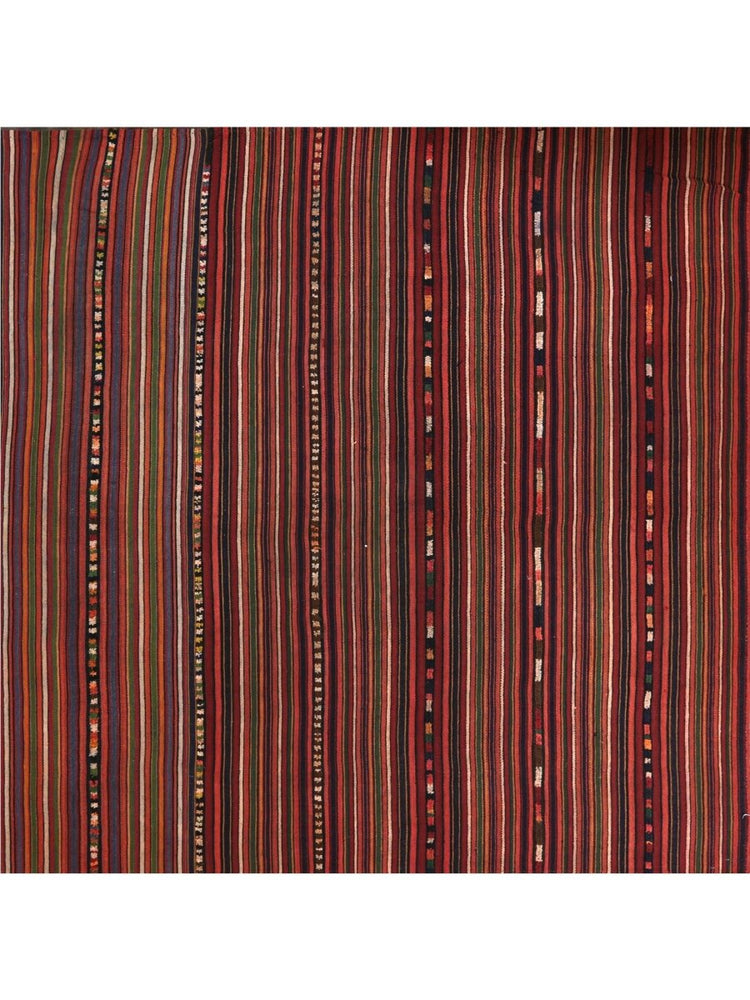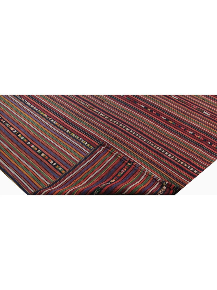 This exquisite Old Persian Kilim Area Rug is a rare and unique addition to any room, boasting a stunning color palette that adds a touch of warmth and energy. Made from high-quality wool using a flat-weave construction, it features a vibrant striped pattern on a rustic base, showcasing a beautiful combination of rust, black, white, green, purple, peach, pink, and orange hues. With its generous size of 7'0" x 7'3", this Old Persian Kilim Area Rug is perfect for adding a touch of sophistication. Its exceptional quality, beautiful design, and rich history make it a valuable addition to any home. The intricate striped pattern and rustic base will add depth and visual interest to any room, while the rug's durability ensures it will remain a beautiful and functional piece for years to come.