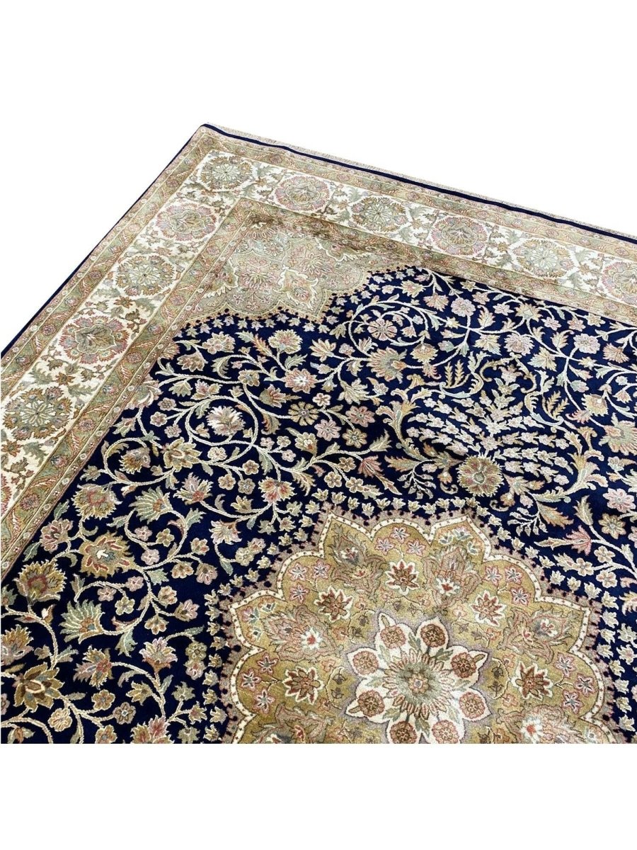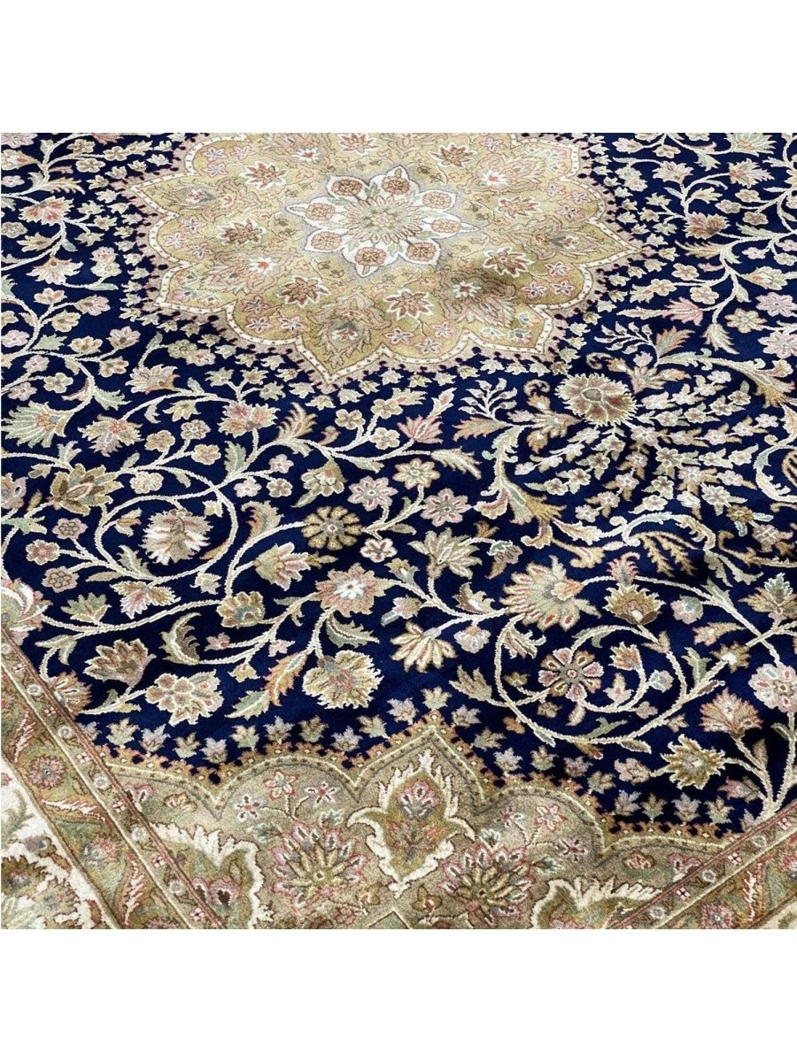 Add a touch of casual style to your home with this 8x10 Old Persian Tabriz Area Rug, crafted in India. This rug features a captivating medallion pattern, showcasing a simple yet effective design in a beige, brown, and blue palette. Its durable wool construction ensures longevity and easy care, perfect for living rooms, bedrooms, and dining spaces. The clean finish reflects quality craftsmanship and design. This piece effortlessly brightens, adding warmth, texture, and a relaxed feel. A blend of simple design and function, it easily enhances any space. Enjoy the benefit of free shipping across the United States. Each rug offers a distinct look, with subtle variations inherent to its creation.