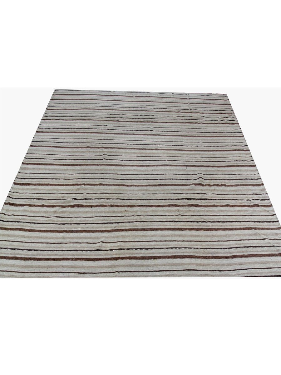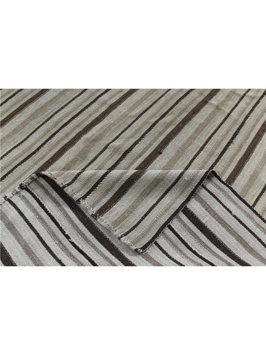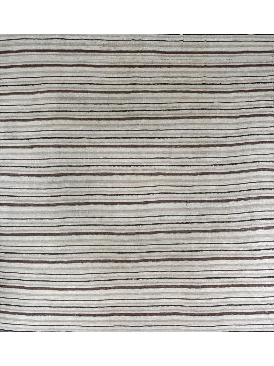 This 9x9 Old Persian Kilim Area Rug is a stunning representation of expert craftsmanship, featuring intricate striped patterns and a rich color palette of gray, brown, and beige tones. Hand-knotted in Persia using time-honored weaving techniques, this rug exudes authenticity and artistry. The flat-weave construction ensures durability while maintaining a lightweight, comfortable texture underfoot.