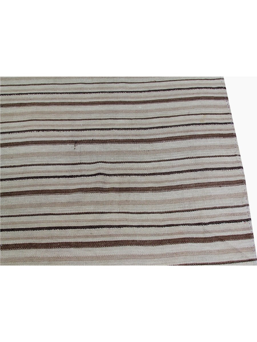 The beautifully woven striped pattern adds depth and movement to the design, making it a visually captivating addition to any space. Its neutral yet warm hues allow it to blend seamlessly with various decor styles, from classic and rustic to eclectic and bohemian interiors. Whether used as a focal point in a spacious living room, an elegant touch in a dining area, or a cozy accent in a bedroom, this rug enhances any environment with its timeless charm.