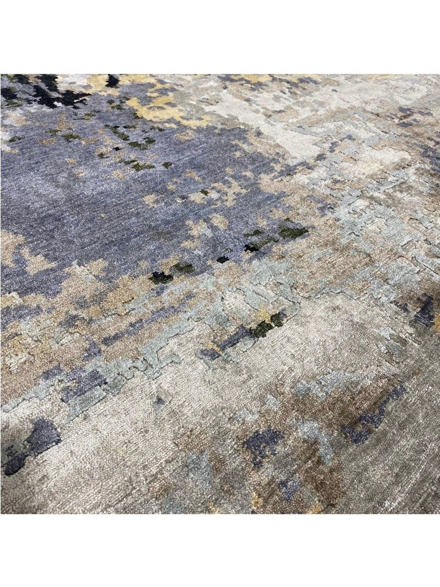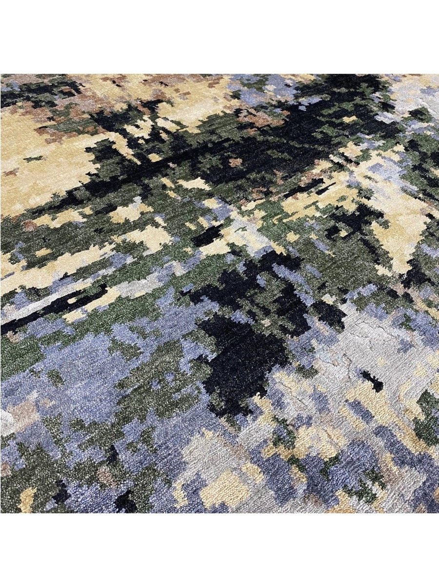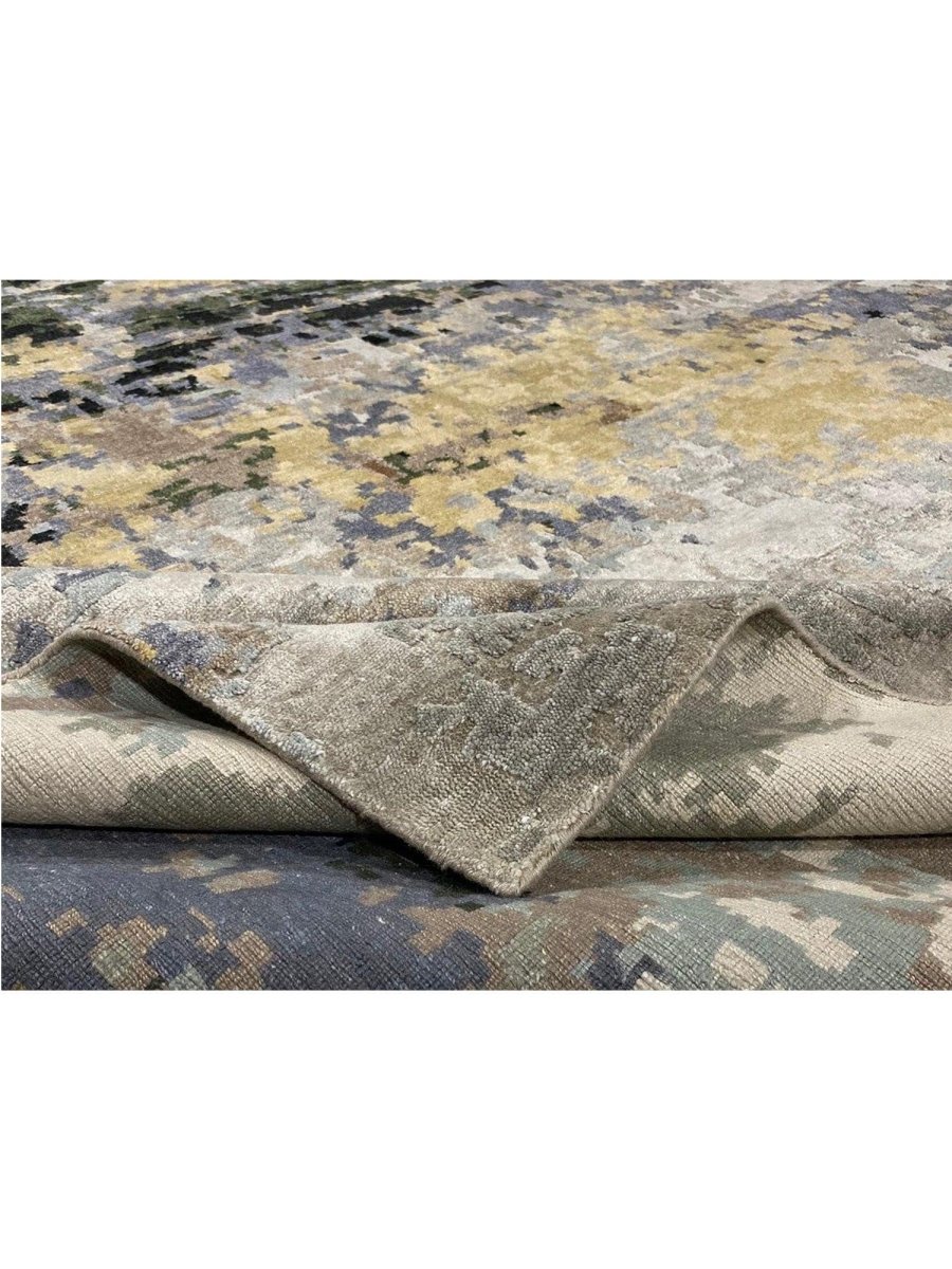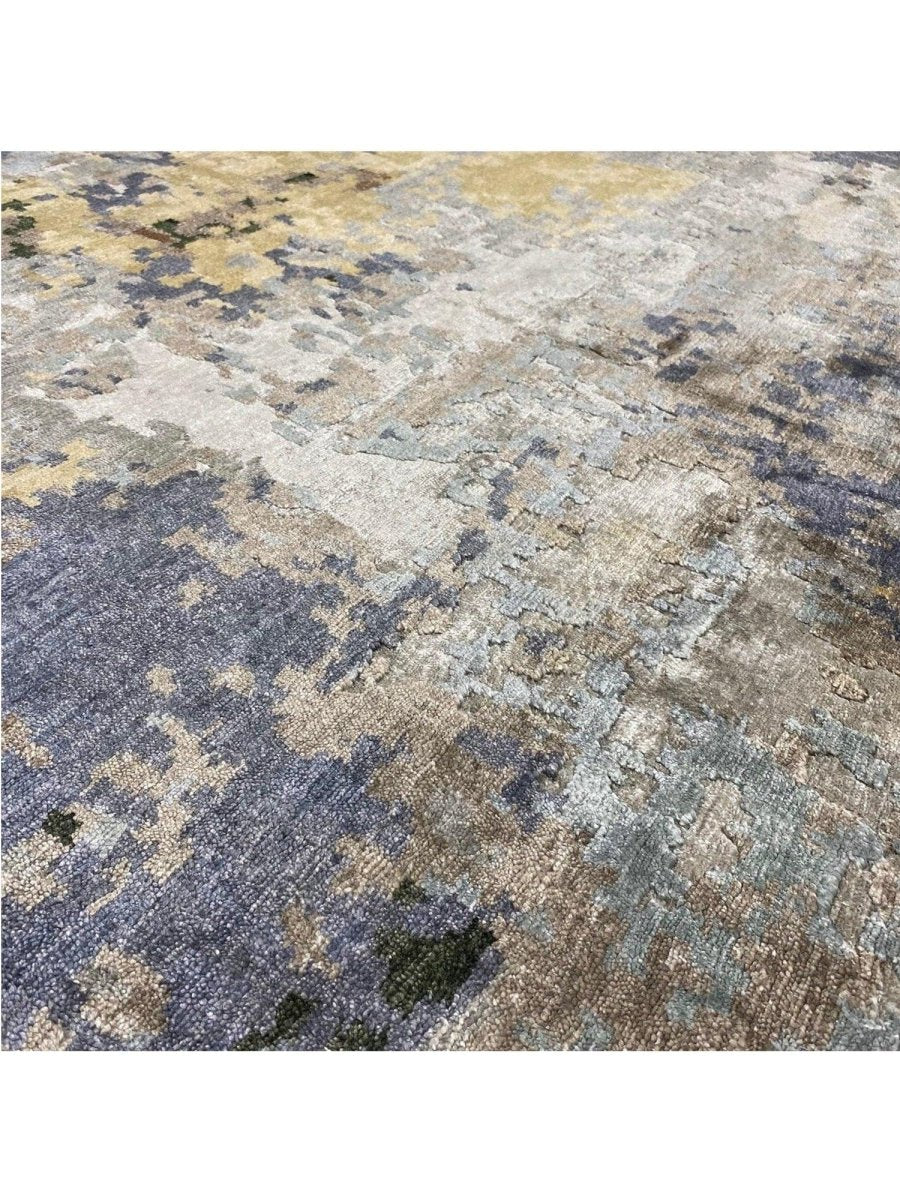 Add a touch of casual style with this 8x10 Modern Abstract Area Rug, crafted in India. This rug features a captivating abstract pattern, showcasing a simple yet effective design in a soft palette of beige, gold, blue, gray, green, black, and brown. Its durable bamboo silk construction ensures longevity and easy care, while the clean finish reflects quality craftsmanship and thoughtful design. This piece effortlessly brightens any interior, adding warmth, texture, and a relaxed feel. A balanced blend of simplicity and function, it enhances a wide range of decor styles with ease. Enjoy the benefit of free shipping across the United States. Each rug offers a distinct look, with subtle variations inherent to its creation.
