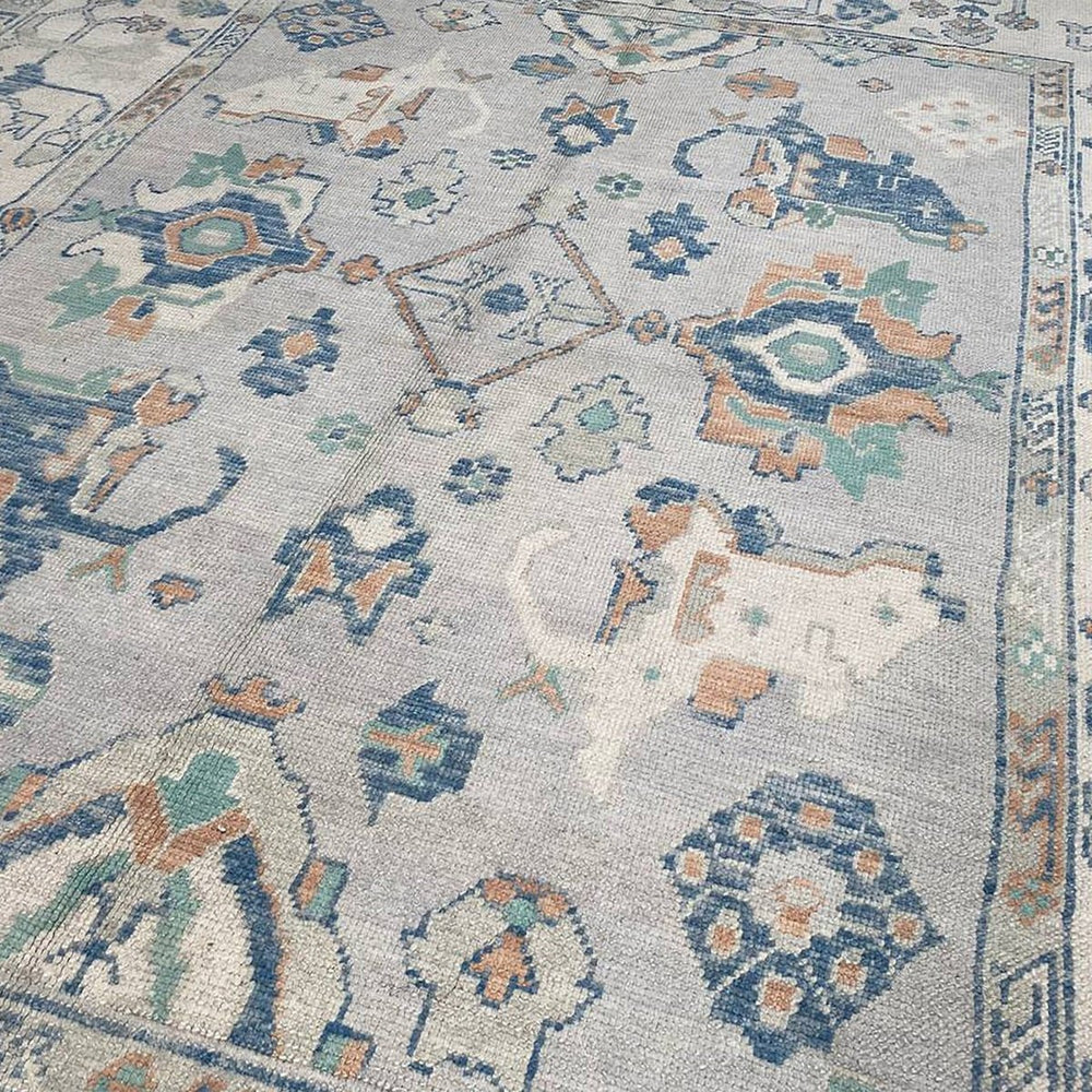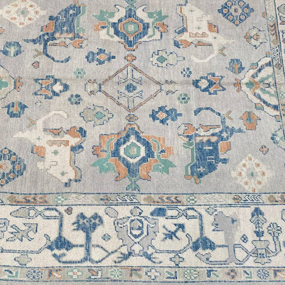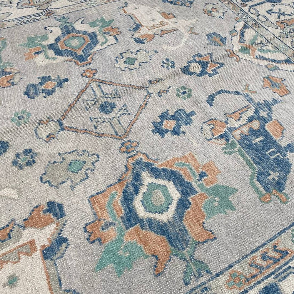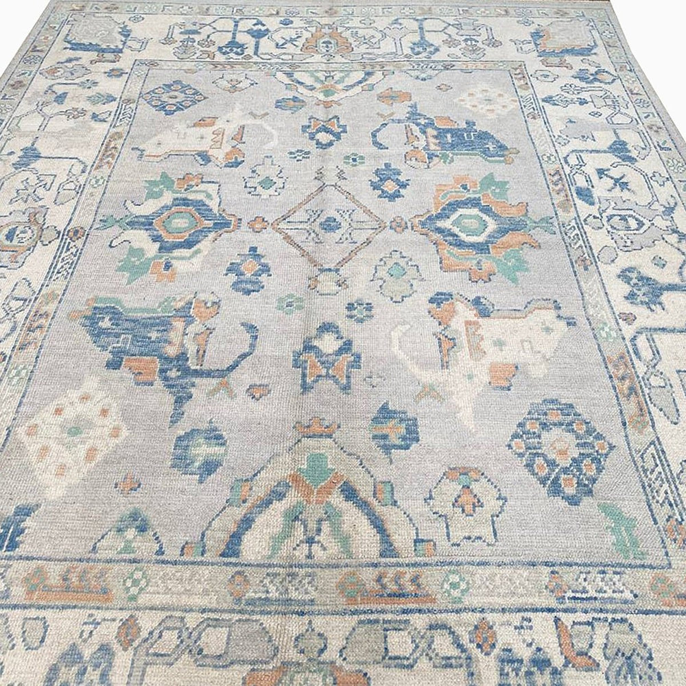 Discover the captivating appeal of the 8x10 Turkish Oushak Area Rug, a unique accent that adds classic style to your home. This gorgeous traditional rug, hand-knotted from premium wool, features a beautiful design with geometric motifs that brings personality to any room. It creates a cozy and welcoming ambiance and is ideal for dining tables, living rooms, or as a focal point in your foyer. Its beautiful blend of gray, ivory, orange, and blue hues makes it a versatile choice for various designs. This outstanding piece serves as a stunning work of art while enhancing your decor. Take advantage of free US delivery.