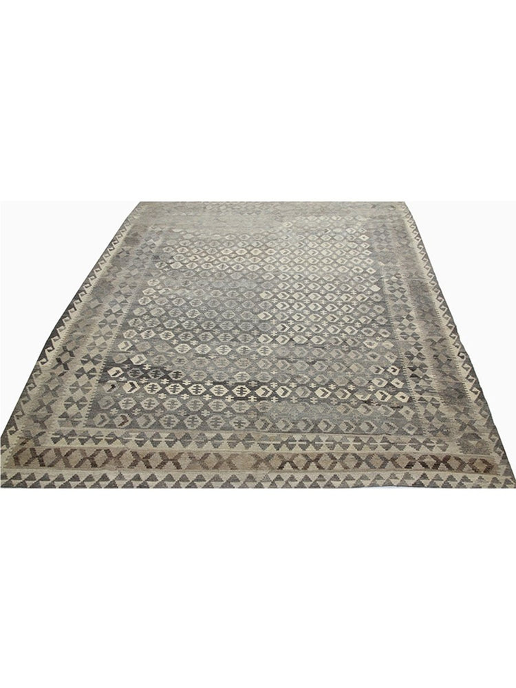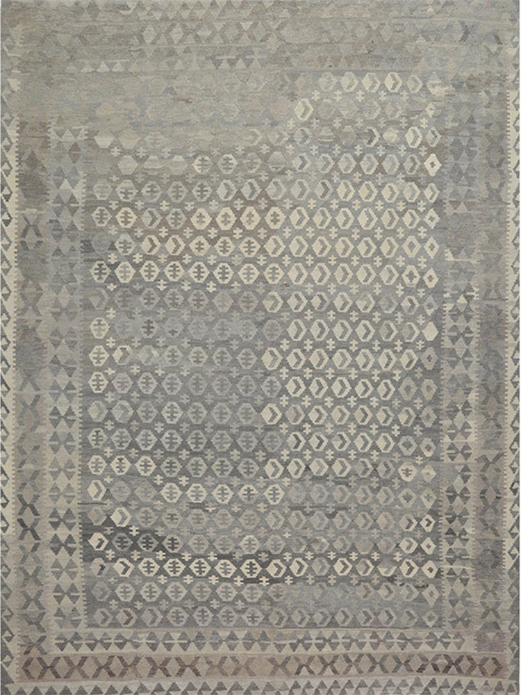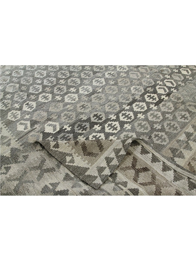 This 8x11 Turkish Kilim rug features a soft beige base with intricate classic patterns in elegant shades of gray. The timeless design blends geometric and floral influences, creating a sophisticated and versatile aesthetic. Handwoven from high-quality wool, its flatweave construction ensures durability and a lightweight feel, making it perfect for high-traffic areas. The neutral color palette allows it to complement classic interiors, adding warmth and refinement to any space.