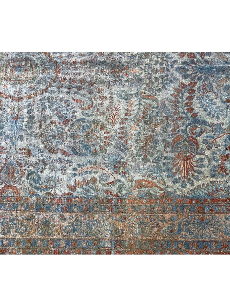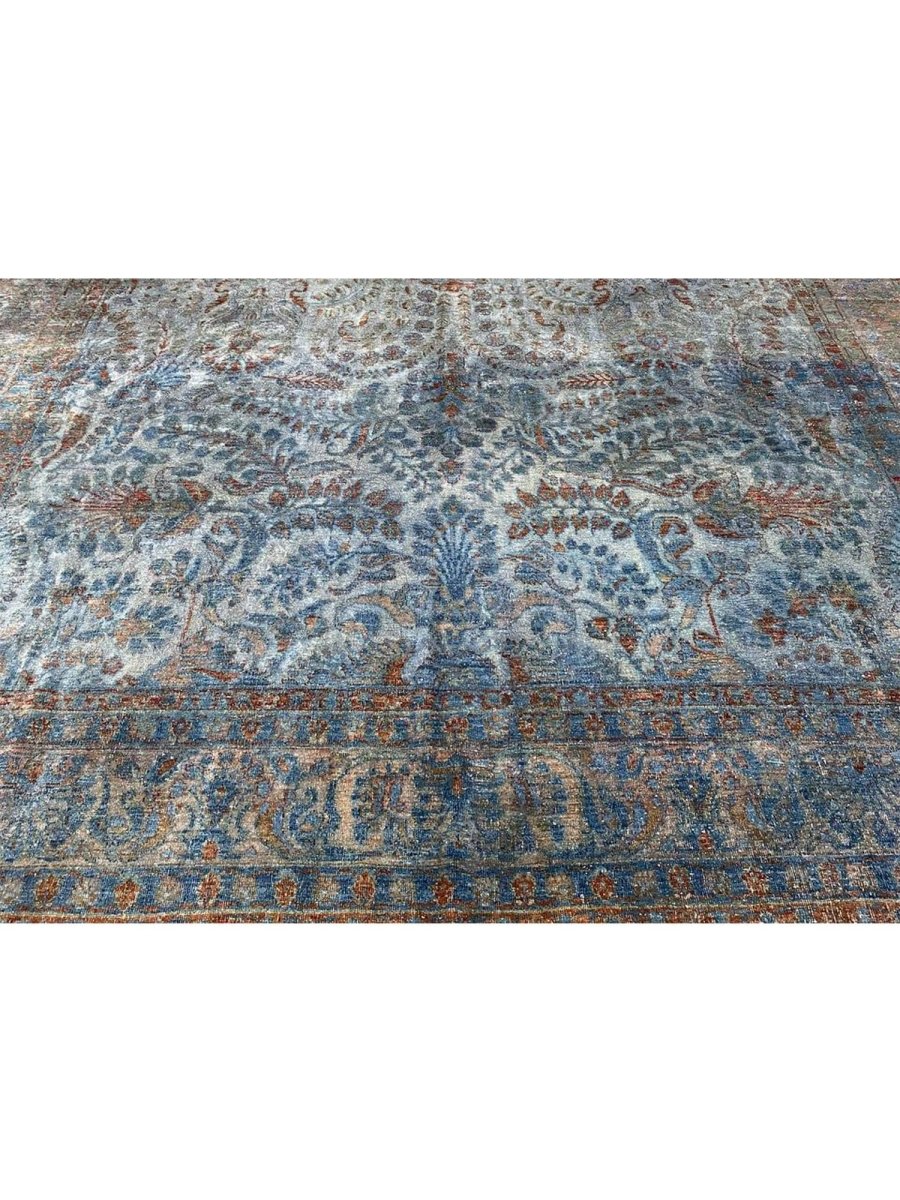 The 8x12 Old Persian Sarouk Area Rug is a remarkable hand-knotted wool creation with intricate Persian artistry. Its detailed floral motifs are gracefully woven in soft blue and earthy brown tones, beautifully accentuated by a delicate medallion centerpiece. The rich yet muted hues offer a timeless charm, blending seamlessly into classic and trendy interiors.