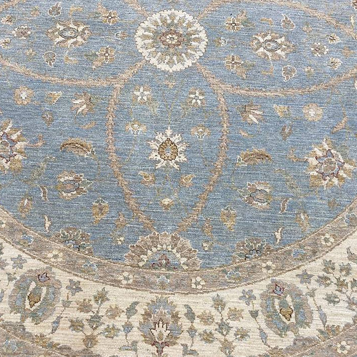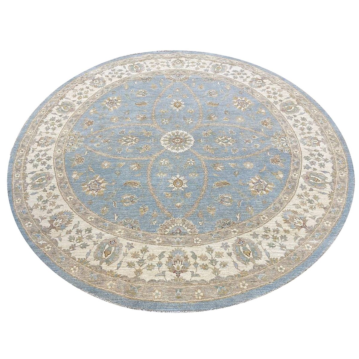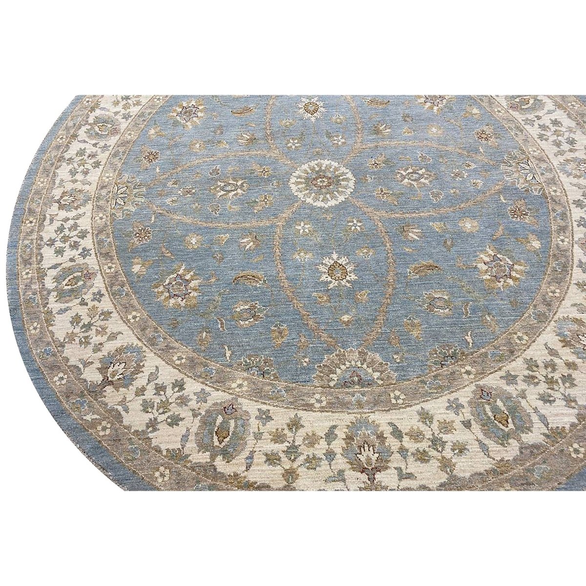 Discover the captivating appeal of the 8x8 Round Pakistani Peshawar Area Rug, a unique accent that adds classic style to your home. This gorgeous traditional rug, hand-knotted from premium wool, features a beautiful design with floral motifs that brings personality to any room. It creates a cozy and welcoming ambiance and is ideal for dining tables, living rooms, or as a focal point in your foyer. Its beautiful blend of brown, beige, and blue hues makes it a versatile choice for various designs. This outstanding piece serves as a stunning work of art while enhancing your decor. Take advantage of free US delivery.