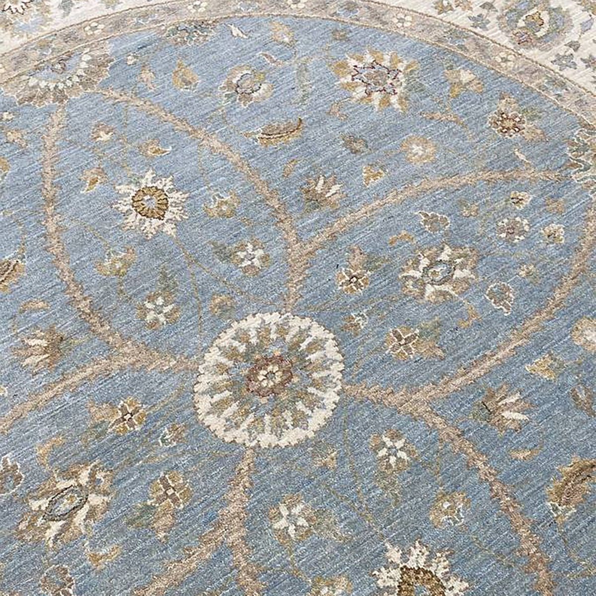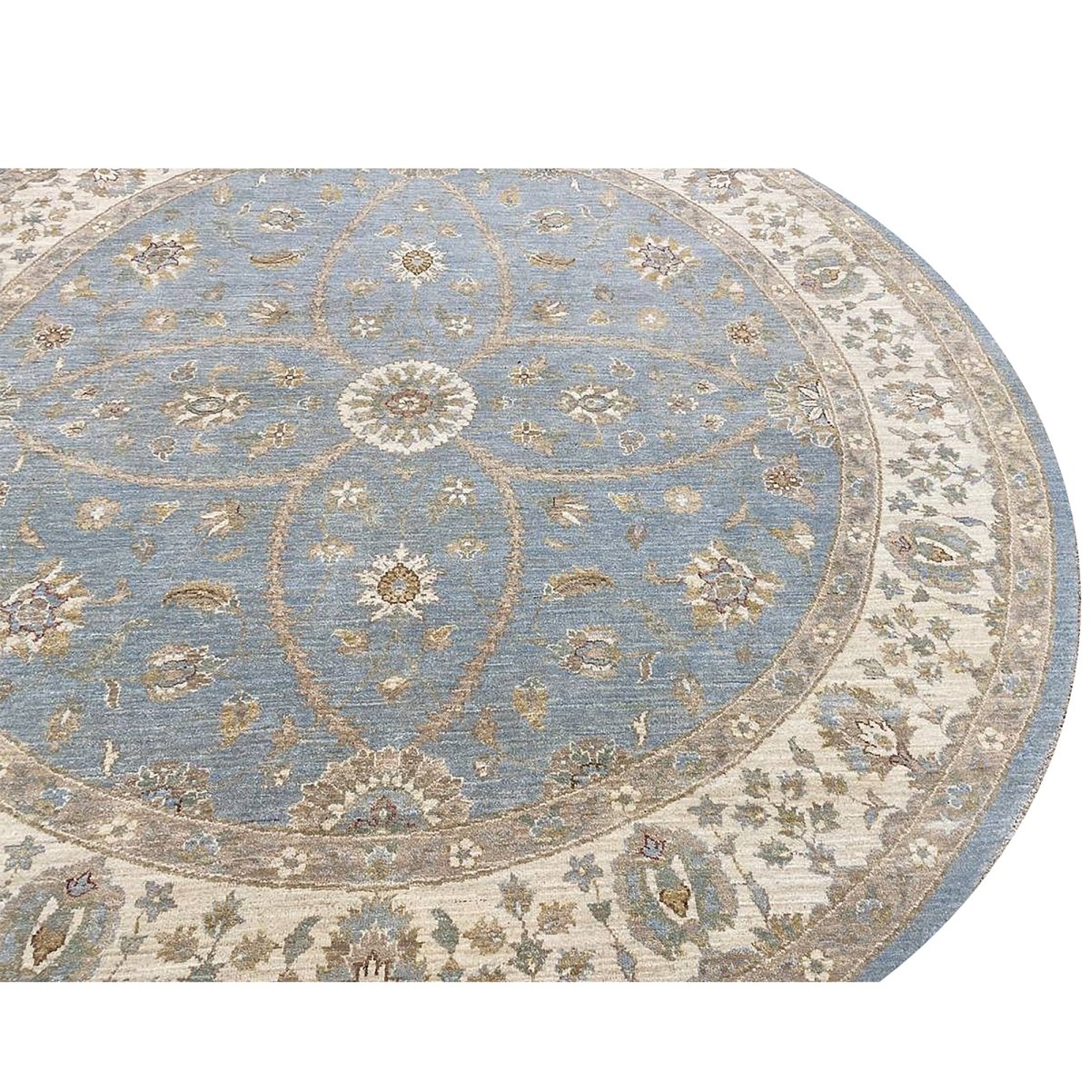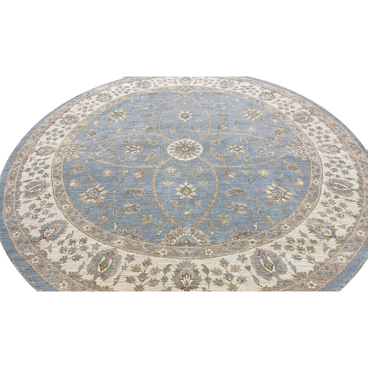 Discover the captivating appeal of the 8x8 Round Pakistani Peshawar Area Rug, a unique accent that adds classic style to your home. This gorgeous traditional rug, hand-knotted from premium wool, features a beautiful design with floral motifs that brings personality to any room. It creates a cozy and welcoming ambiance and is ideal for dining tables, living rooms, or as a focal point in your foyer. Its beautiful blend of brown, beige, and blue hues makes it a versatile choice for various designs. This outstanding piece serves as a stunning work of art while enhancing your decor. Take advantage of free US delivery.