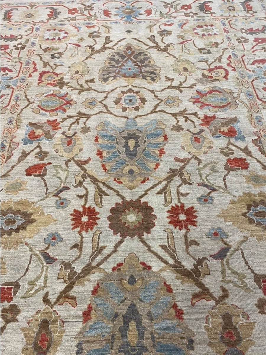 Add a touch of casual style to your home with 9x12 Persian Sultanabad Area Rug, crafted in Persia. This rug features a captivating floral pattern, showcasing a simple yet effective design in a beige, burgundy, blue, gray, brown, and yellow palette. Its durable wool construction ensures longevity and easy care, perfect for living rooms, bedrooms, and dining spaces. The clean finish reflects quality craftsmanship and design. This piece effortlessly brightens, adding warmth, texture, and a relaxed feel. A blend of simple design and function, it easily enhances any space. Enjoy the benefit of free shipping across the United States. Each rug offers a distinct look, with subtle variations inherent to its creation.
