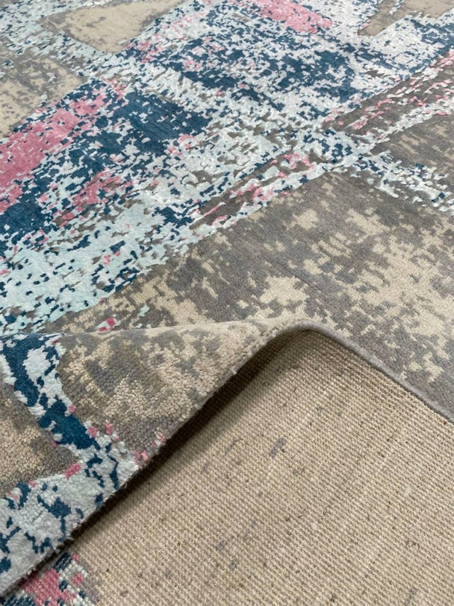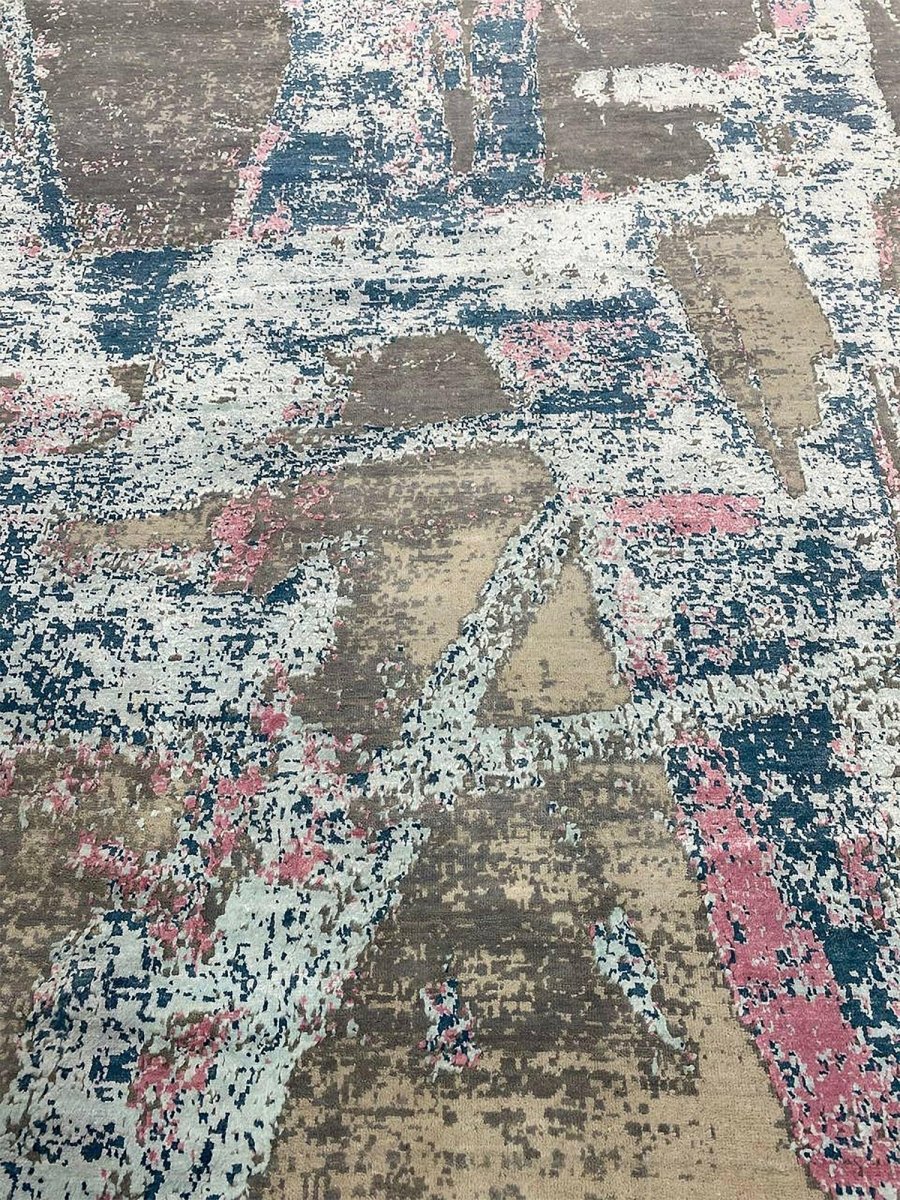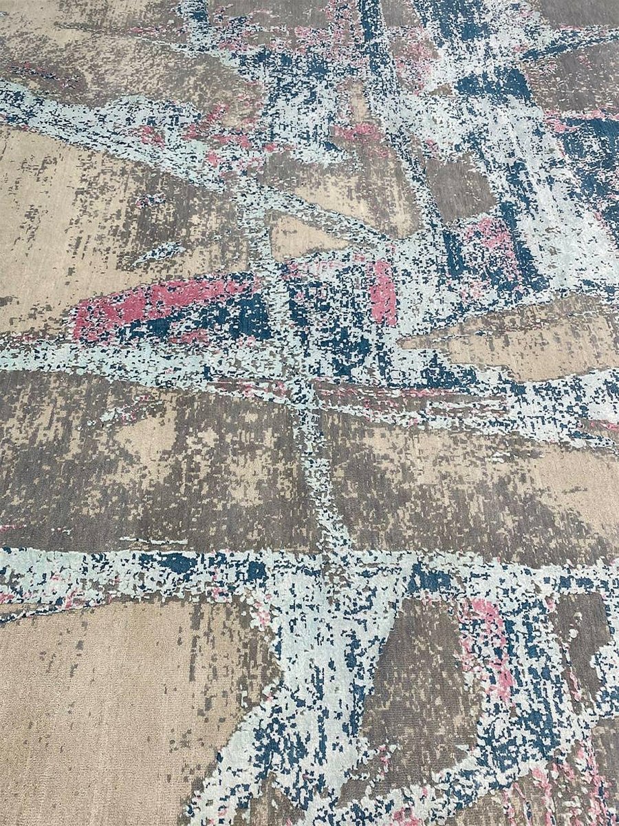 The 9x12 Modern Abstract Area Rug is a unique treasure that embodies the rich history of Indian weaving, made from high-quality wool, this gorgeous rug features an abstract design that blends in perfectly with any type of interior design. It is perfect for large dining rooms, comfortable living spaces, or as a chic addition in your workplace. The soft color palette and intricate patterns create a warm and inviting atmosphere. It is a multipurpose addition to your house because of the striking blend of tan, brown, blue, pink, and ivory hues that offer depth and character. Take advantage of free US delivery.