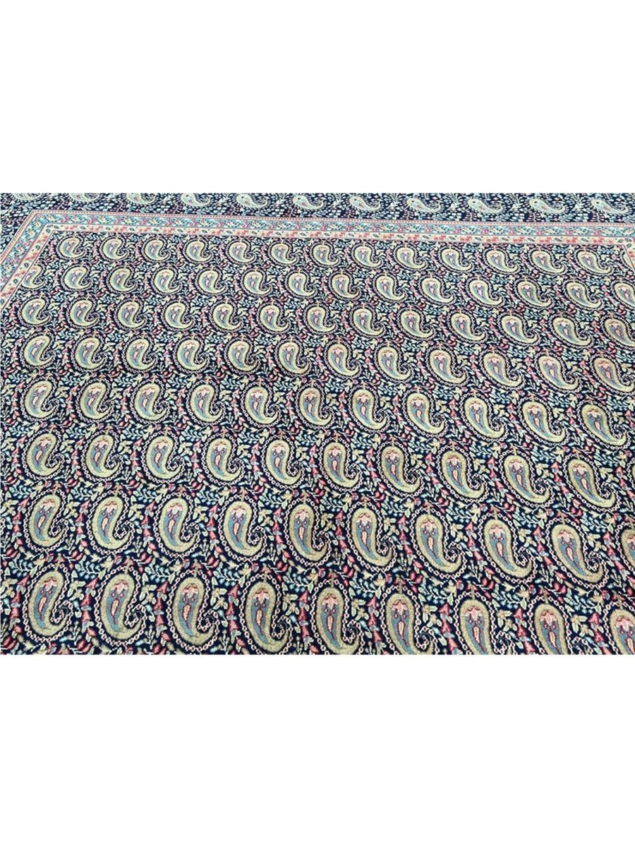 Immerse your space in the rich heritage and artistry of this magnificent 9x12 Old Persian Kerman area rug. Hand-knotted by skilled artisans in the Kerman region of Persia, this piece exemplifies the enduring beauty and intricate craftsmanship for which Kerman rugs are renowned. The detailed floral motifs, featuring a harmonious color palette of deep navy blue, warm beige, delicate cream, and subtle hints of red, pink, and black, create an atmosphere of timeless elegance and sophistication.