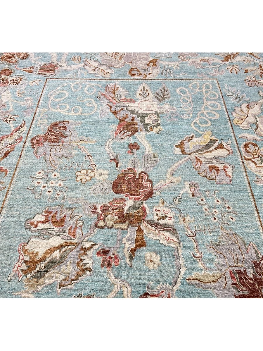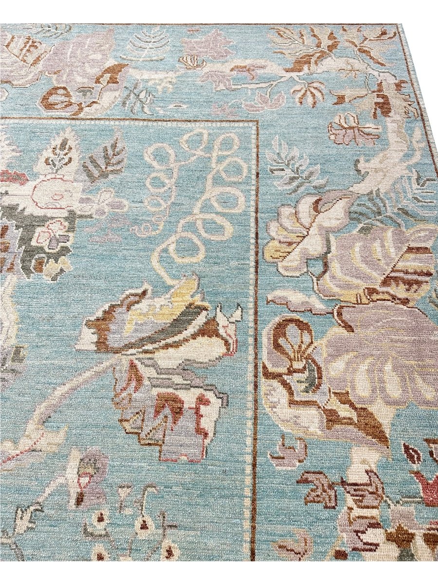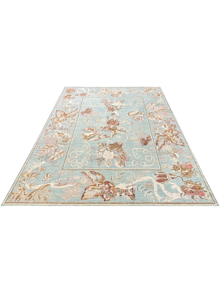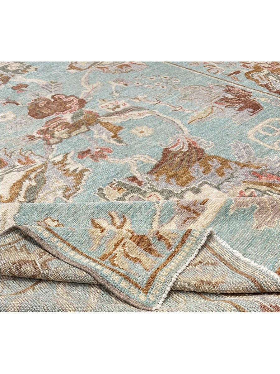 Add a touch of elegance to your home with the timeless beauty of this 9x12 Oushak-style area rug. Hand-knotted in Pakistan, this rug boasts exceptional quality and craftsmanship. The intricate floral pattern, featuring delicate motifs, creates a visually striking effect that will impress. The soothing color palette, with its beige, light blue, brown, and pinkish tones, evokes a sense of calmness and serenity, making this rug perfect for adding a touch of warmth and sophistication to any room. This rug is ideal for high-traffic areas with its durable construction and timeless design. Whether placed in a formal living room or a cozy bedroom, this rug will surely become a stunning focal point that ties the entire space together.