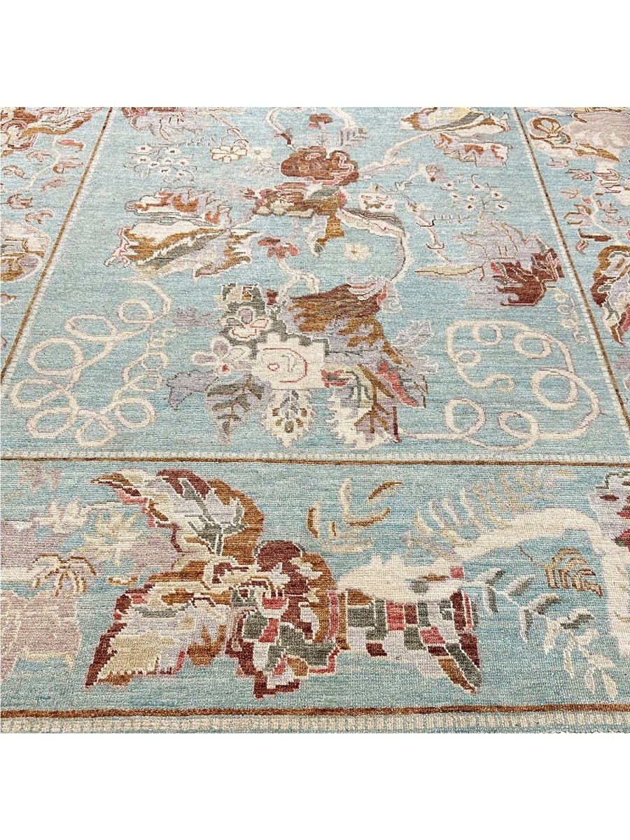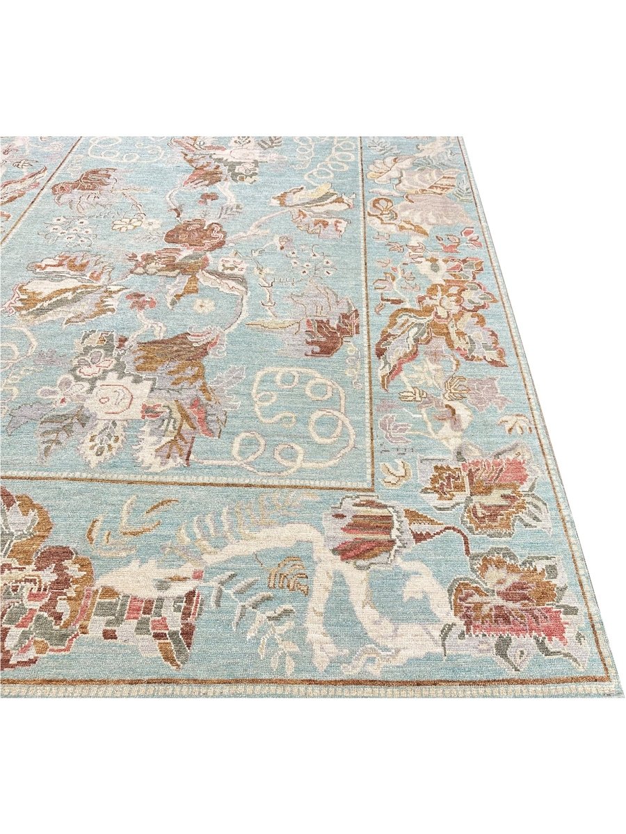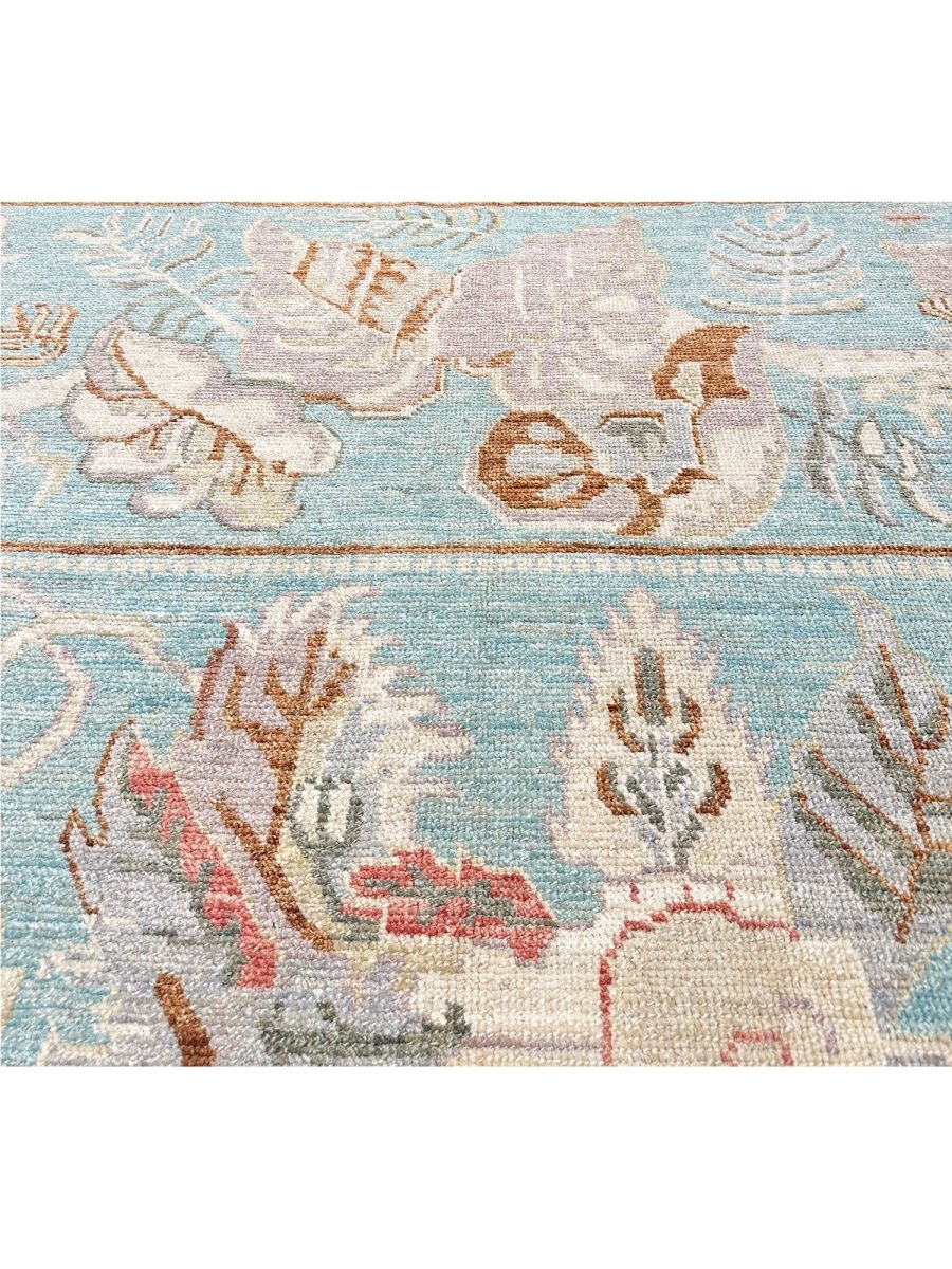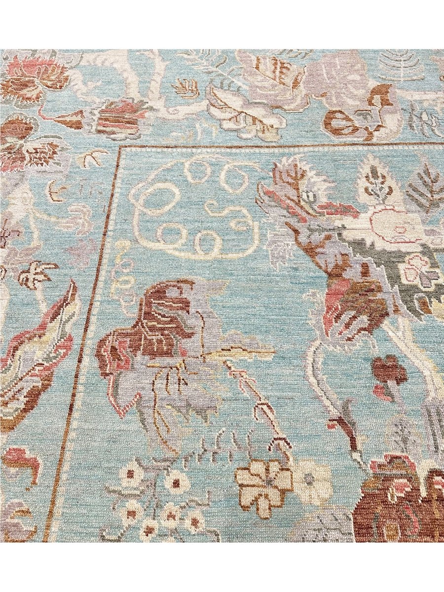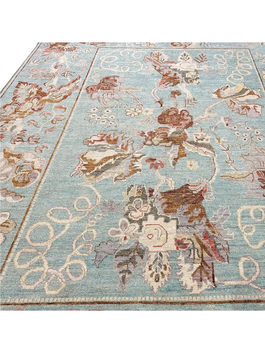 Add a touch of elegance to your home with the timeless beauty of this 9x12 Oushak-style area rug. Hand-knotted in Pakistan, this rug boasts exceptional quality and craftsmanship. The intricate floral pattern, featuring delicate motifs, creates a visually striking effect that will impress. The soothing color palette, with its beige, light blue, brown, and pinkish tones, evokes a sense of calmness and serenity, making this rug perfect for adding a touch of warmth and sophistication to any room. This rug is ideal for high-traffic areas with its durable construction and timeless design. Whether placed in a formal living room or a cozy bedroom, this rug will surely become a stunning focal point that ties the entire space together.