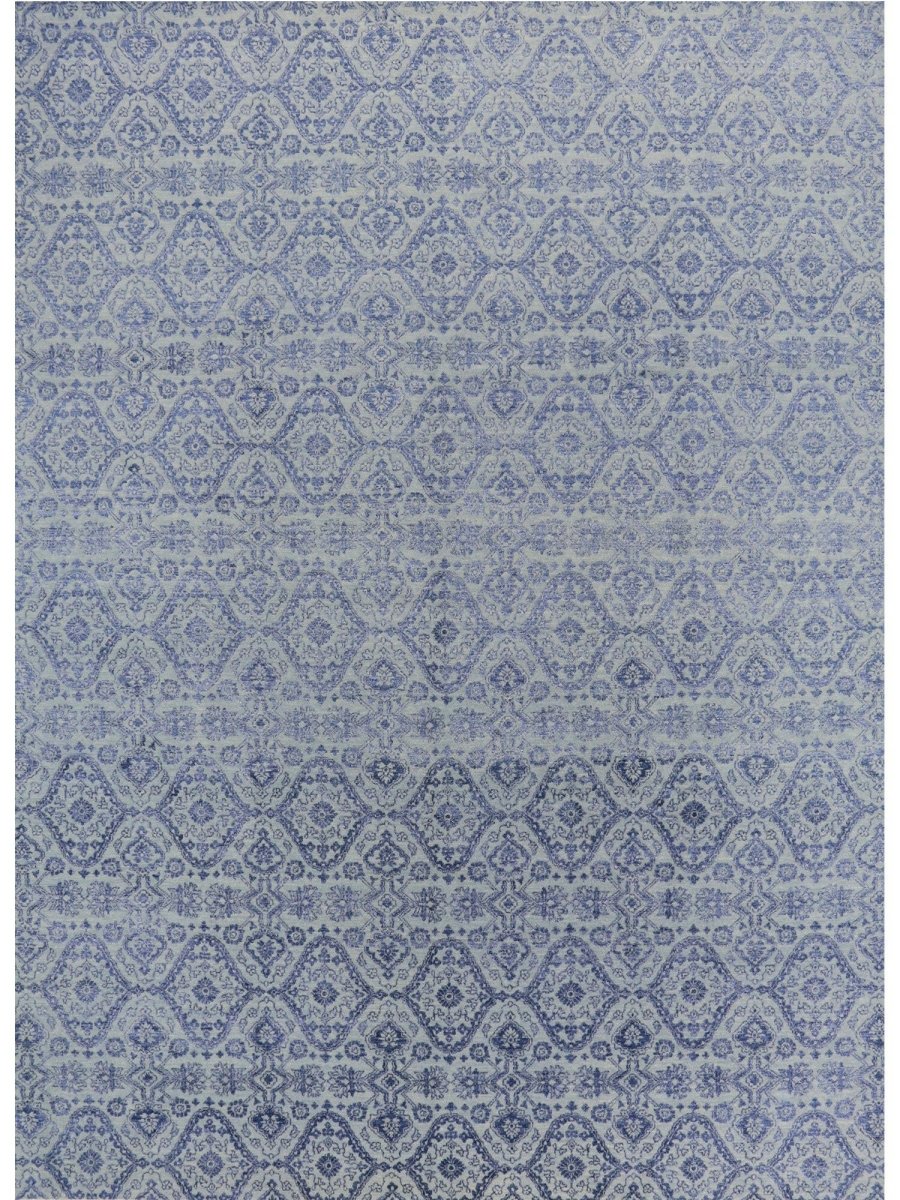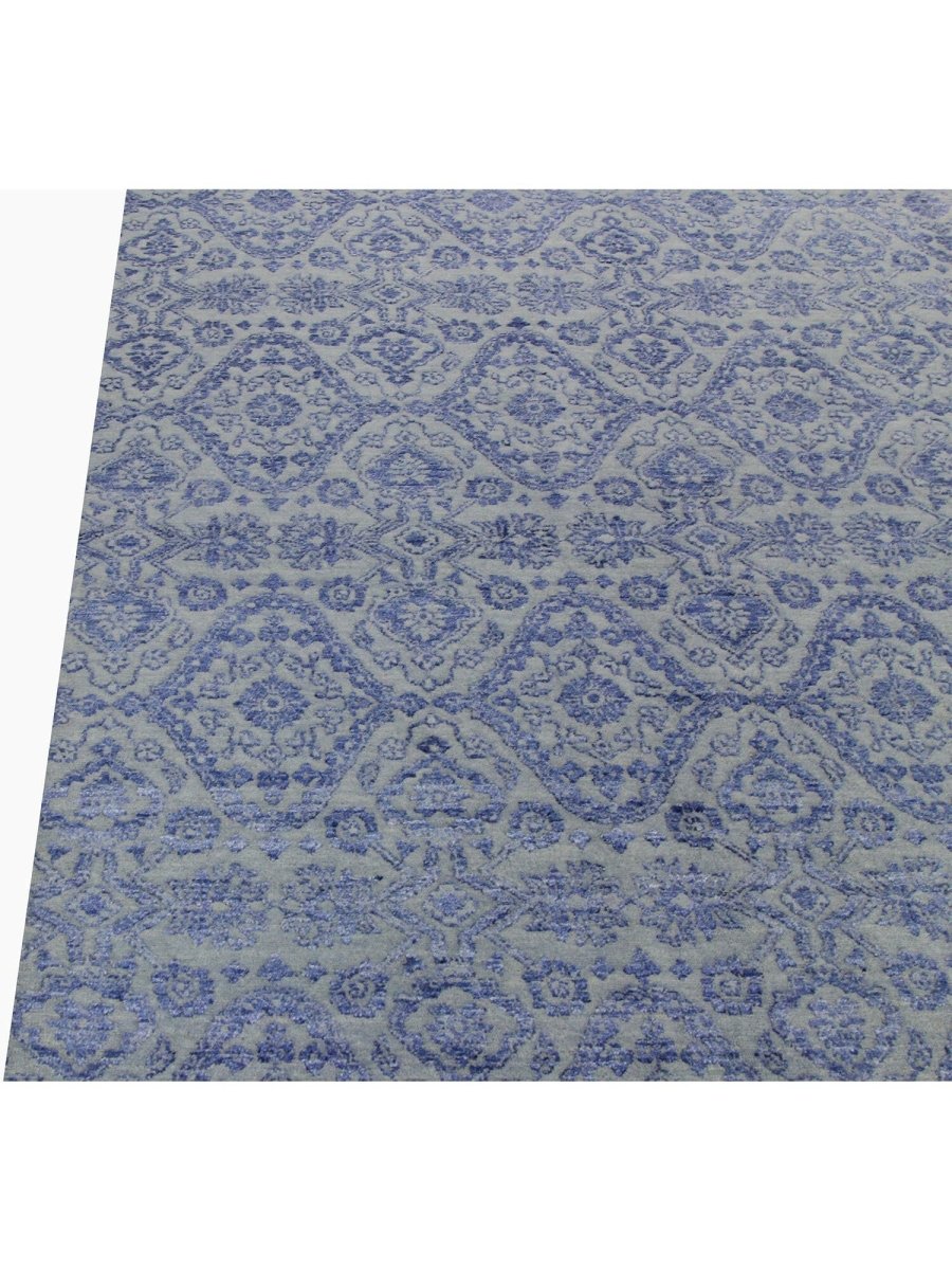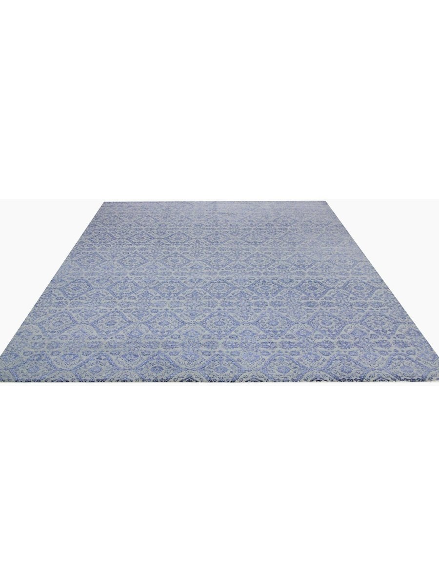 Immerse your space in the sophisticated allure of this magnificent 9x12 Transitional Area Rug. Hand-knotted by skilled artisans in India, this new piece showcases a captivating geometric pattern that brings a refined and inviting atmosphere to any room. Crafted from a luxurious blend of premium wool and bamboo silk, this rug offers a sumptuous underfoot feel coupled with exceptional durability. The colors, featuring serene blue and soft cream tones, create a harmonious and calming effect that effortlessly complements diverse decor styles. Its expansive size makes it an ideal choice for enhancing a spacious living room, adding elegance to a dining area, or bringing comfort to a large bedroom, seamlessly integrating into your existing aesthetic. This hand-knotted rug is a true testament to the skilled artistry of Indian weaving, promising to be a cherished addition that elevates the aesthetic and comfort of your home.