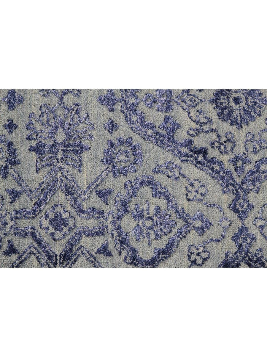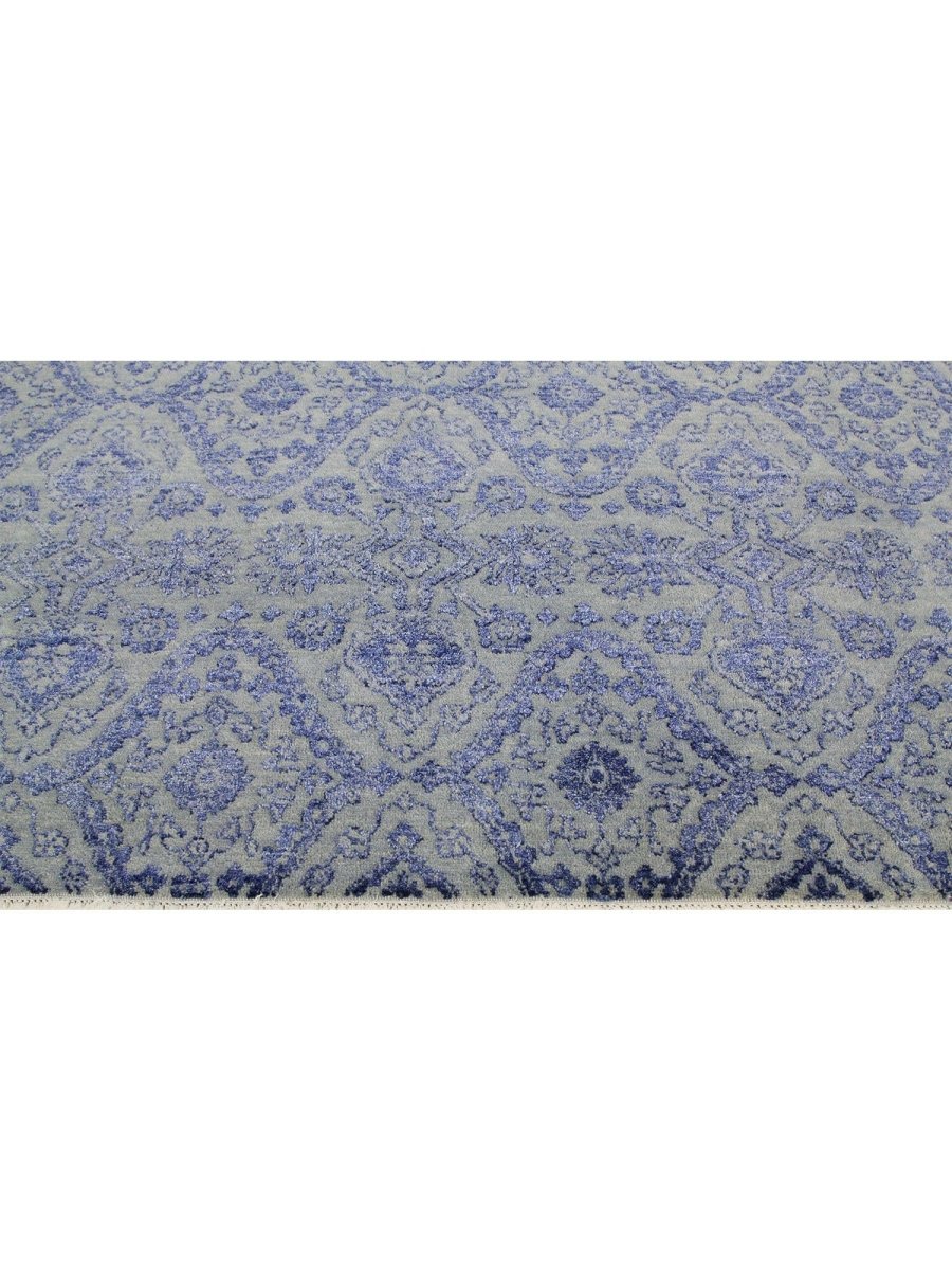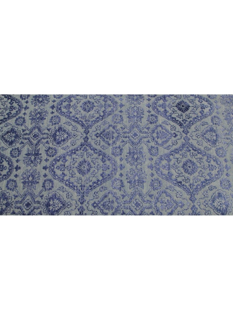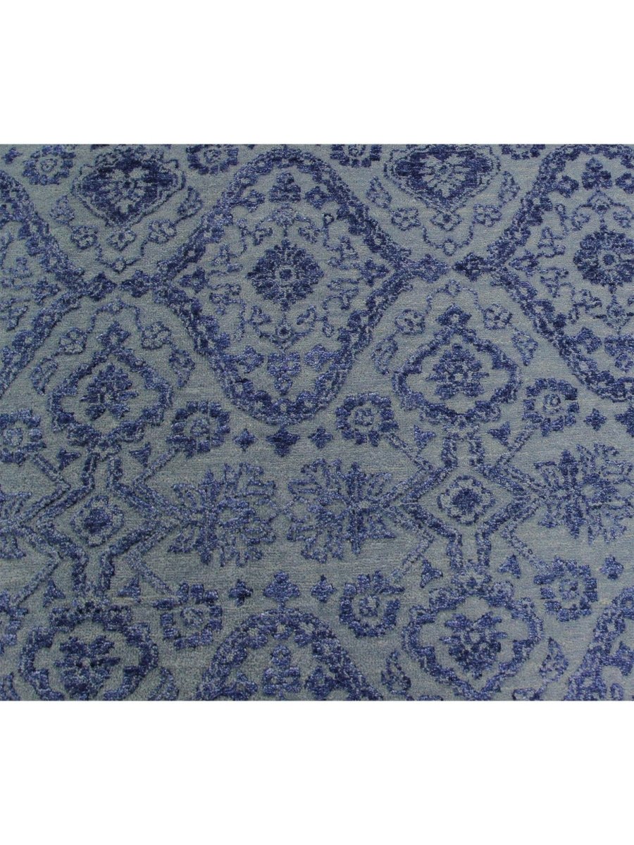 Immerse your space in the sophisticated allure of this magnificent 9x12 Transitional Area Rug. Hand-knotted by skilled artisans in India, this new piece showcases a captivating geometric pattern that brings a refined and inviting atmosphere to any room. Crafted from a luxurious blend of premium wool and bamboo silk, this rug offers a sumptuous underfoot feel coupled with exceptional durability. The colors, featuring serene blue and soft cream tones, create a harmonious and calming effect that effortlessly complements diverse decor styles. Its expansive size makes it an ideal choice for enhancing a spacious living room, adding elegance to a dining area, or bringing comfort to a large bedroom, seamlessly integrating into your existing aesthetic. This hand-knotted rug is a true testament to the skilled artistry of Indian weaving, promising to be a cherished addition that elevates the aesthetic and comfort of your home.