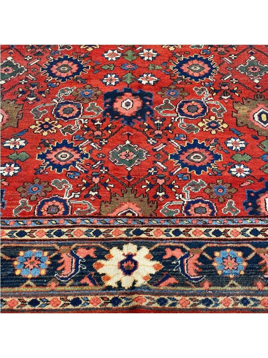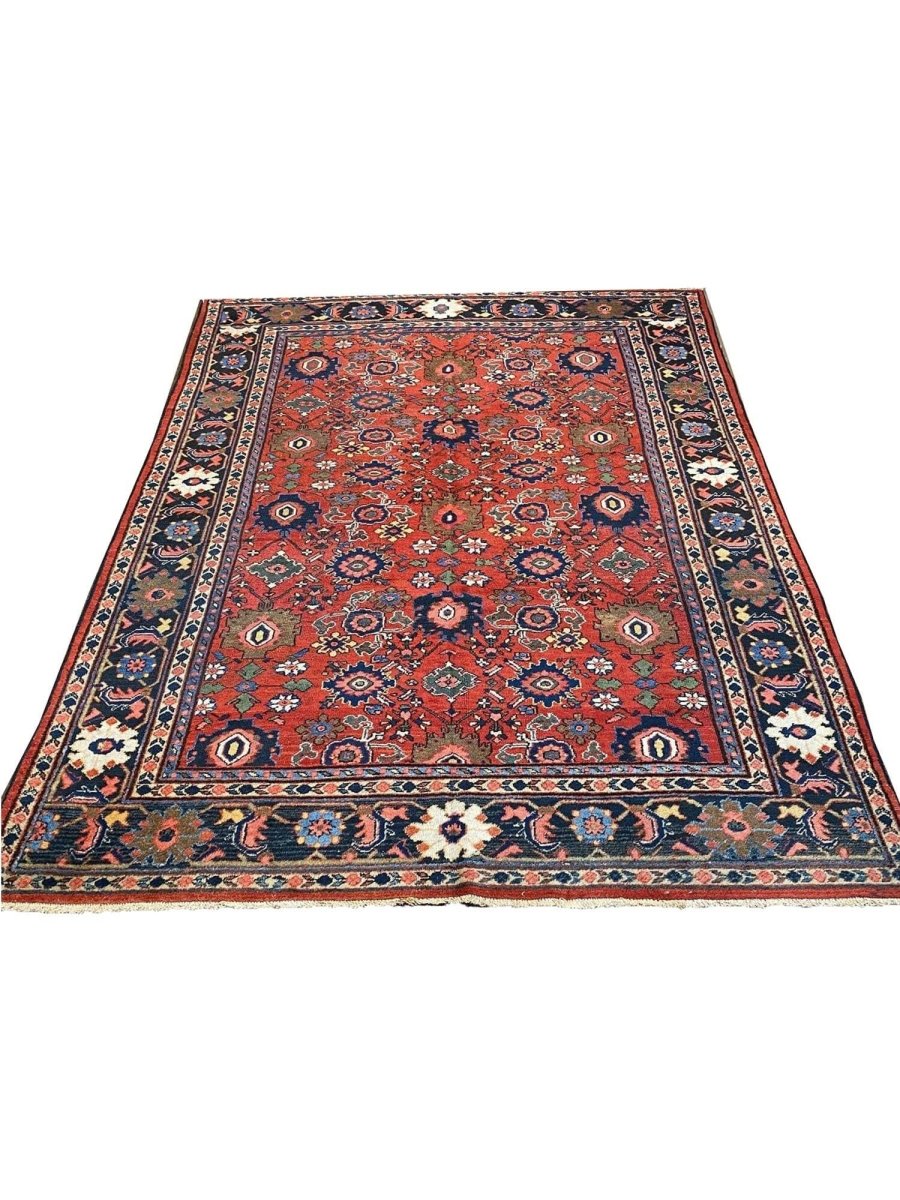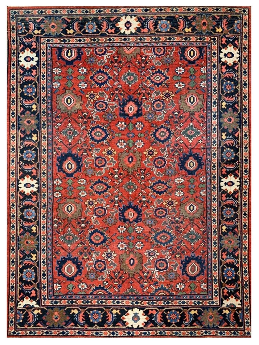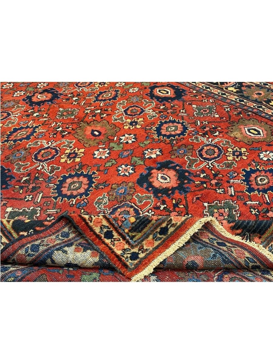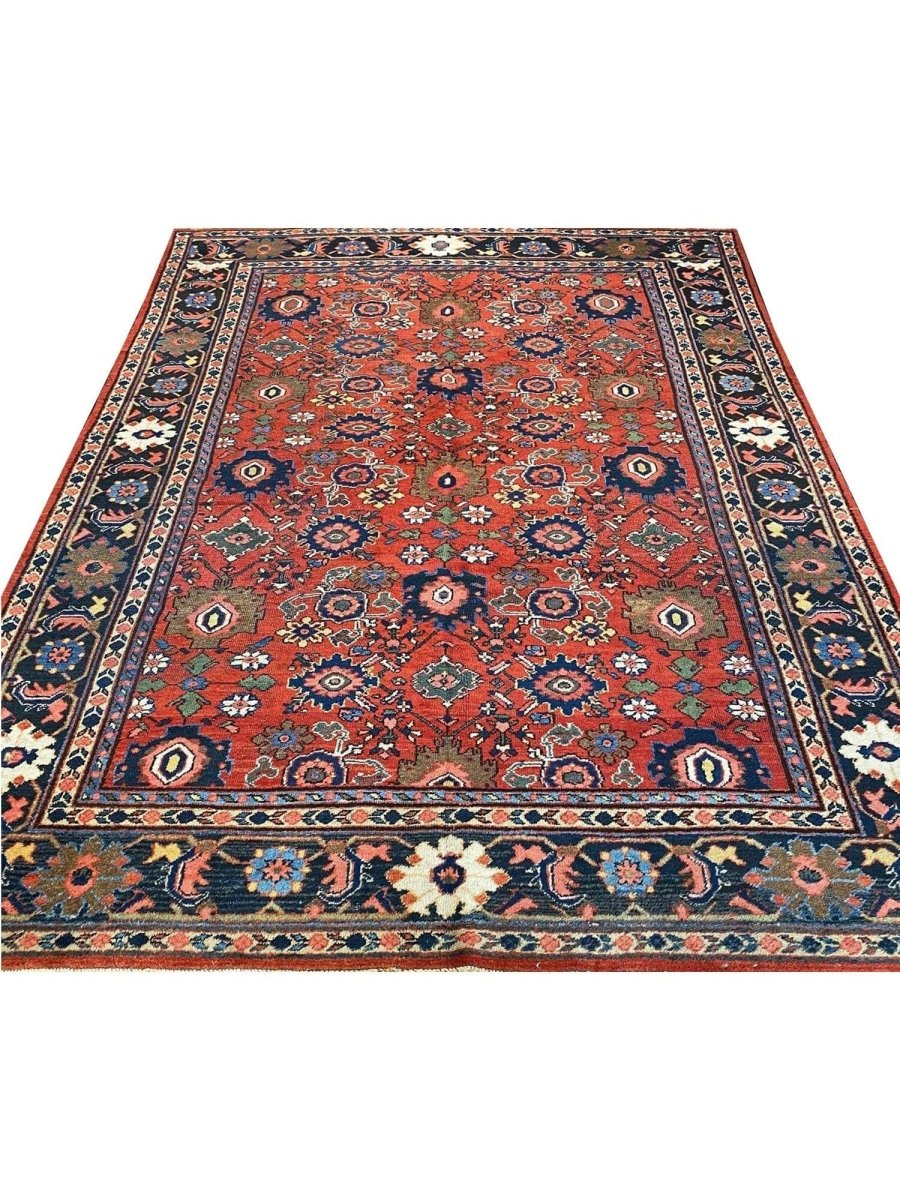 Discover the captivating appeal of the 9x12 Antique Persian Mahal Area Rug, a unique accent that adds classic style to your home. This gorgeous traditional rug, hand-knotted from premium wool, features a beautiful design with geometric motifs that brings personality to any room. It creates a cozy and welcoming ambiance and is ideal for dining tables, living rooms, or as a focal point in your foyer. Its beautiful blend of red, navy blue, black, pink, and soft ivory hues makes it a versatile choice for various designs. This outstanding piece serves as a stunning work of art while enhancing your decor. Take advantage of free US delivery.