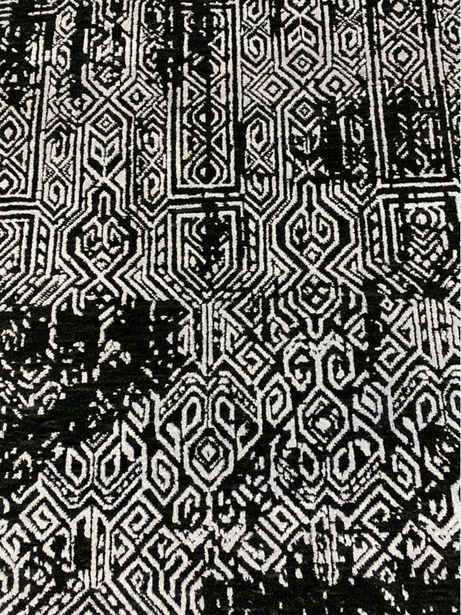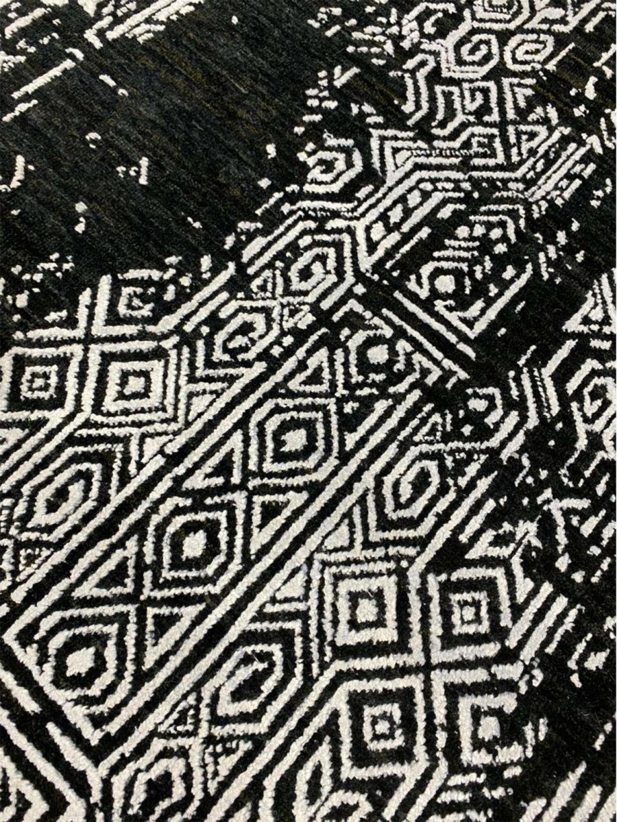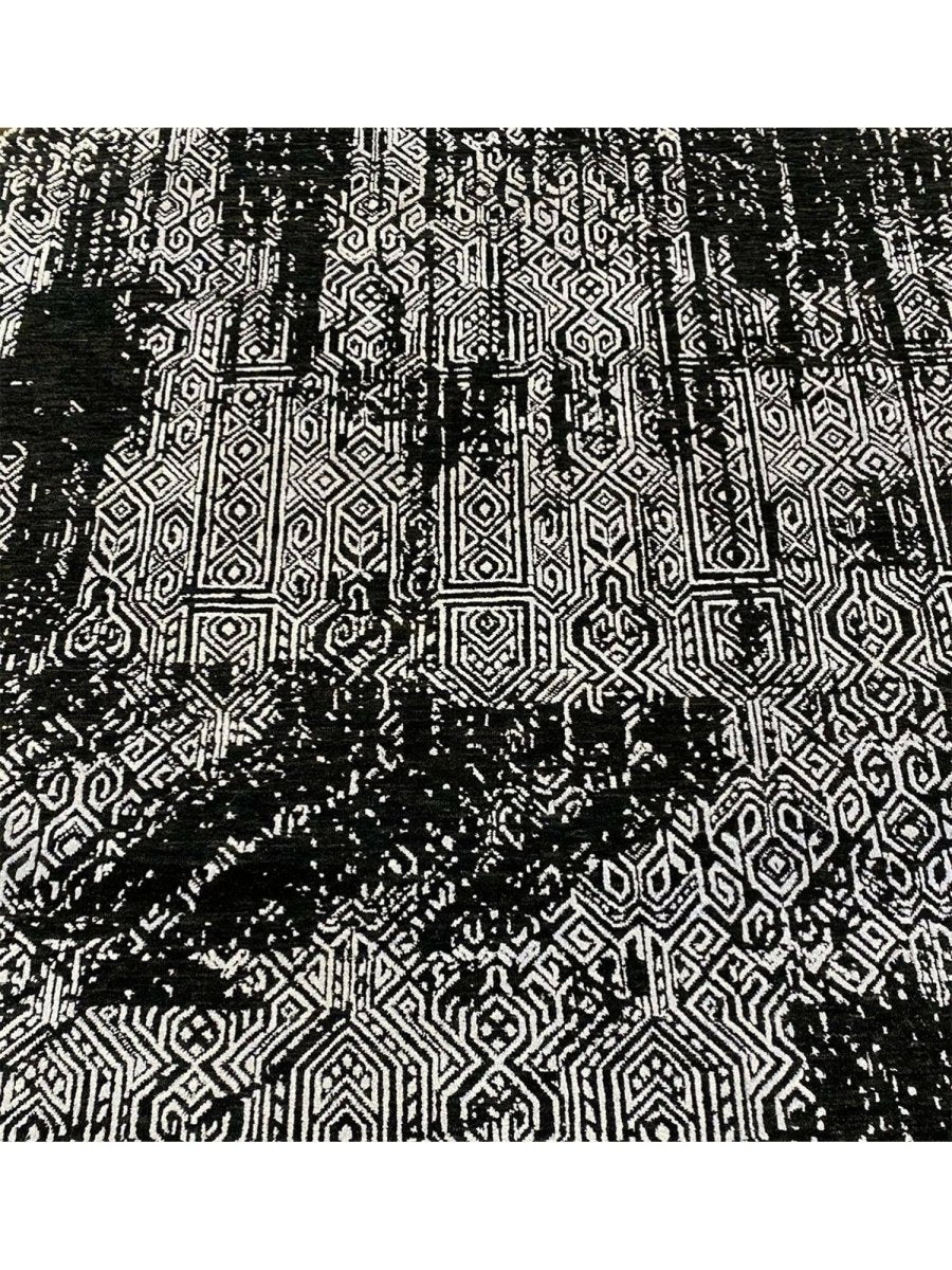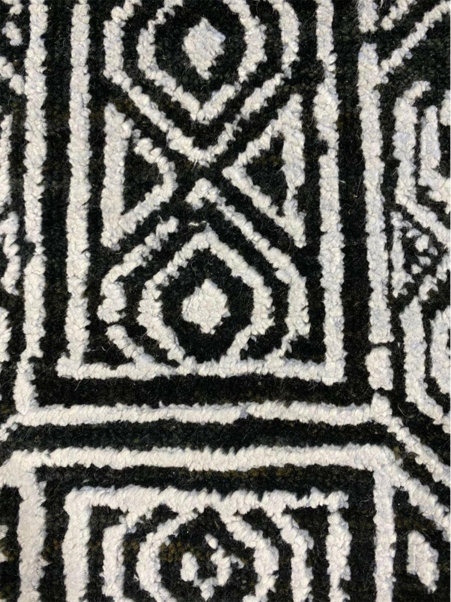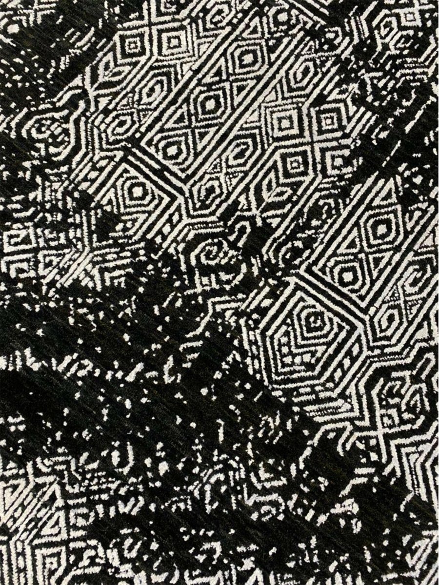 Enrich your home with this striking 6x6 new round modern abstract area rug, designed to bring bold elegance and visual impact. Hand-knotted in India from a premium blend of wool and bamboo silk, it offers a plush, luxurious feel paired with exceptional durability. The deep black and white tones and sleek abstract design create a dramatic yet refined aesthetic, making it a captivating focal element within a variety of interiors.