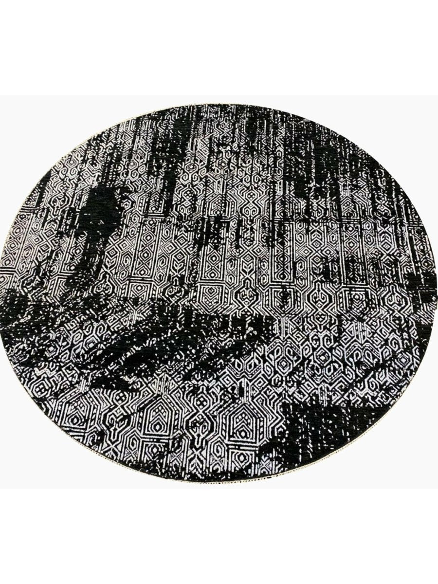 Its circular shape adds a distinctive dimension, introducing contrast and depth while maintaining timeless sophistication and fine craftsmanship. Measuring 6'1" x 6'1", this rug blends modern artistry with enduring quality, offering both comfort and refined style.