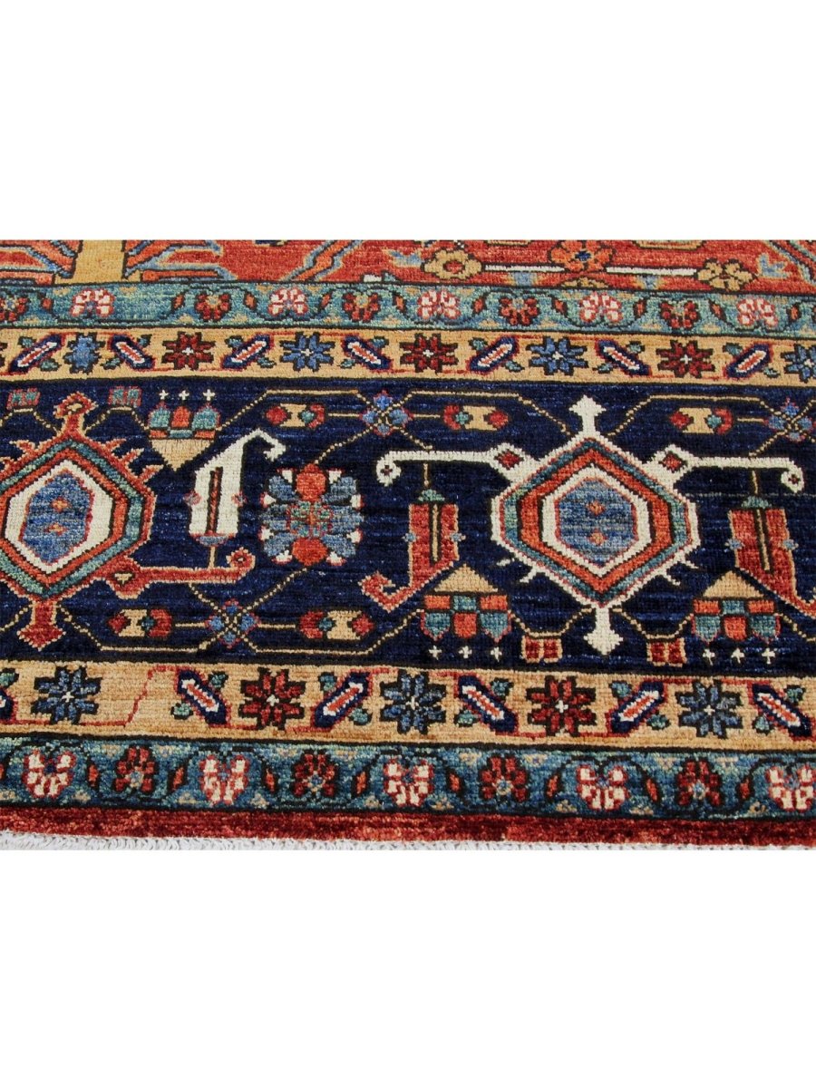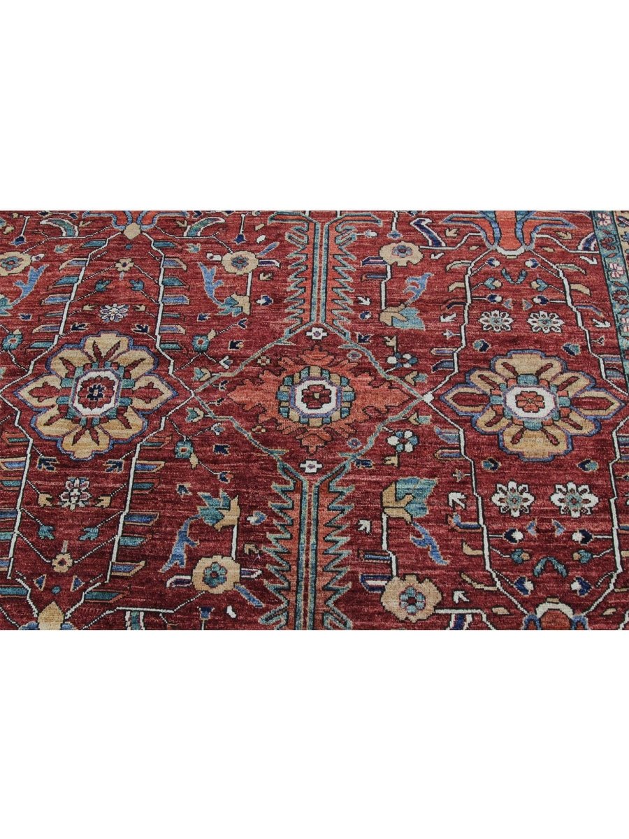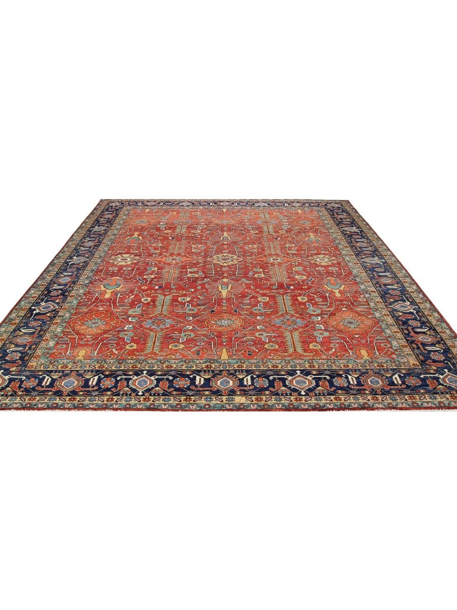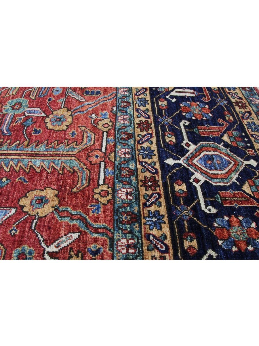 Add a touch of classic elegance to your home with this 10x14 Heriz Style Area Rug, crafted in Pakistan. This rug features a captivating geometric pattern, showcasing traditional motifs in a rich red, deep blue, ivory, and gold palette. Crafted from durable wool ensures longevity, perfect for spacious living rooms, dining areas, or bedrooms. The intricate border detail reflects skilled craftsmanship and enduring design. This piece effortlessly complements, adding warmth, texture, and sophistication. A true blend of artistry and function, it easily brings heritage charm into any space. Enjoy the benefit of free shipping across the United States. Each rug is one-of-a-kind, with subtle variations inherent to its creation.