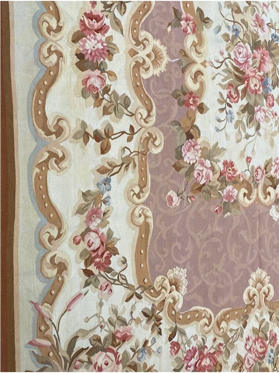 The 9x12 French Aubusson Area Rug is a unique treasure that embodies the rich history of Chinese weaving and will transform your living area. Made from high-quality wool, this gorgeous rug features a medallion design that blends in perfectly with any type of interior design. It provides a friendly atmosphere and is perfect for large dining rooms, comfortable living spaces, or as a chic addition in your workplace. It is a multipurpose addition to your house because of the striking blend of soft beige, purple, brown, green, pink, and blue hues that offer depth and character. This amazing carpeting is a stunning work of art that elevates your living area and goes beyond simple decoration. Take advantage of free US delivery.