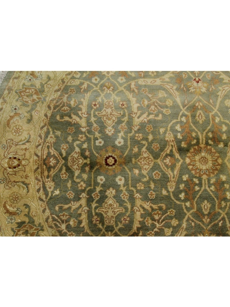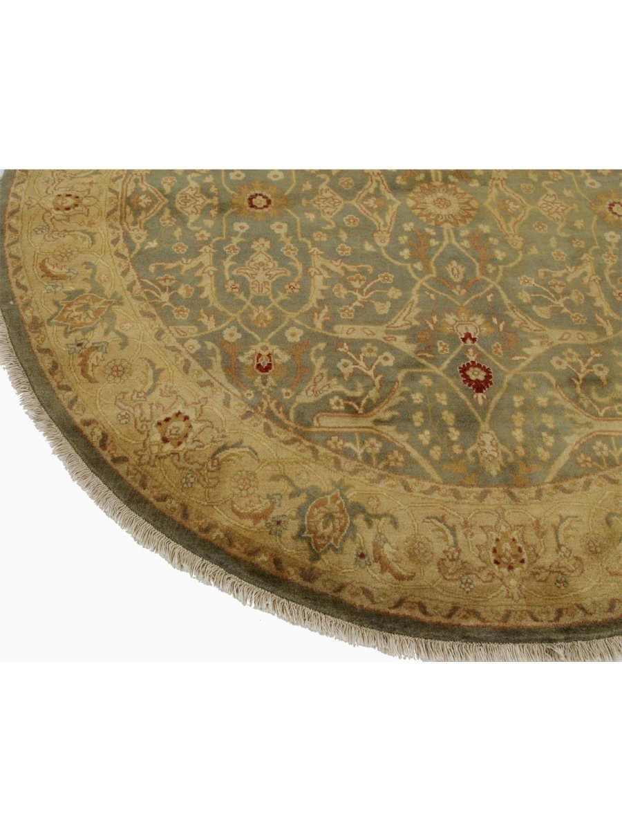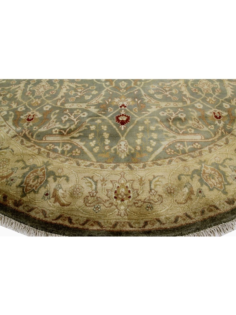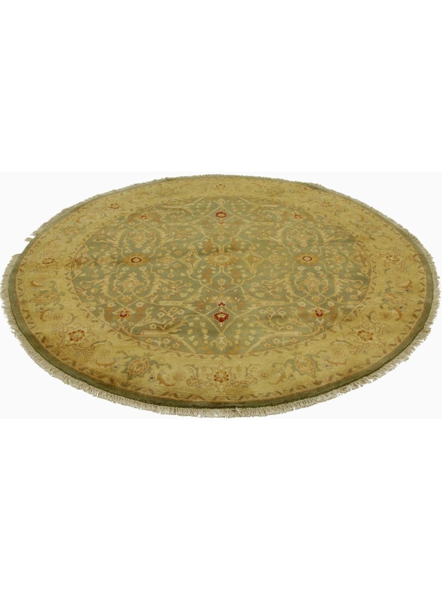 This special 6x6 Round Indian Agra Area Rug adds warmth and elegance to any room with its gorgeous floral design in warm tan, green, rust, and brown hues. Hand-knotted from premium wool, this rug is ideal for dining rooms, comfortable living rooms, or even a chic home office. While the elaborate design reflects traditional craftsmanship, the round shape adds a distinctive touch. This new rug is more than just a floor covering. It serves as a focal point that exquisitely complements your interior design. Take advantage of free shipping on this gorgeous addition within the United States!