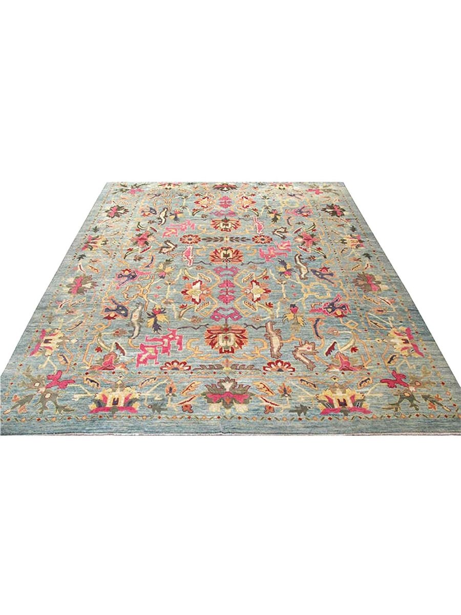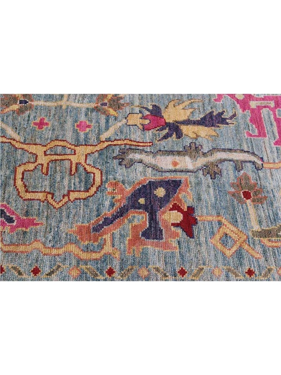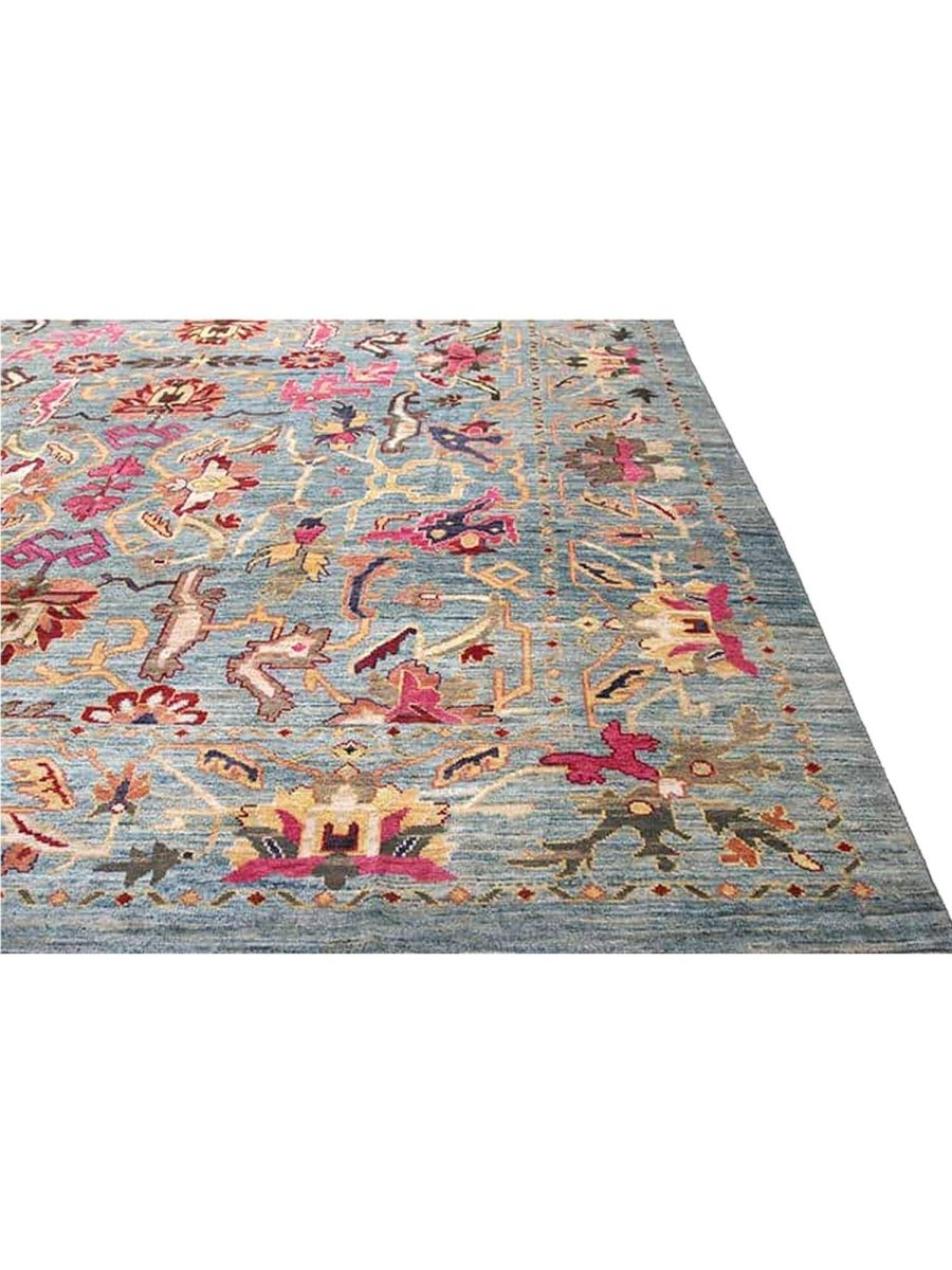 Enjoy traditional Persian craftsmanship with this beautiful 12x16 Persian Sultanabad area rug, expertly hand-knotted in Persia using high-quality wool. This new rug boasts exceptional quality and a unique geometric design. The blue-colored base of the rug provides a sophisticated and calming backdrop for the vibrant pattern, which features a stunning combination of pink, red, gray, and beige colors. The intricate design and precise craftsmanship of this rug are a testament to the rich cultural heritage of Persia. The rug's classic traditional design and timeless color palette make it perfect for adding a touch of elegance and sophistication to any room. Whether placed in a formal living room, spacious bedroom, or dining room, this rug will surely become a stunning focal point that ties the entire space together. The rug's durable construction and high-quality materials ensure it will remain a beautiful and functional art for years.