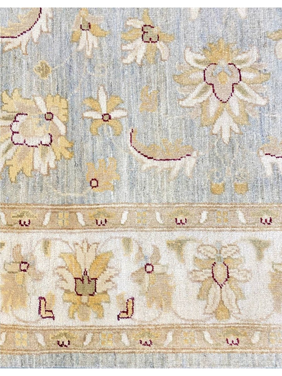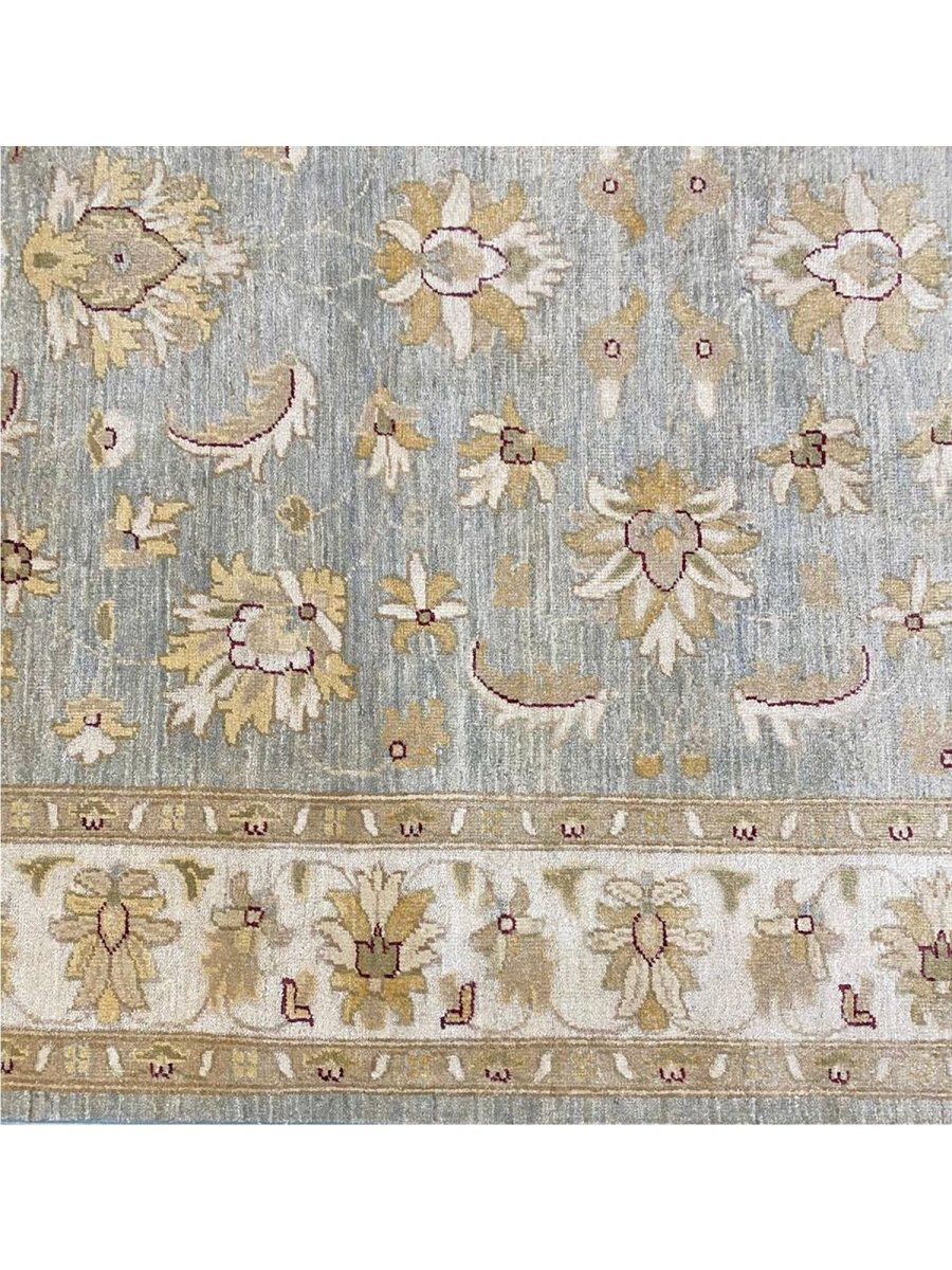 Add grace and charm to your hallway or large space with this handmade 5x26 Pakistani-style area rug. Featuring a soothing palette of gray, warm beige, ivory, and soft gold, this rug brings a calming and elegant presence to any interior. The intricate floral and vine pattern, thoughtfully hand-knotted by skilled artisans, reflects the traditional beauty found in classic Pakistani rug-making. The detailed border frames the central design beautifully, adding a refined touch to its overall appeal.