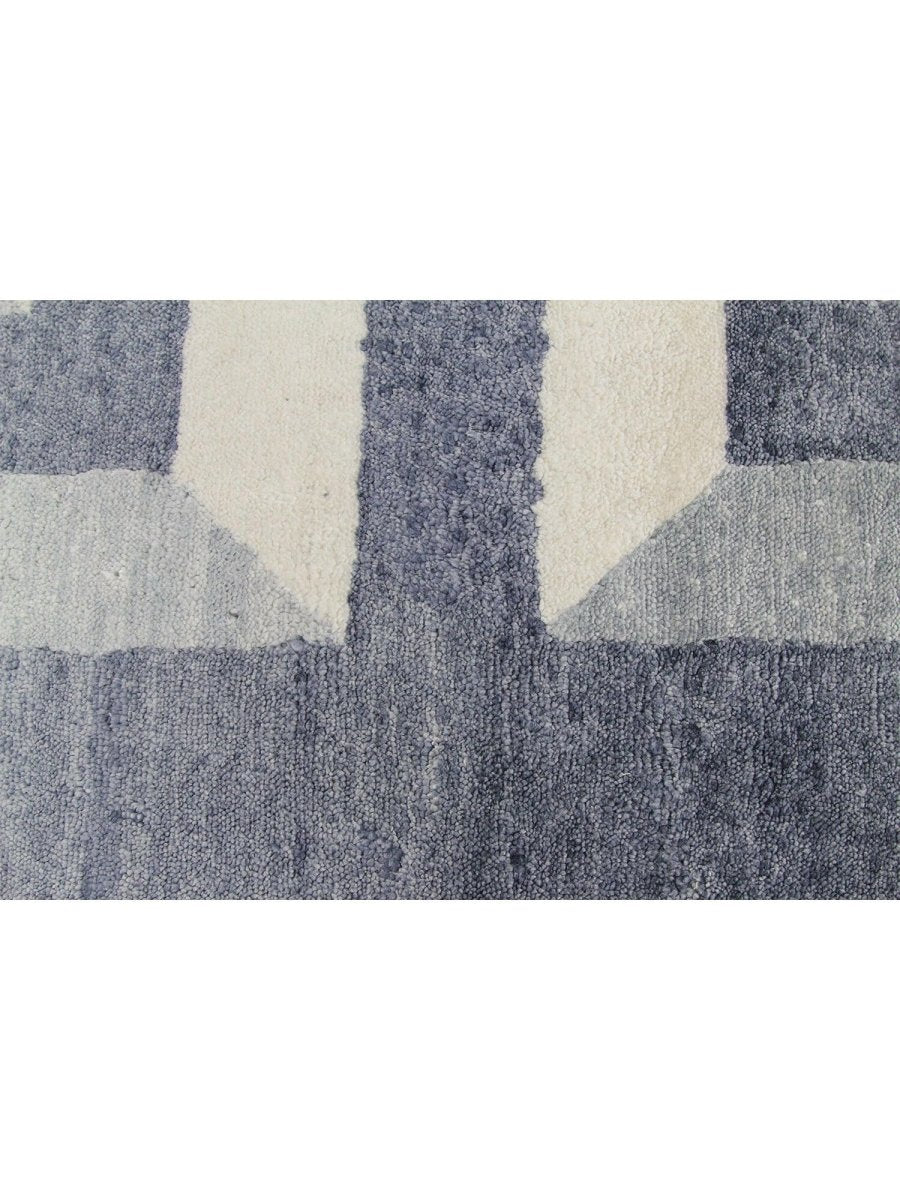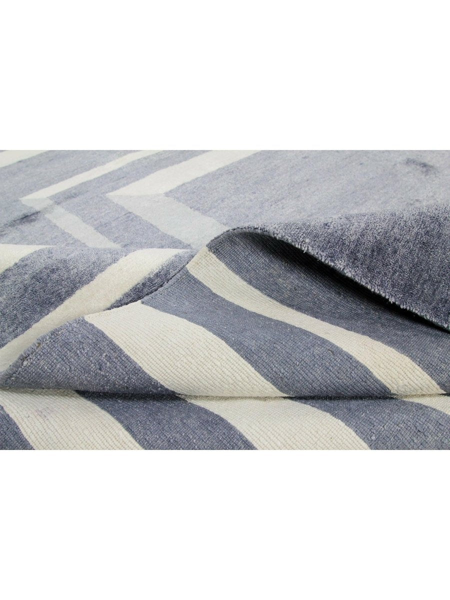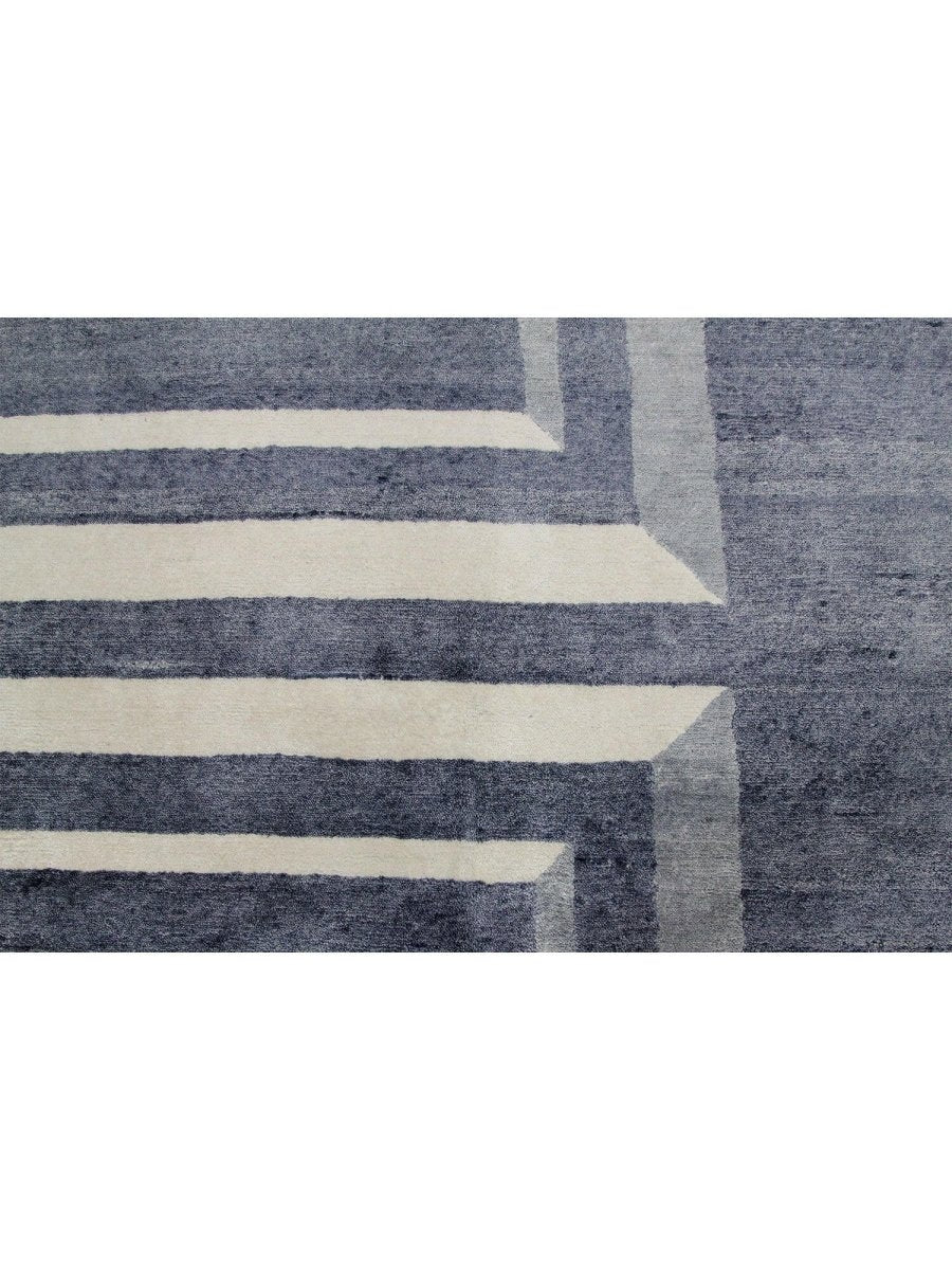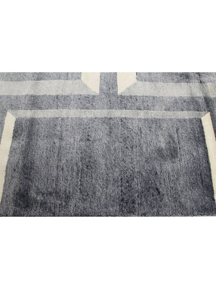 Immerse your space in the sophisticated allure of this magnificent 10x14 Contemporary Area Rug. Expertly hand-knotted in India from a luxurious blend of premium wool and bamboo silk, this new rug offers a rich texture and exceptional durability. The captivating geometric pattern features a striking interplay of gray and cream tones, creating a refined and distinctive visual appeal that instantly elevates any room.