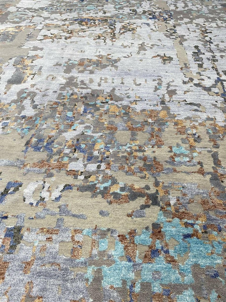 Add a touch of casual style to your home with this 12x15 Modern Abstract Area Rug, crafted in India. This rug features a captivating abstract pattern, showcasing a simple yet effective design in a soft beige, blue, charcoal, gray, and turqoise palette. Its durable wool construction ensures longevity and easy care, perfect for living rooms, bedrooms, and dining spaces. The clean finish reflects quality craftsmanship and design. This piece effortlessly brightens, adding warmth, texture, and a relaxed feel. A blend of simple design and function, it easily enhances any space. Enjoy the benefit of free shipping across the United States. Each rug offers a distinct look, with subtle variations inherent to its creation.