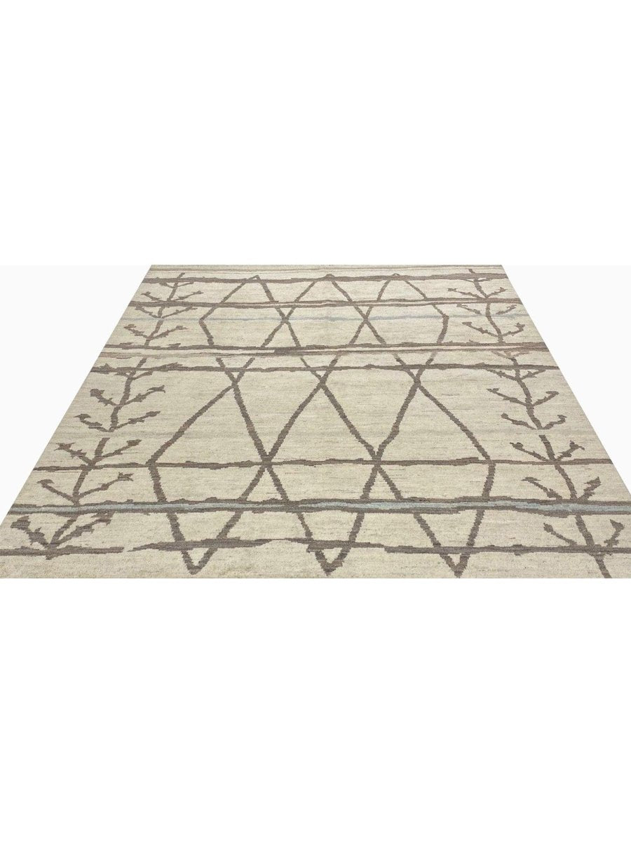 Add a touch of timeless elegance to your space with this 8x10 Moroccan Style Area Rug. Handmade in India, this rug features an intricate striped pattern with nature-inspired motifs, offering a perfect blend of design elements. The earthy beige and brown tones create a warm and inviting ambiance, making it a versatile piece for any room.