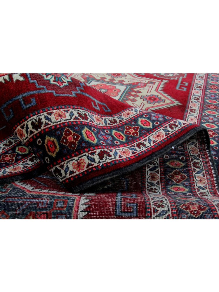 Elevate your hallway or entryway with this 4x11 Old Persian Heriz Runner Rug, hand-knotted from premium wool. The striking geometric pattern in vibrant red, soft beige, charcoal, and fresh green hues adds richness and warmth to your space. Its versatility makes it an excellent option for any decor style, thanks to the serene ambiance. Ideal for enhancing traditional decor styles, it creates a welcoming focal point in any room. Enjoy free shipping within the US for a seamless shopping experience.