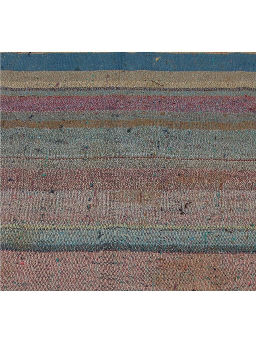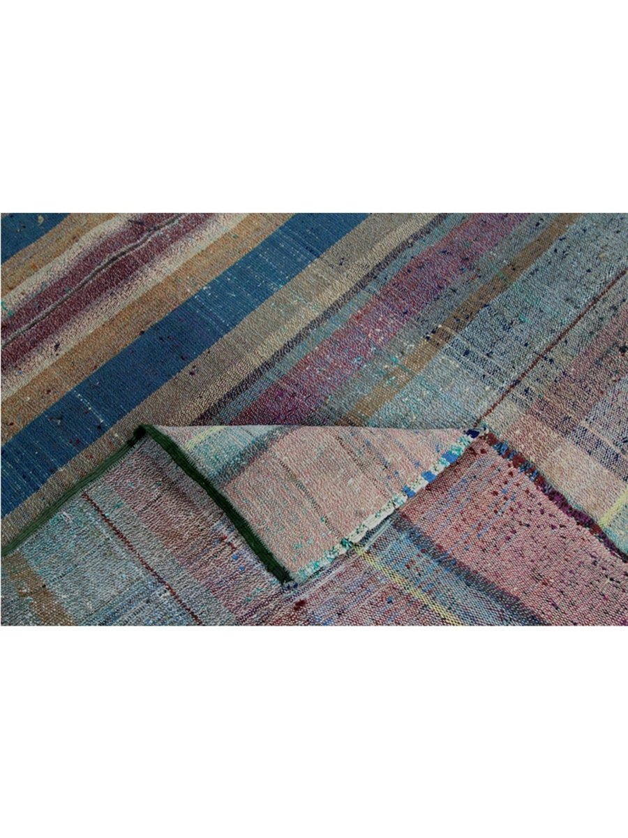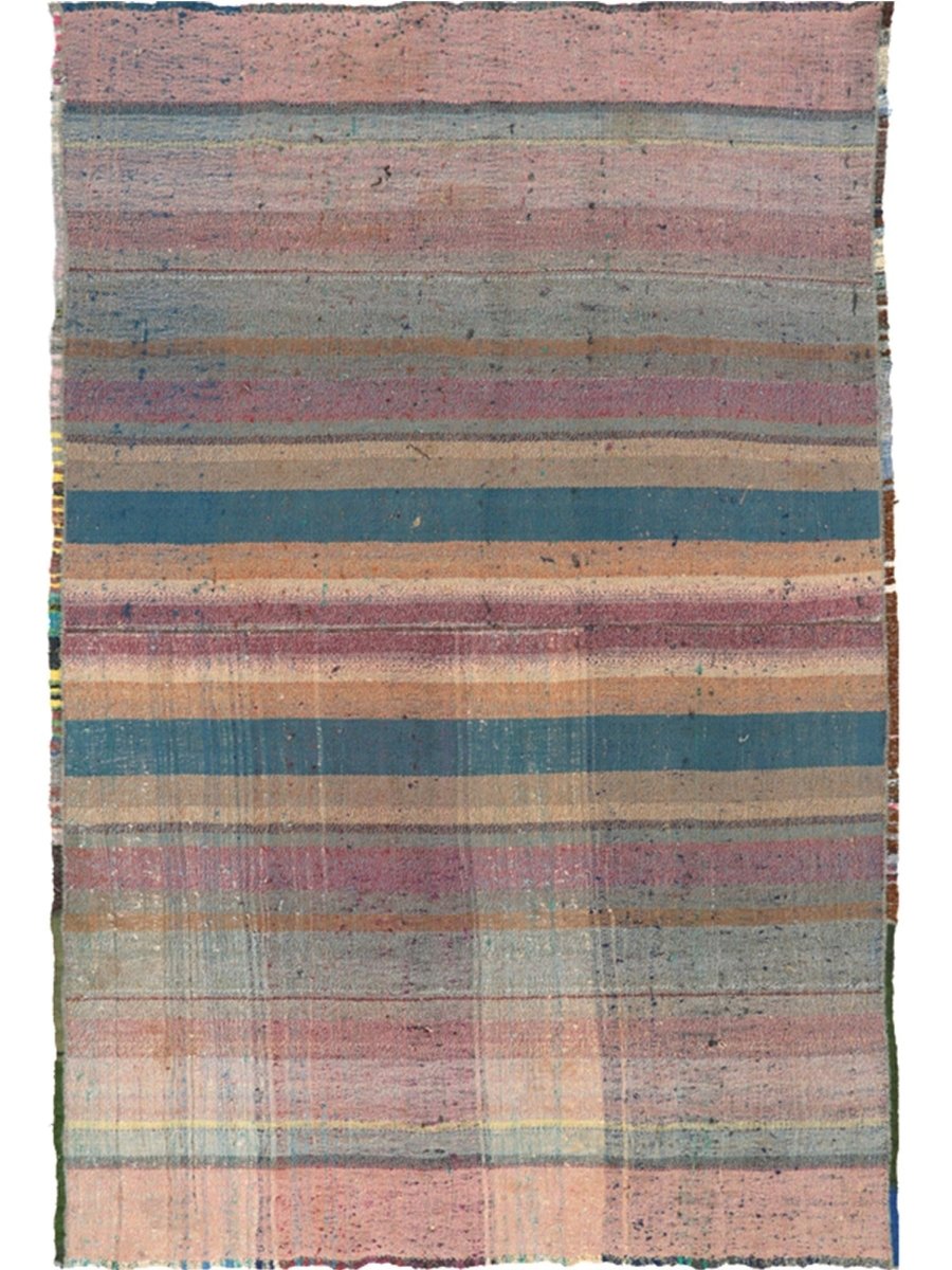The 5x8 Persian Kilim Area Rug showcases a soothing design with wide horizontal stripes in soft pastel shades. Gentle pinks, muted blues, and warm earth tones blend together harmoniously in a subtle gradient effect. The texture of the rug enhances the overall composition, giving it depth and richness. The faded quality of the colors evokes a sense of tranquility and calm, making it perfect for spaces that require a serene vibe. This rug is ideal for sleek or minimalist interiors, adding understated elegance. This rug brings a blend of cultural artistry and chic charm to your interior. This rug is a timeless accent that will enrich your living space.