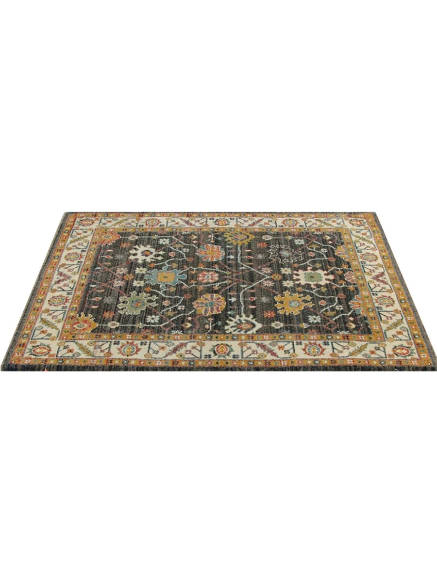Add traditional elegance to your space with this 3x5 Persian Shiraz machine-made area rug. Crafted in Persia, the durable rug features a captivating floral pattern across its surface. Intricate design of blossoms, vines, and motifs brings a sense of timeless artistry. The field is rich in a charcoal hue, providing a dramatic backdrop to detailed patterns. A contrasting light border in ivory frames a rug beautifully. Floral patterns within the field are bordered with a palette that includes soft beige, warm gold, brown, red, pink, and subtle blue, adding visual complexity. Made with high-quality materials, the rug provides durability and a comfortable feel underfoot. Enjoy free US shipping.